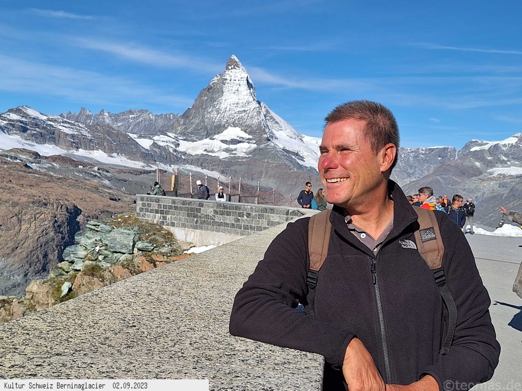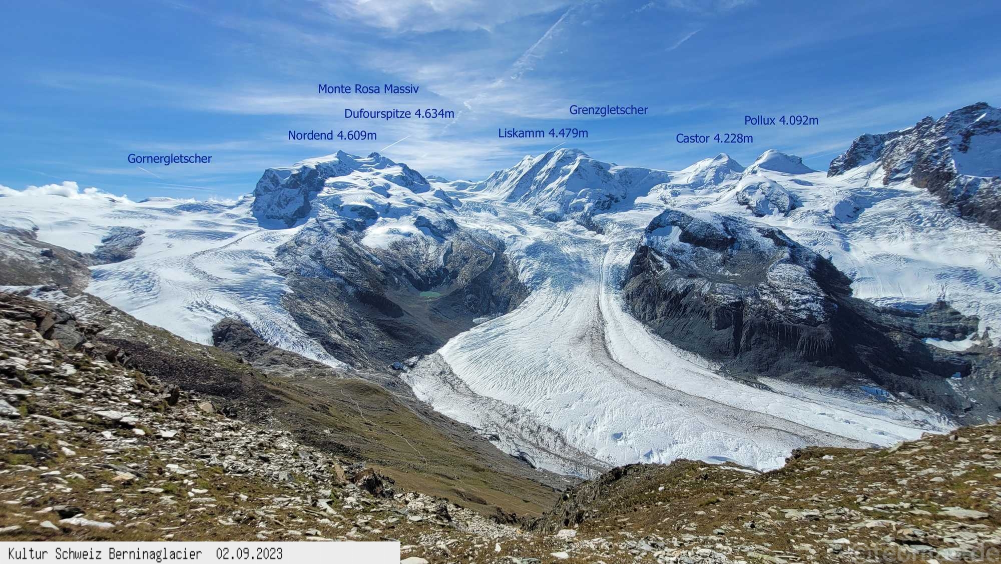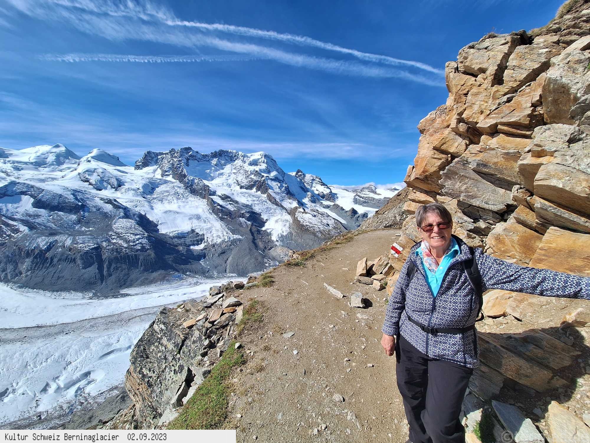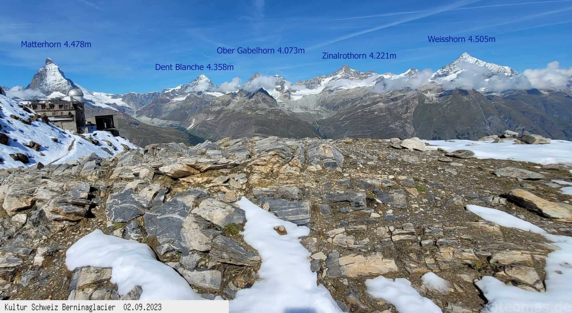 mit Wow Effekt und Staunen die Gletscher Wand der Viertausender vor uns. Am Gornergrat konnte man die schneefreien Wege gut begehen, so sind wir bei Top Wetter