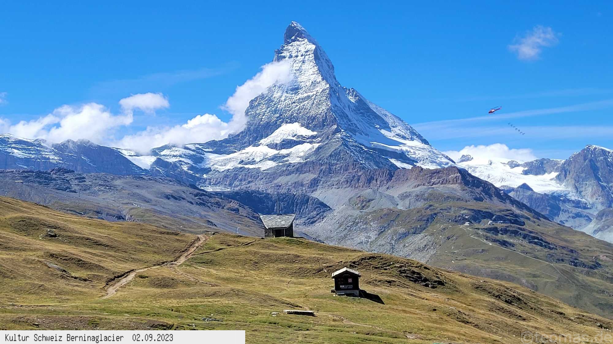 bei Riffelberg. Hier hatte man die beste Sicht auf das Matterhorn. Zum Greifen nahe mit romantischem Wolkenkranz, man wollte nicht mehr weg.