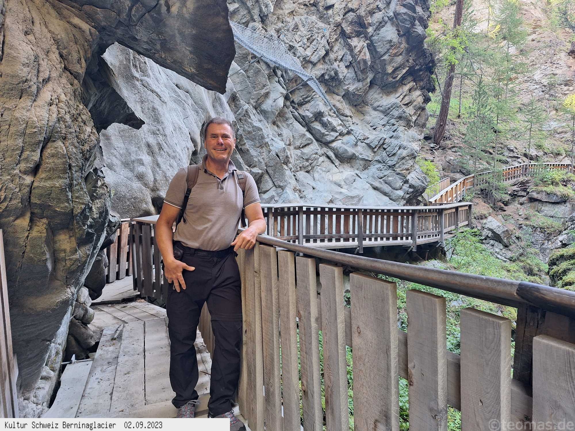 Gegen 14:30 Uhr wieder unten in Zermatt den Ort erkunden mit seinen alten Holzhäusern. Am Ende des Ortes gelangte man an den Eingang der Gorner Schlucht.