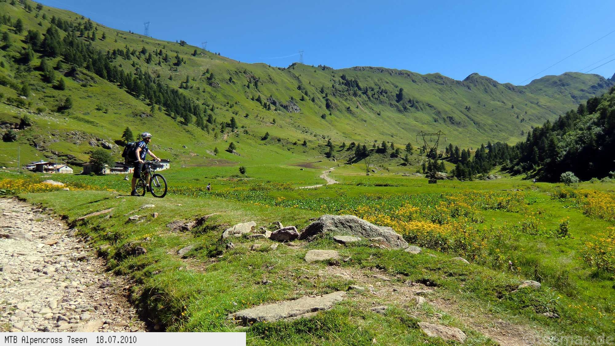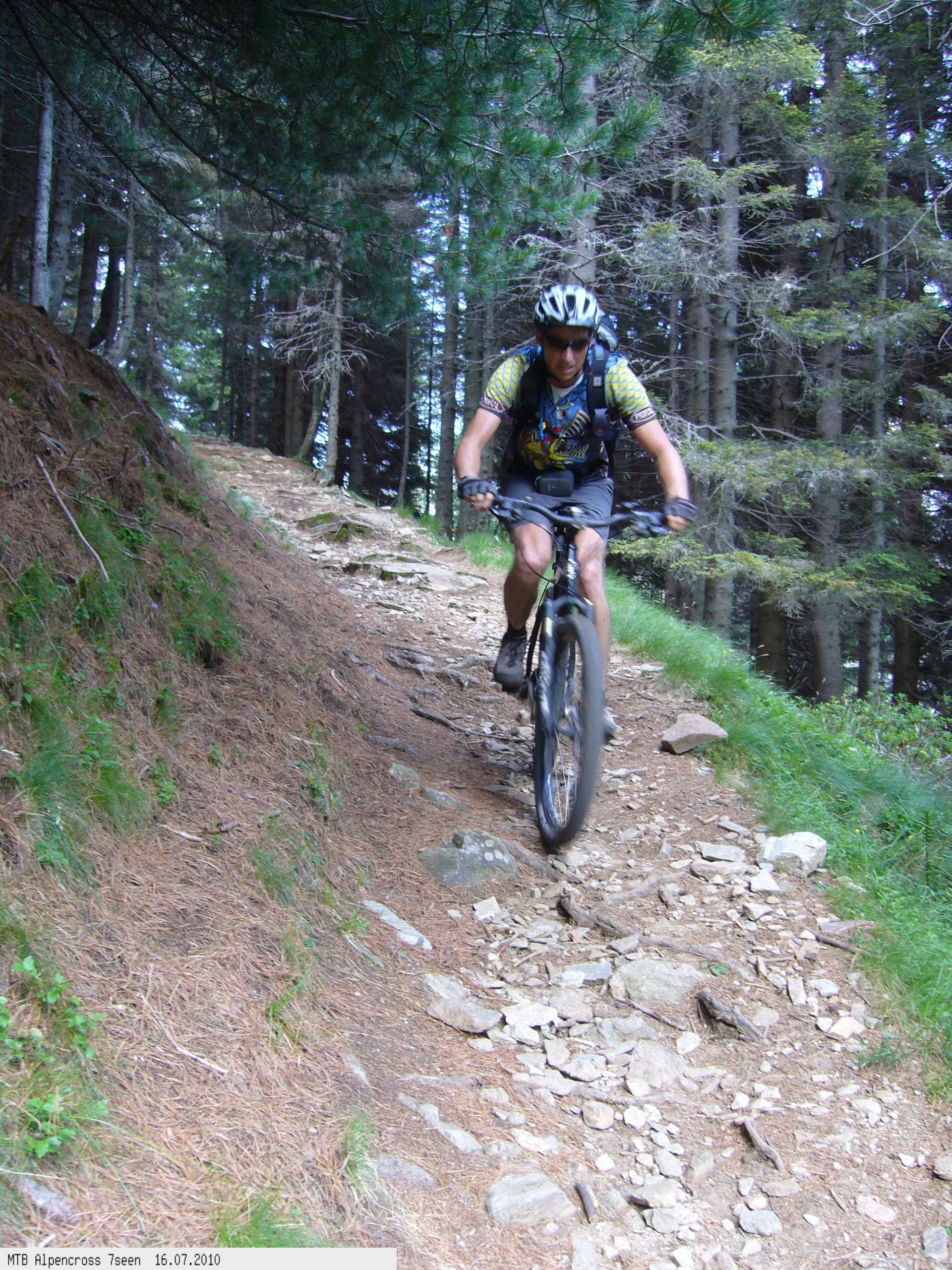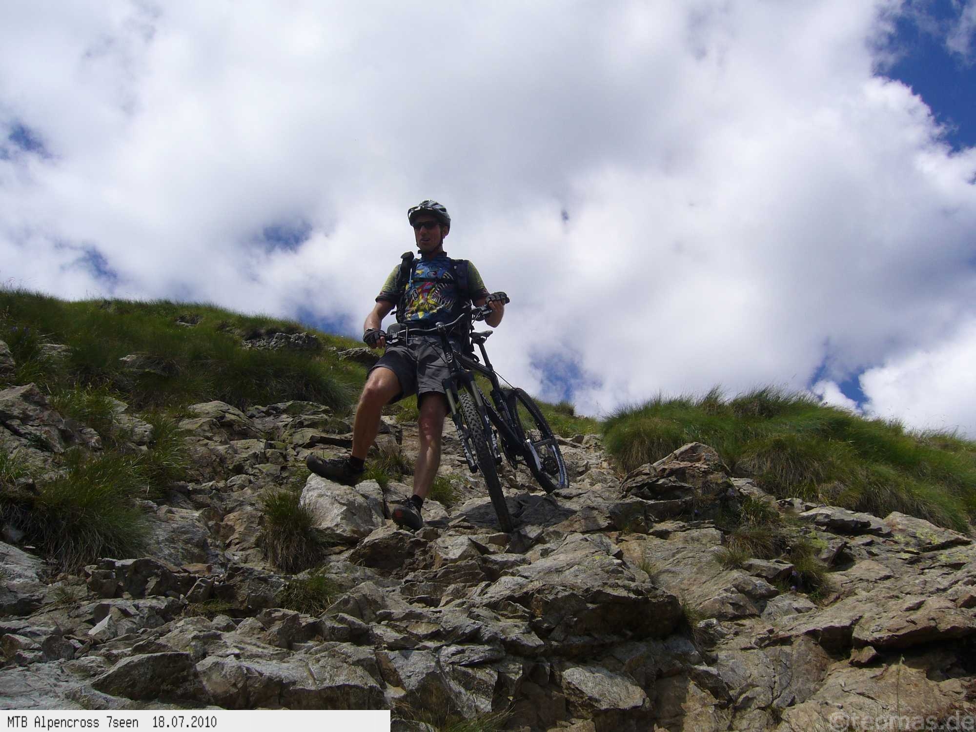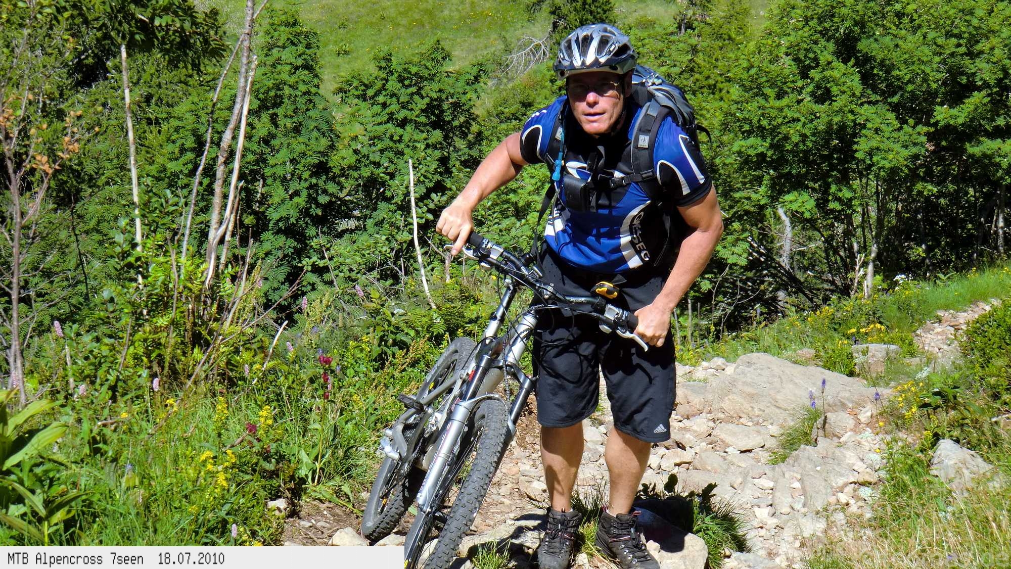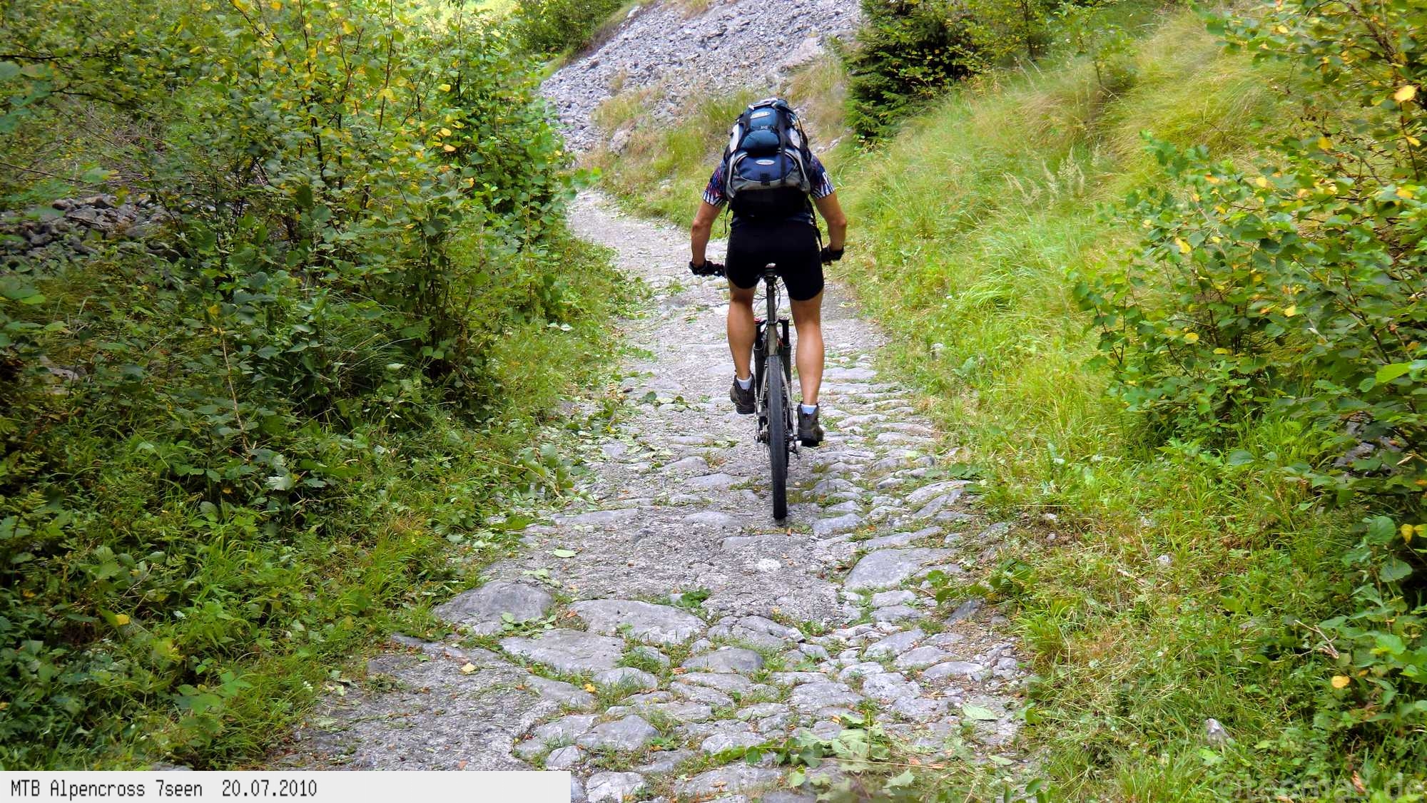 Von West nach Ost auf der Alpensüdseite vom Lago Maggiore zum Gardasee. Auf ehemaligen Militärstraßen und alten Handelswegen an sieben Seen vorbei. Die Infrastruktur auf dieser bisher schwierigsten Alpendurchquerung ist schwach ausgebaut. Man gelangt durch teils einsame und stille Gegenden, in denen längere Abschnitte ohne Versorgung zu bewältigen sind. Hitze um die 40°C und ein Bruch der Sattelstütze am ersten Tag haben die Bedingungen zusätzlich verschärft. Die Anstiege sind durchwegs sehr steil, oft unfahrbar. Die Wegfindung erfordert Erfahrung und ausreichend Geduld im Kartenlesen an kritischen Weggabelungen. Belohnt wird man durch ein abenteuerliches Gelände auf nicht ausgetretenen Pfaden. Um die Tour logistisch zu meistern sind wir mit dem Auto von Nürnberg nach Ticino/Locarno zum Tourstart gefahren. Für den Rückweg vom Gardasee haben wir uns ein Leihauto bis zur italienisch/schweizerischen Grenze nach Belinzano genommen. Von dort dann weiter mit der S−Bahn nach Locarno zum Ausgangspunkt.