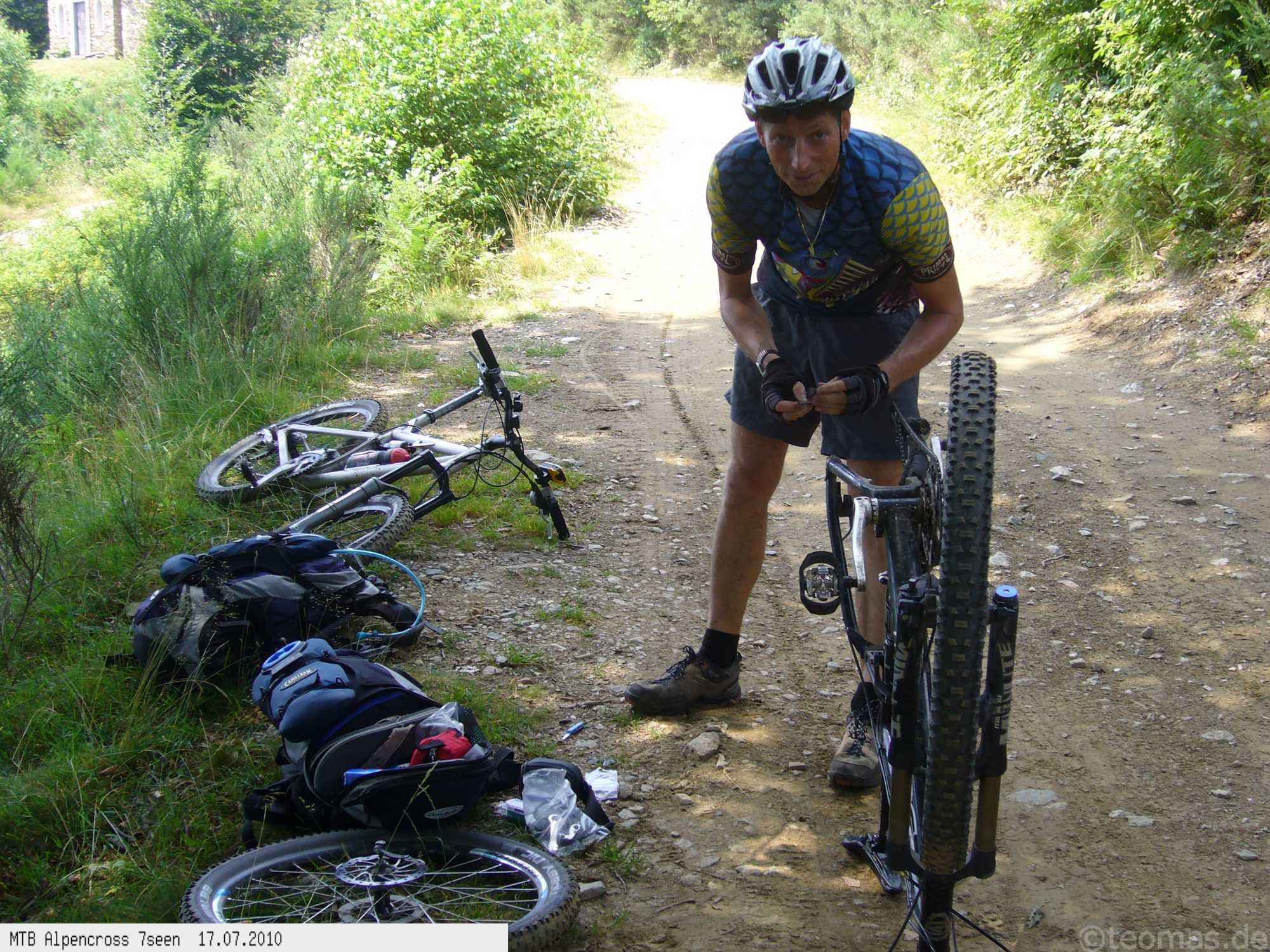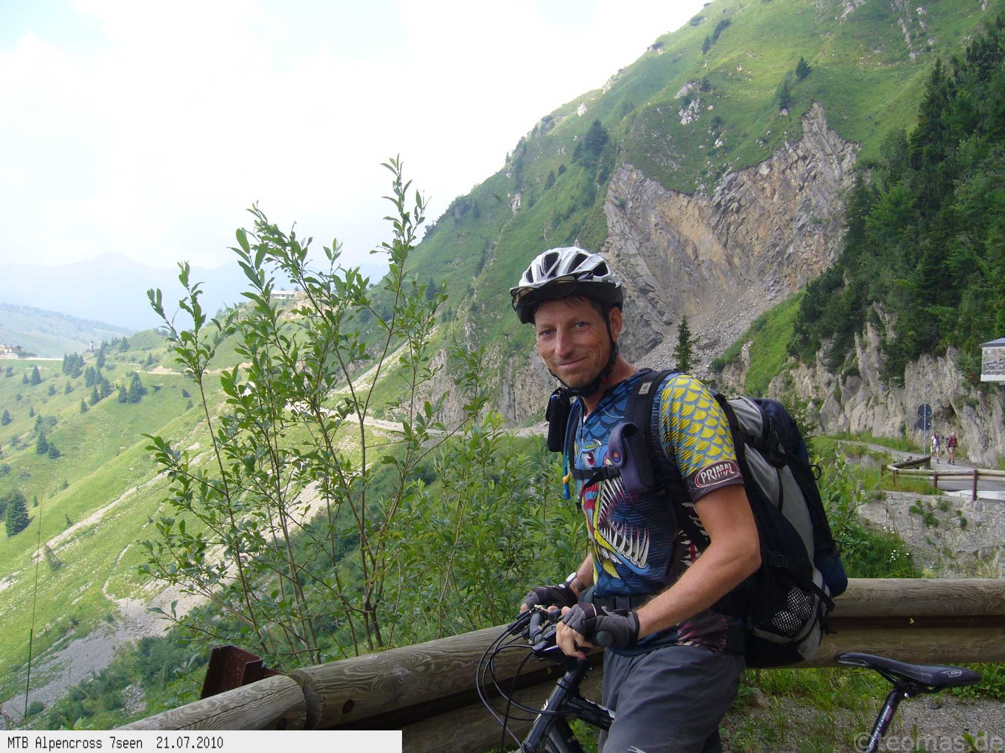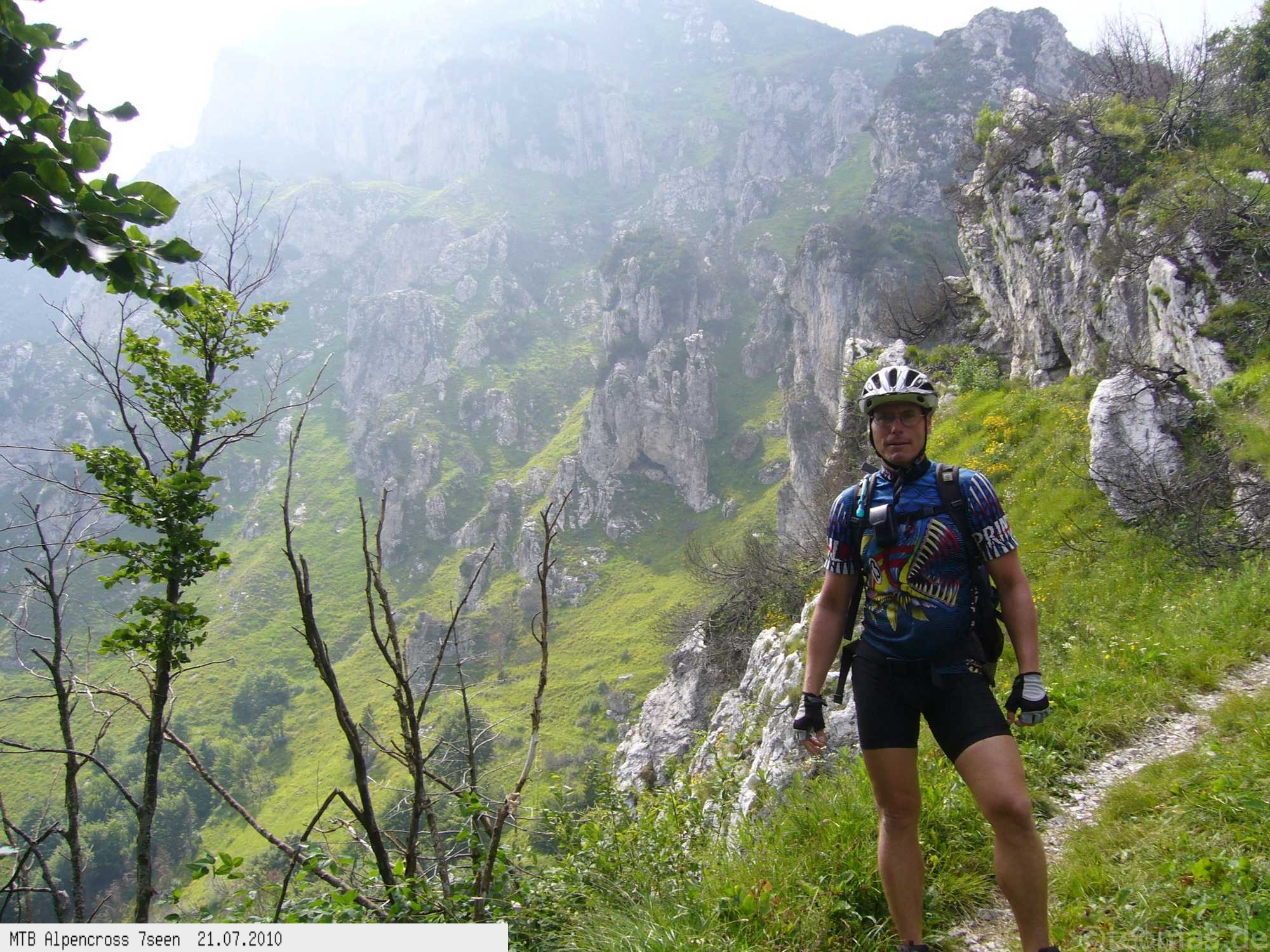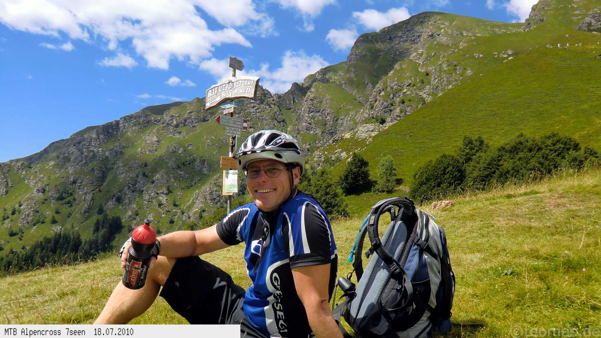 Von West nach Ost auf der Alpensüdseite vom Lago Maggiore zum Gardasee. Auf ehemaligen Militärstraßen und alten Handelswegen an sieben Seen vorbei. Die Infrastruktur auf dieser bisher schwierigsten Alpendurchquerung ist schwach ausgebaut. Man gelangt durch teils einsame und stille Gegenden, in denen längere Abschnitte ohne Versorgung zu bewältigen sind. Hitze um die 40°C und ein Bruch der Sattelstütze am ersten Tag haben die Bedingungen zusätzlich verschärft. Die Anstiege sind durchwegs sehr steil, oft unfahrbar. Die Wegfindung erfordert Erfahrung und ausreichend Geduld im Kartenlesen an kritischen Weggabelungen. Belohnt wird man durch ein abenteuerliches Gelände auf nicht ausgetretenen Pfaden. Um die Tour logistisch zu meistern sind wir mit dem Auto von Nürnberg nach Ticino/Locarno zum Tourstart gefahren. Für den Rückweg vom Gardasee haben wir uns ein Leihauto bis zur italienisch/schweizerischen Grenze nach Belinzano genommen. Von dort dann weiter mit der S−Bahn nach Locarno zum Ausgangspunkt.