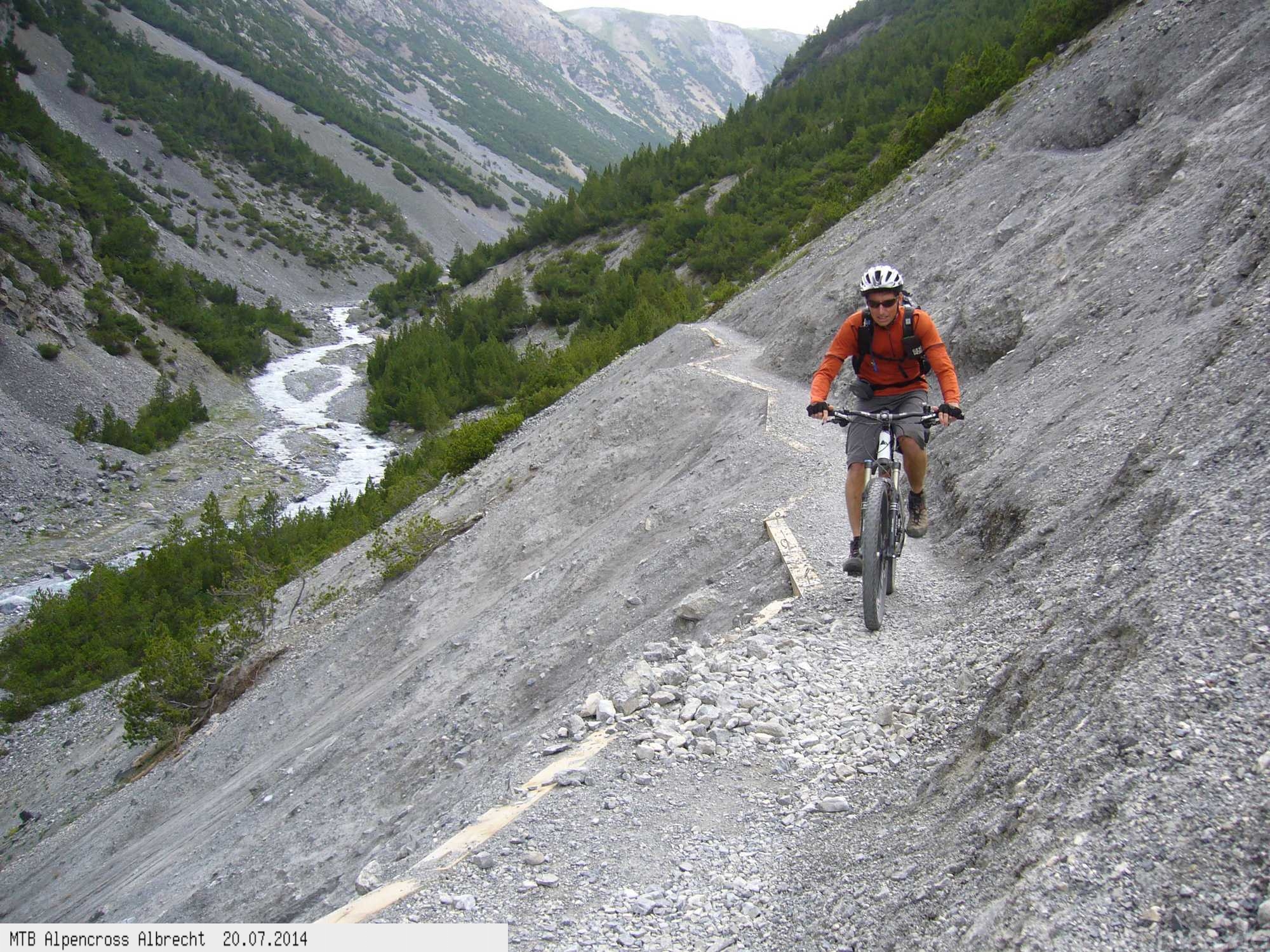 Klassische Albrecht Route mit Variante über den Eibsee. Highlights der Tour waren das Schönverwalltal zur Heilbronner Hütte mit der Abfahrt zum Zeinisjoch ebenso wie das Fimbertal mit dem steilen Anstieg zum Joch ab der Heidelberger Hütte und die Geröll-Abfahrt bis Vna mit dem phantastischen Bergpanorama. Kurzer Schreck am Joch, um 18 Uhr mit Schaltaugenabriss....die Zeit läuft davon. Der Schweizer Teil von Scuol zum Doss Rödand bis zum Fraele See bietet technischen Flow mit abwechslungsreichen Blicken in die Bergwelt. Für Mountainbiker mit technischem Anspruch hält die Abfahrt vom Montozzo Paß jeden Schwierigkeitsgrad parat. Drops, verblockte Steilpassagen, Kehren.....Traumhaft.