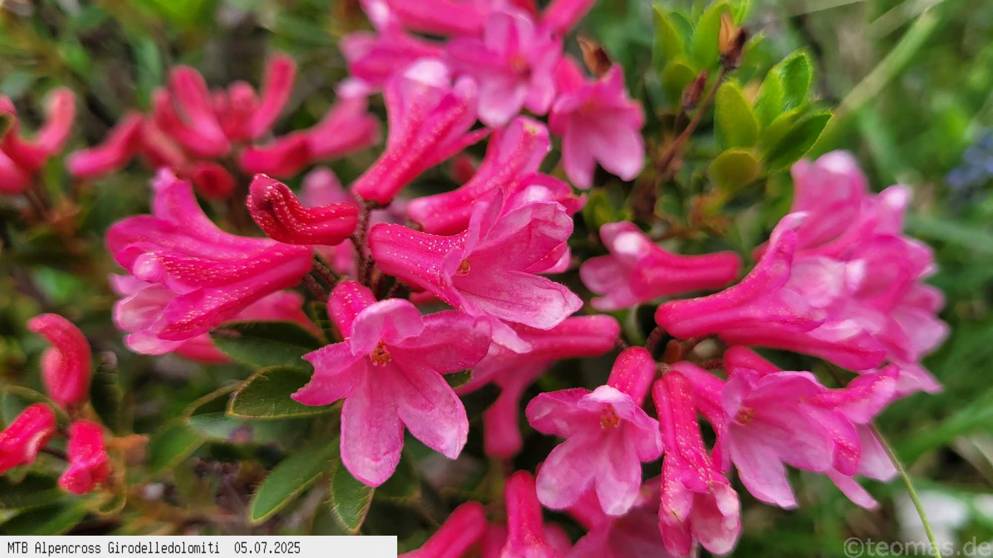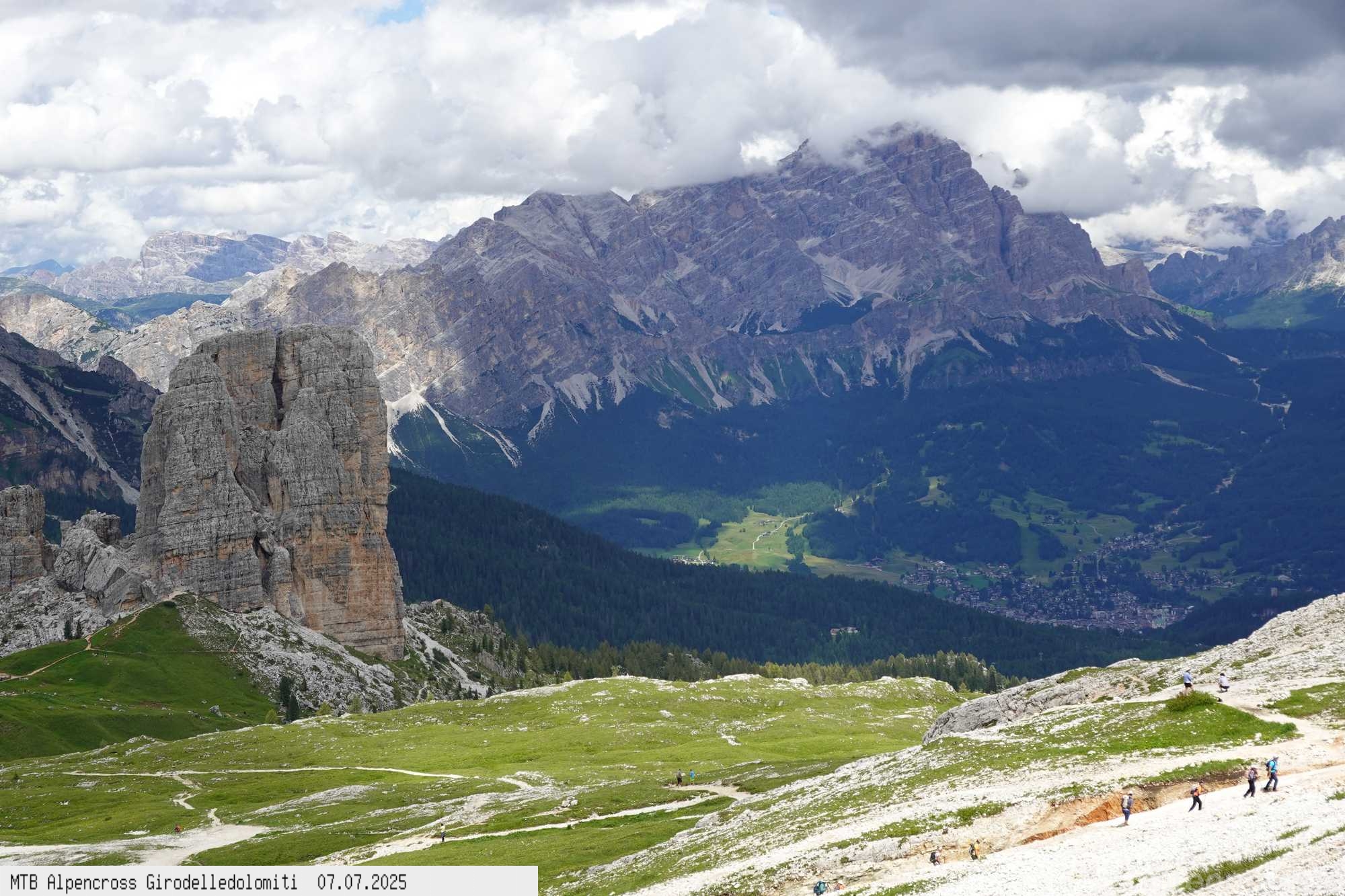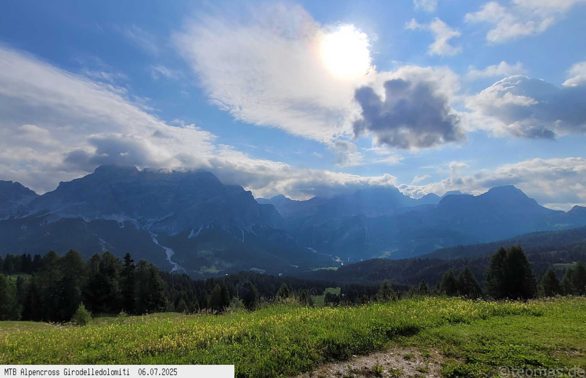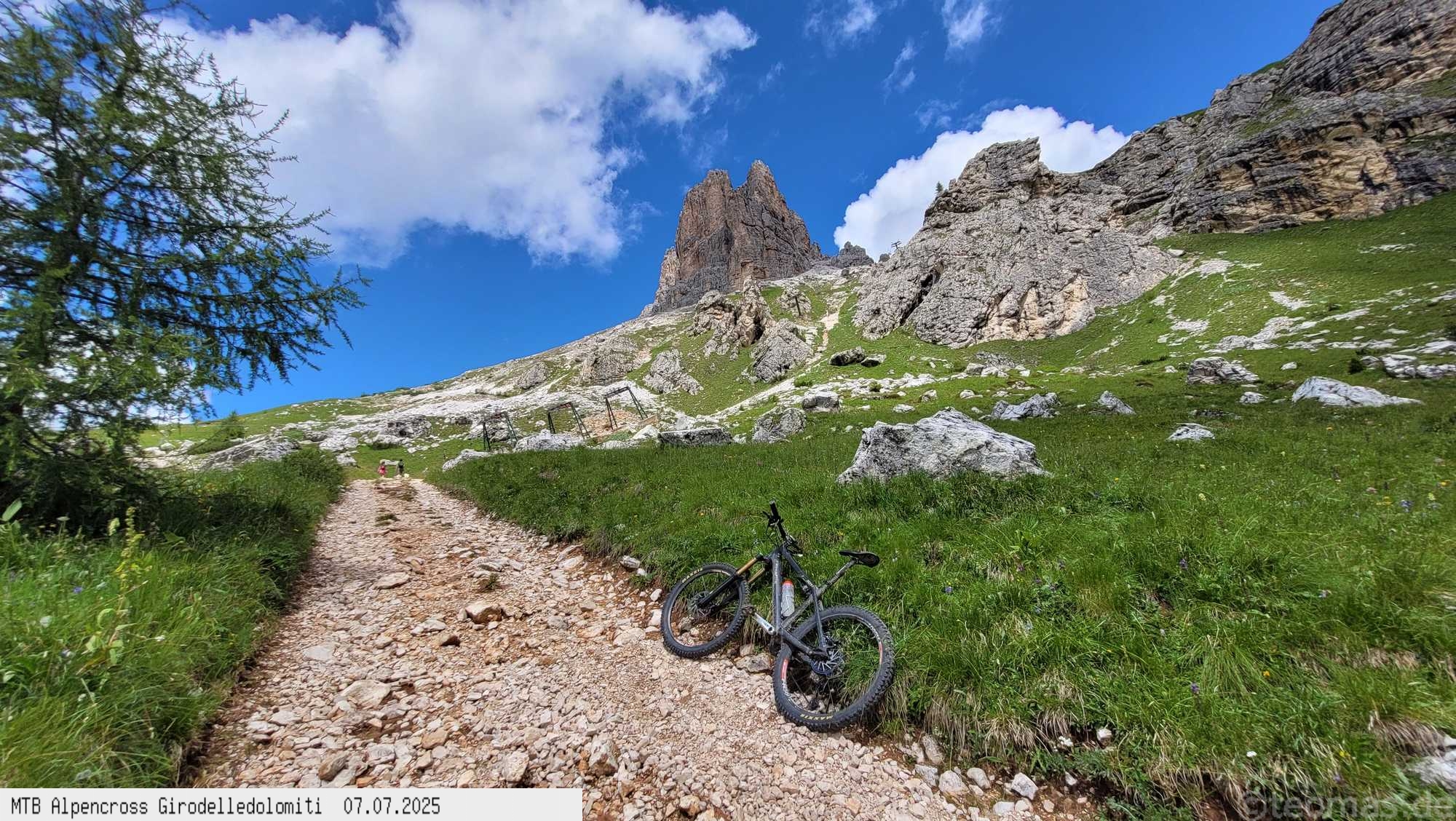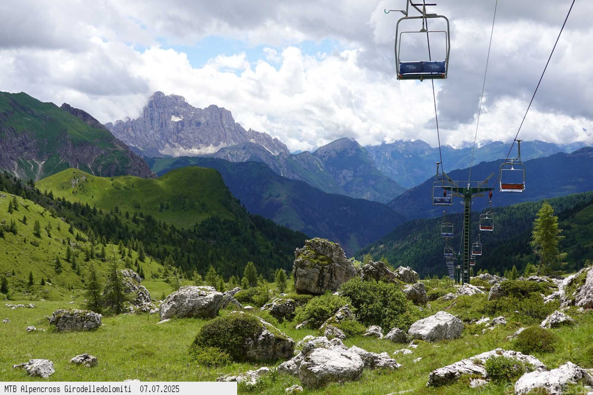 Gipfel. Anschließender Downhill erst auf Schotter, dann auf angelegtem Trail bis Passo Campolongo, wo hunderte Rennradler zum Paß hochstrampelten.