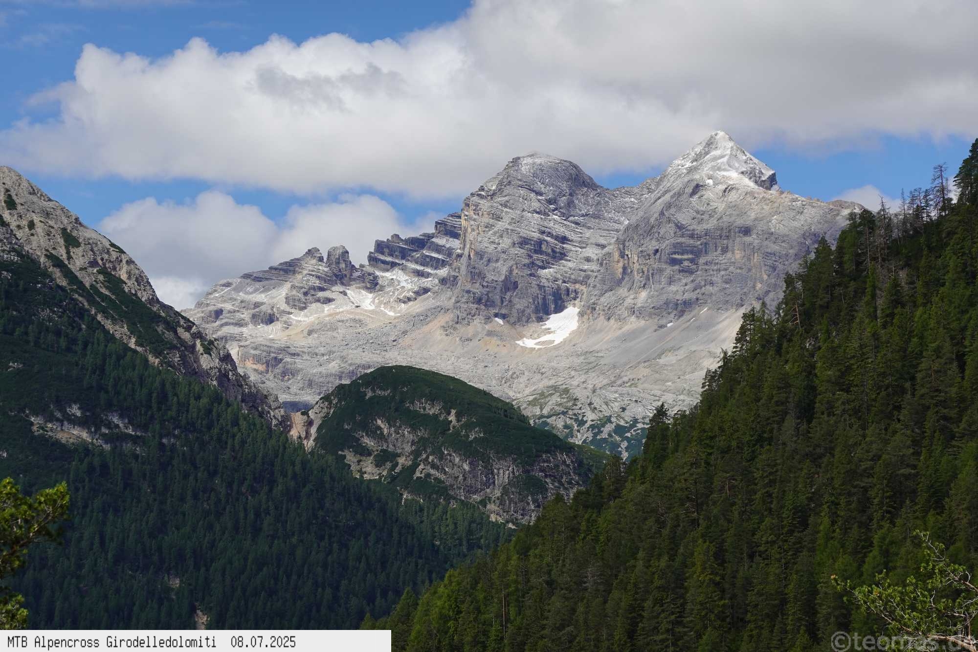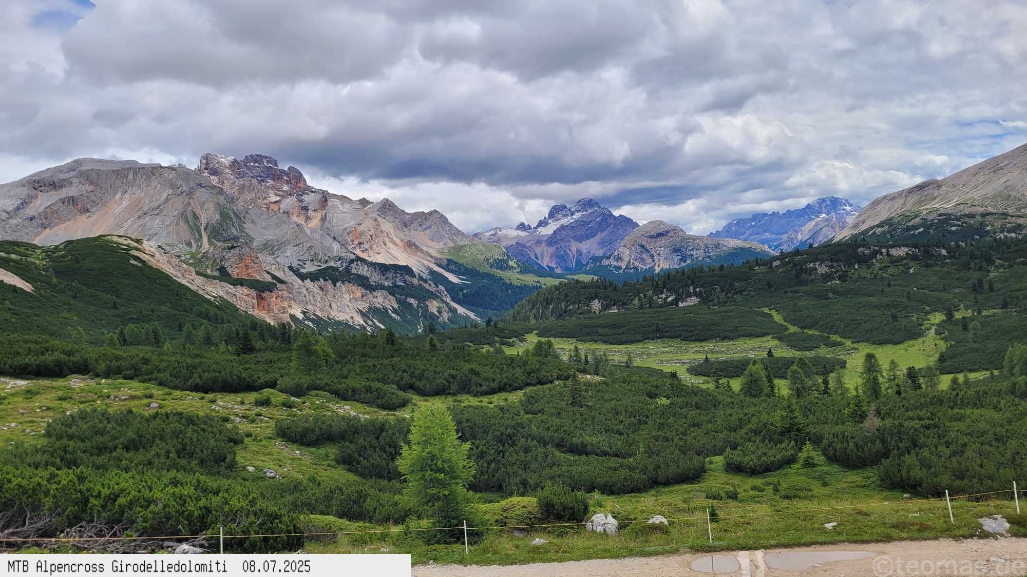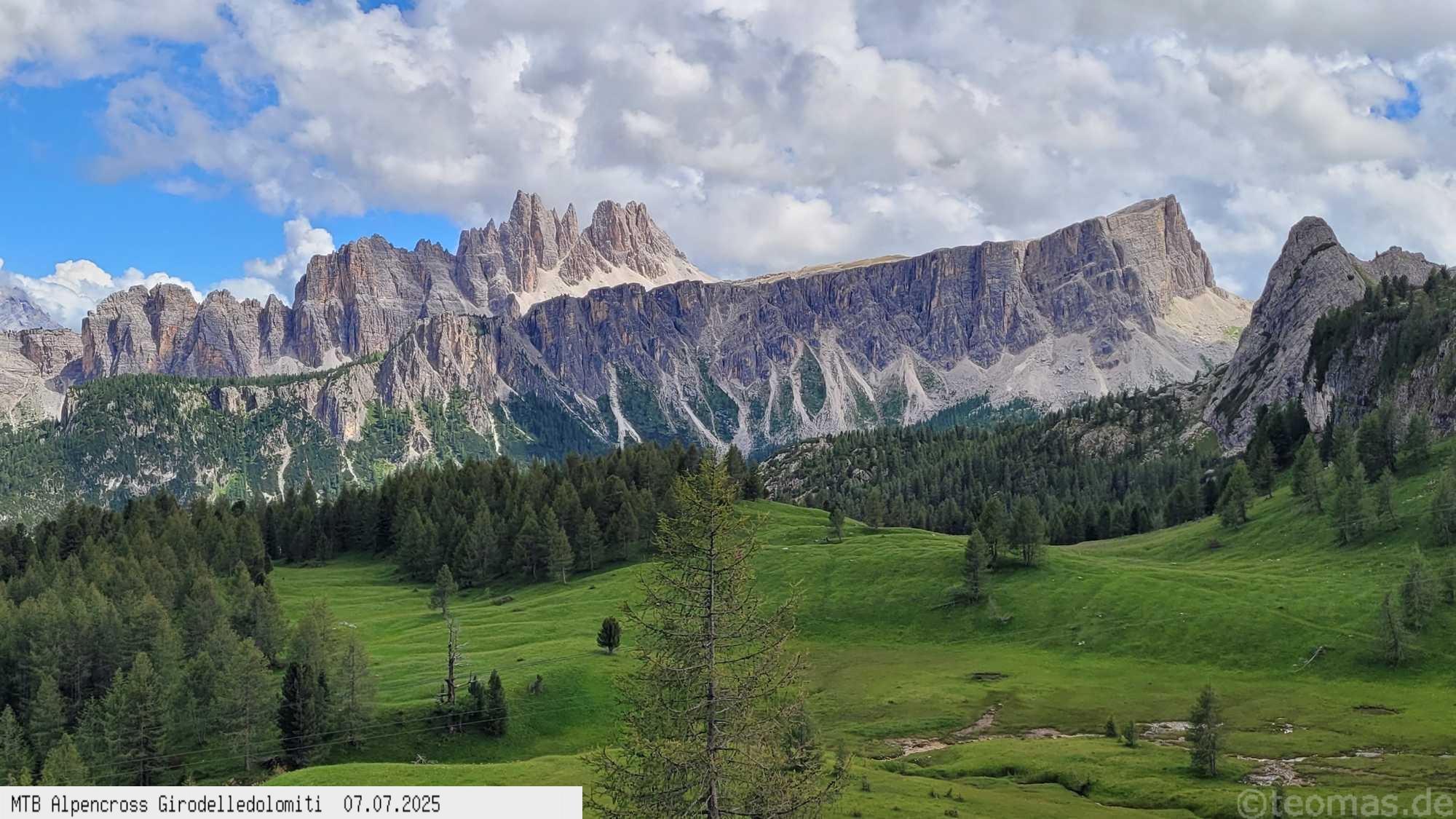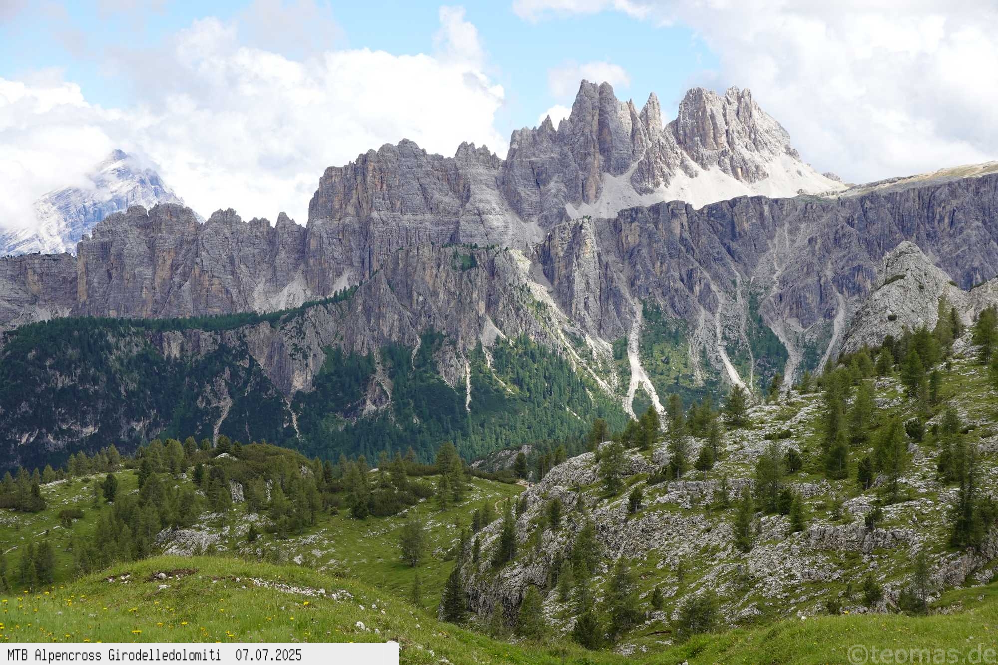mit 18-22% Steigung oft Schieben angesagt. Man wanderte entlang der imposanten Felswände der Kreuzkofelgruppe. Sehr schwül an diesem Tag!