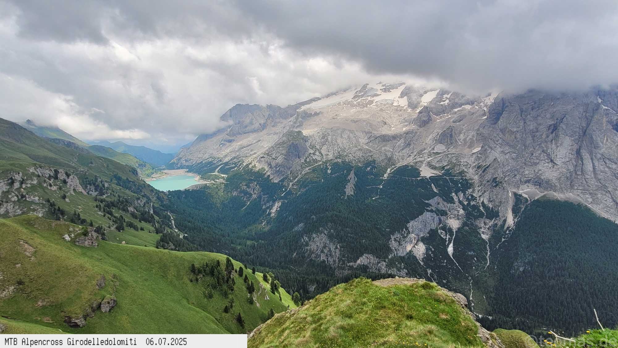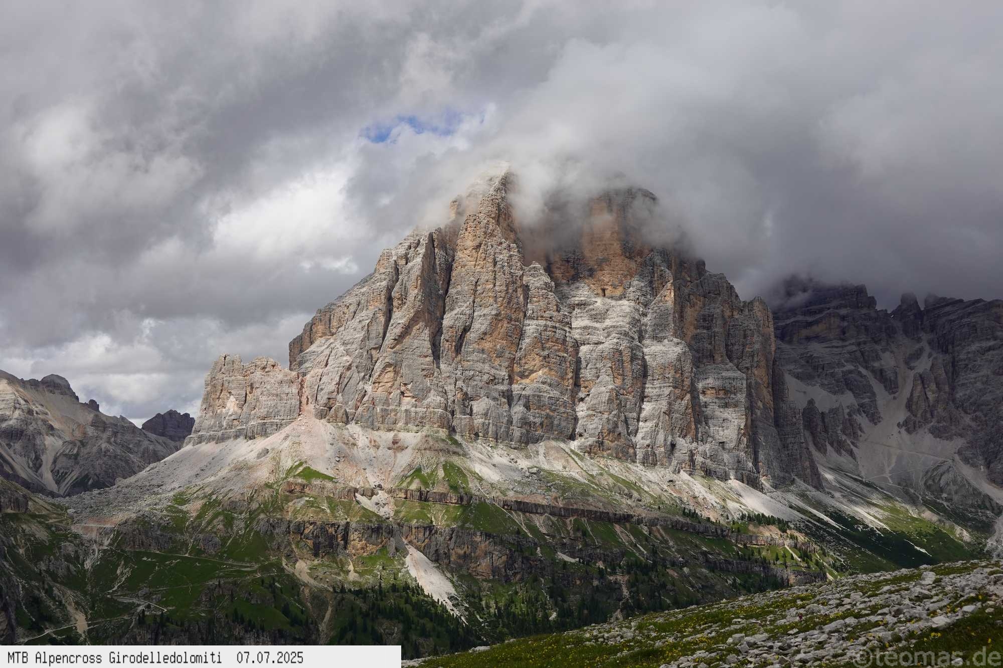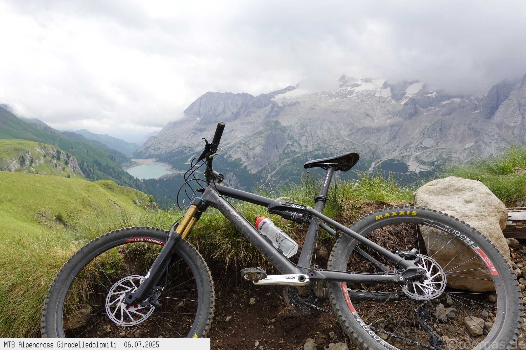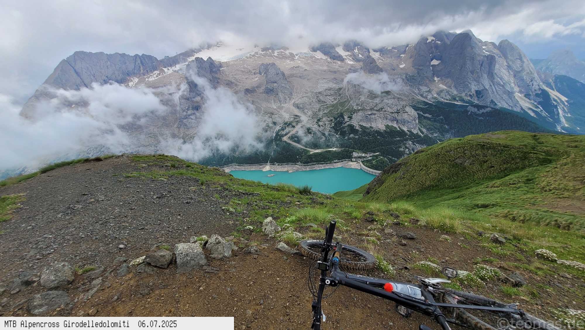 Schiebestück und dann auf schmalem Wanderpfad am Hang entlang mit grandiosen Ausblicken auf die Marmolada, toller Wolkenstimmung inklusive! Durch die Rennrad