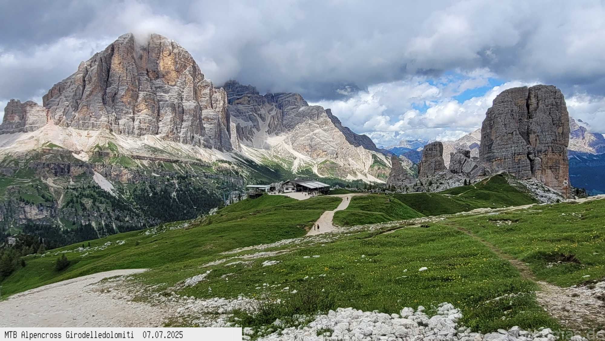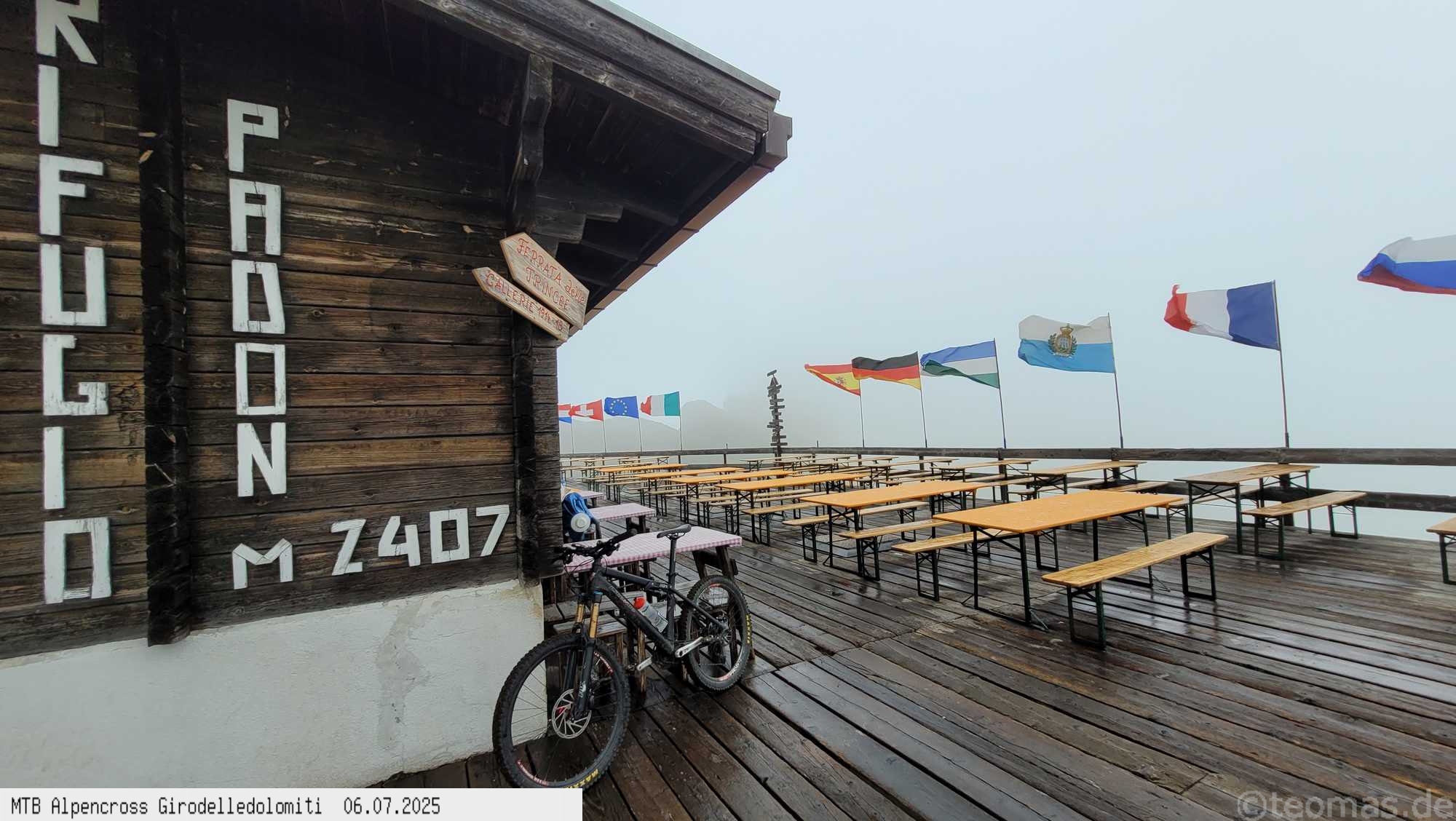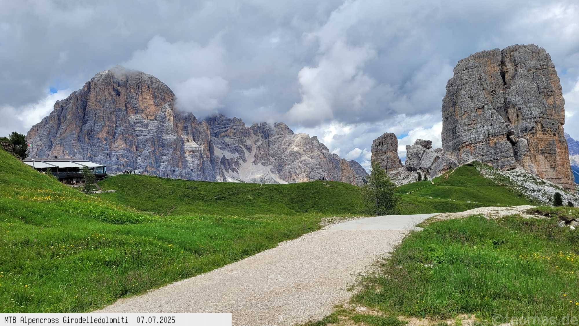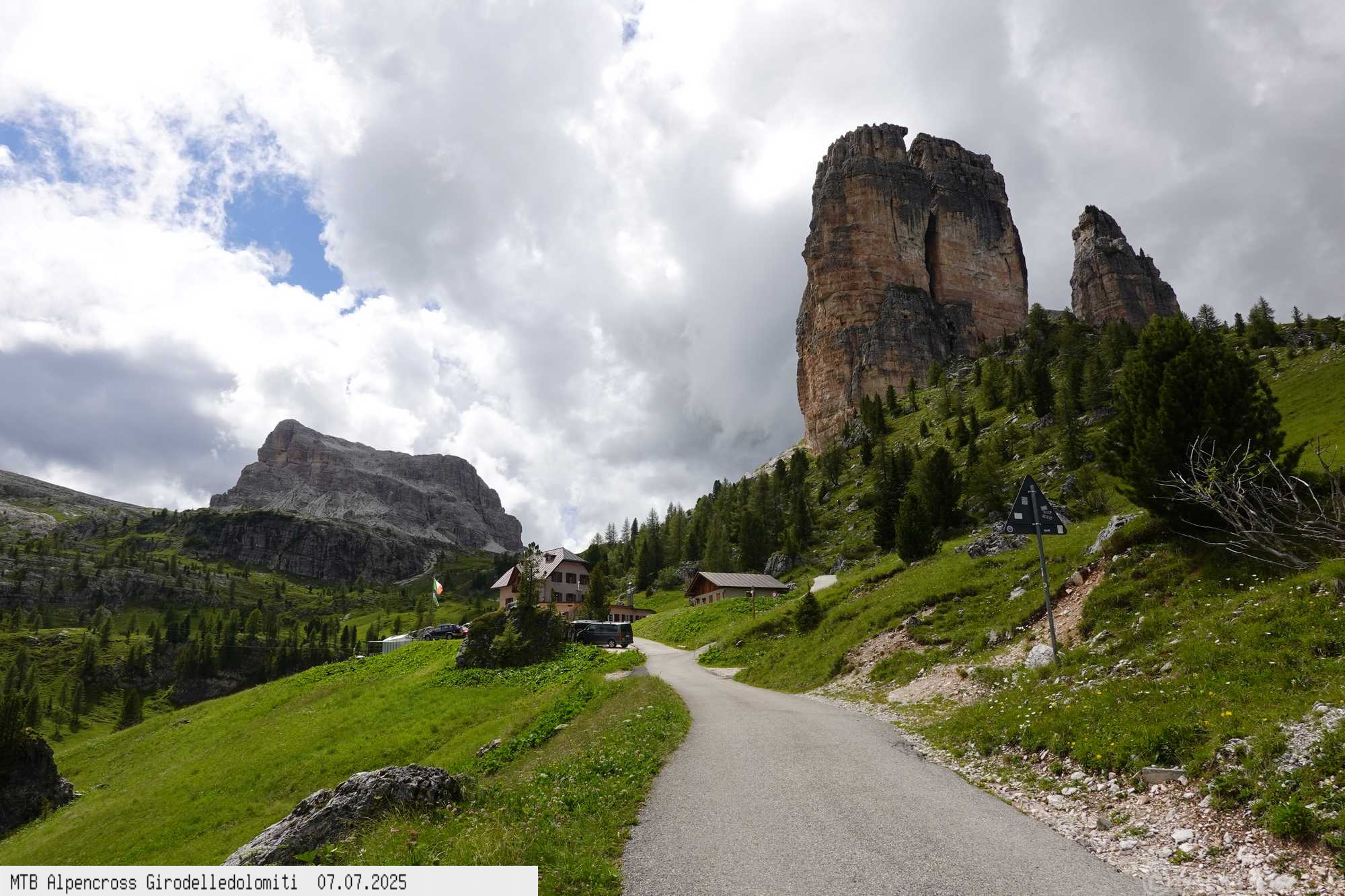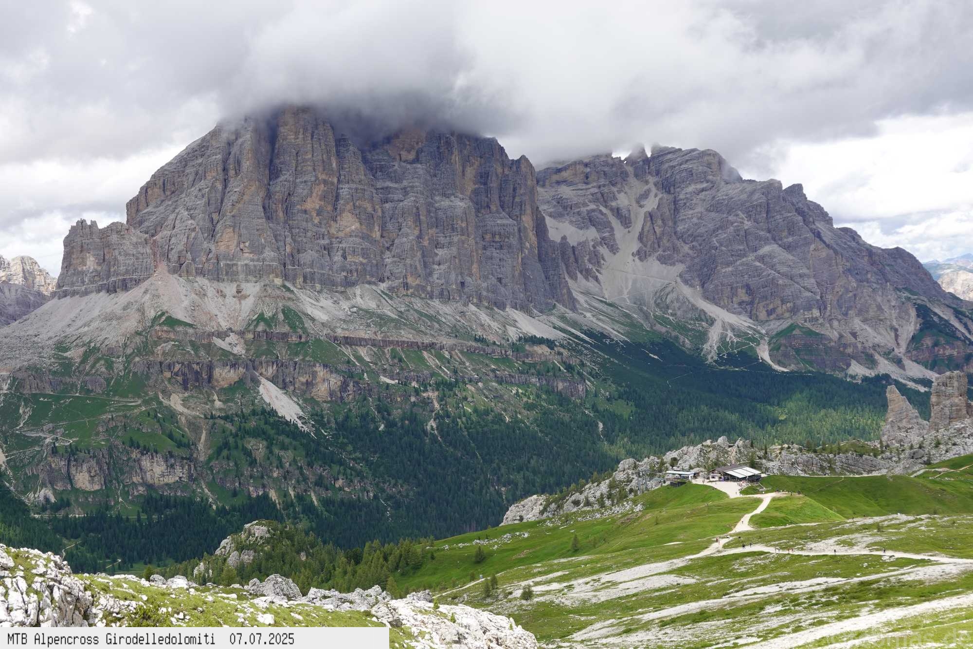 Averau Hütte. Leider war der Lift geschlossen und so schob ich das Bike die sehr steile Schotterpiste 400 Höhenmeter hinauf. Kurz vor Erreichen der Averau