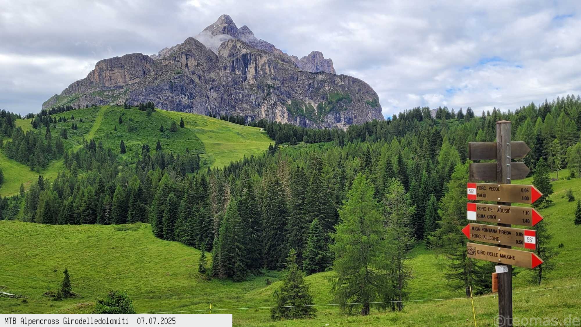 Santa Fosca. Hier wieder ein Stück hochtreten auf Waldweg bis zur Paßstraße Richtung Passo Giau. Weiter bis zum Rifugio Fedare mit geplantem Lift auf die
