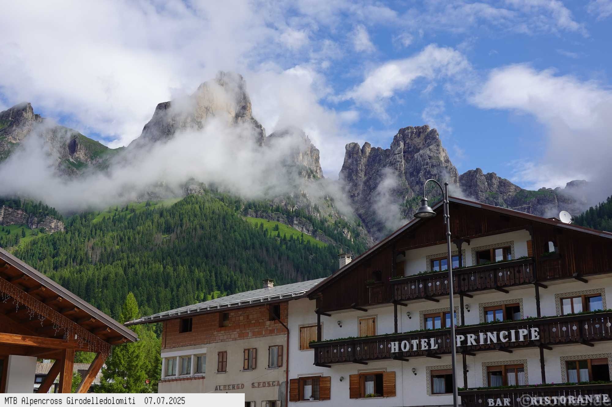 hinunter nach Sottoguda und Caprile und weiter nach Alleghe war schnell geschafft, schon um 15:45 Uhr im Hotel Alle Alpi noch halbwegs trocken eingecheckt.