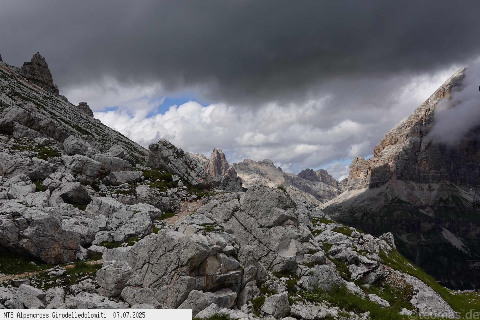 gleich weiter Richtung Passo Padon, das Wetter zunehmend gewittrig. Ab der Bindelhütte wurde der Pfad extremer, steile Passagen Auf und Ab, technisch anspruchsvoll!