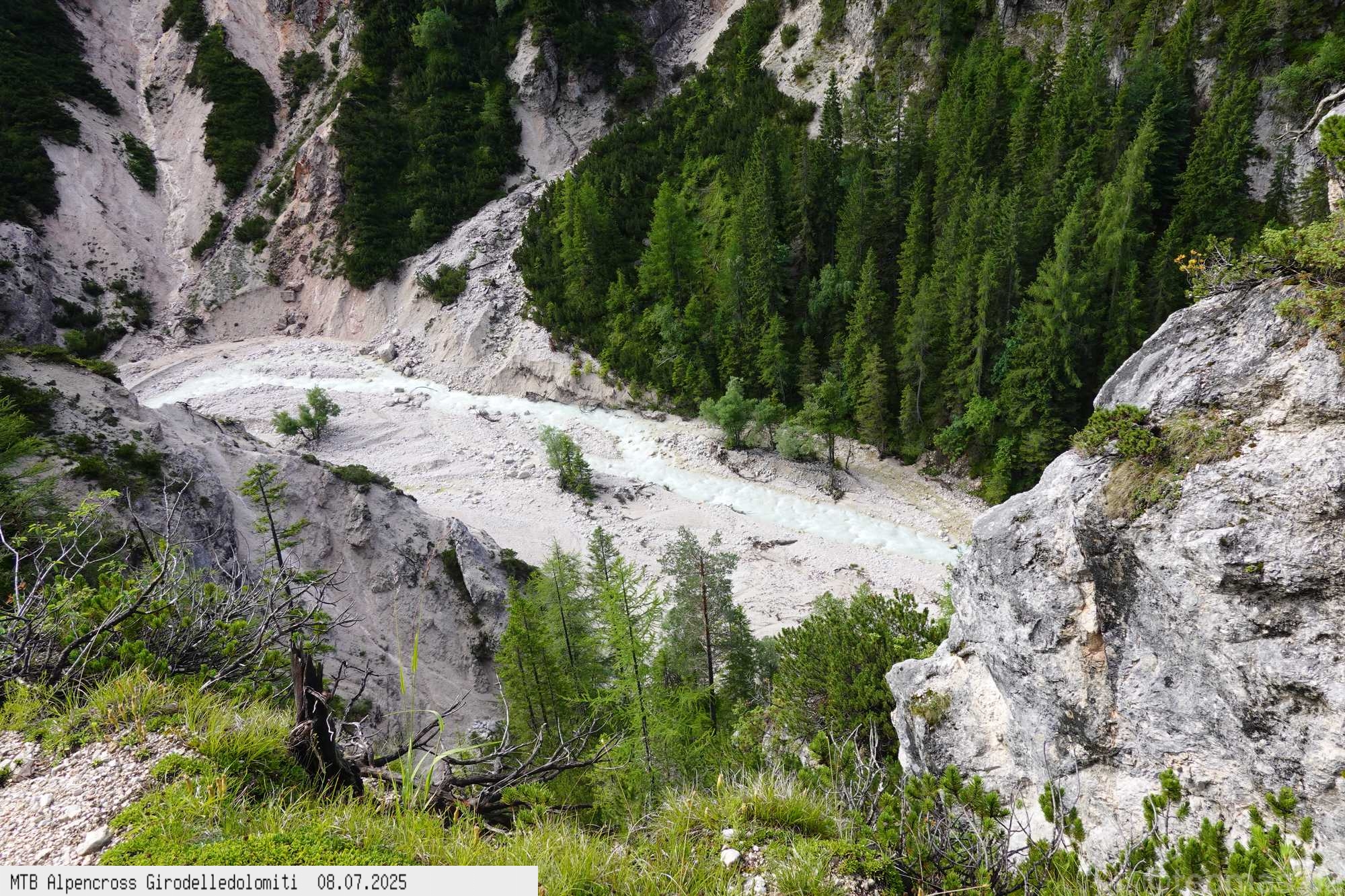 Grobschotter Einlagen Downhill bis zur Pederü Hütte durch die Schlucht zwischen den Steilwänden. Kurze Mittagsrast, bisher nichts gegessen, schnell weiter