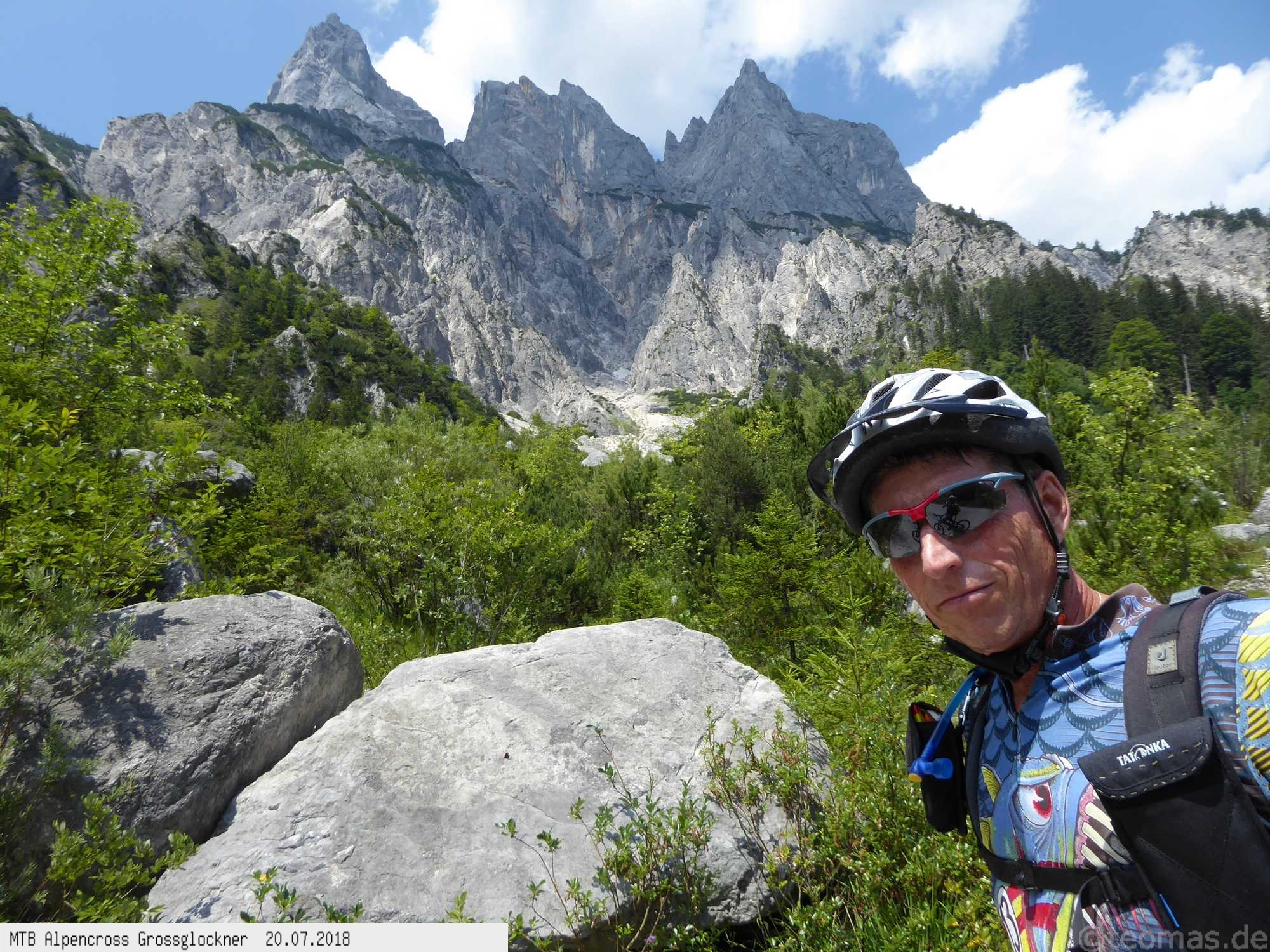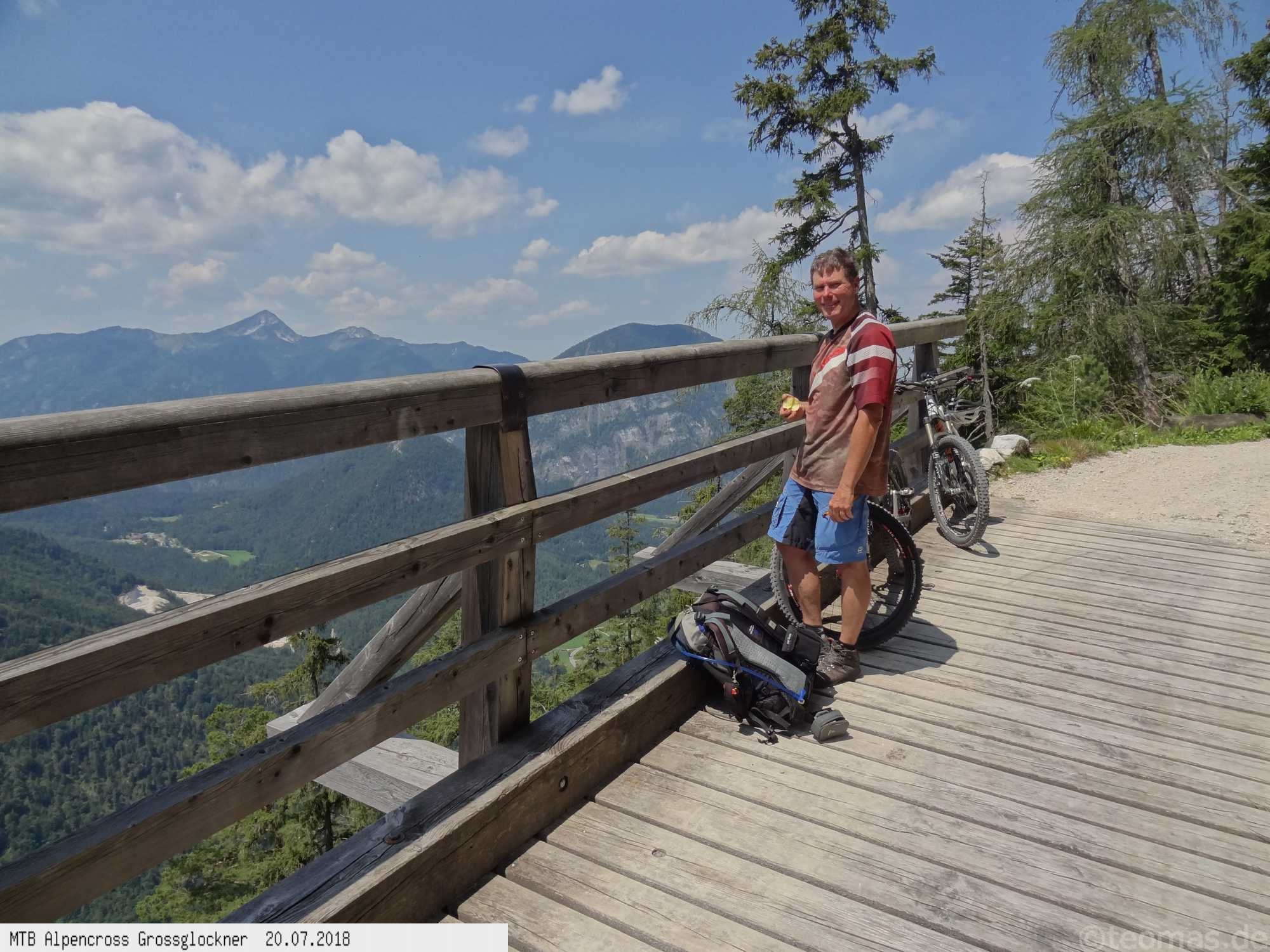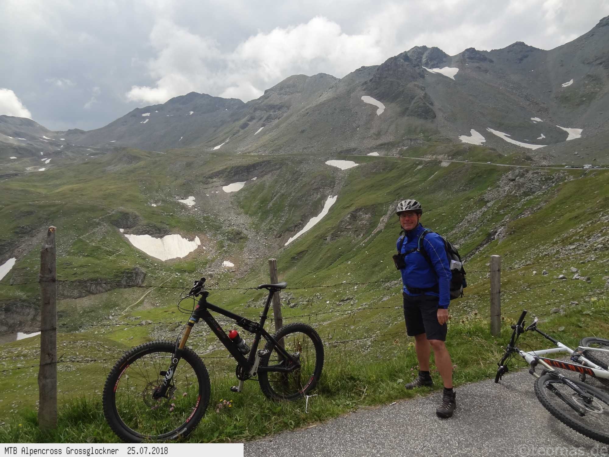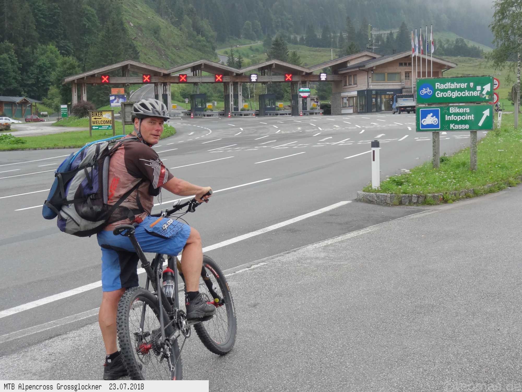 Anfänglich gute Wetterprognose zum Start am Parkplatz in Glasenbach bei Salzburg. Radeln Richtung Bad Reichenhall mit Steigungen bis 22% auf Teer. Schieben zur Rötelbachalm auf Schotter mit 19% Steigung und heißen 31°C. Hinunter nach Ramsau, vorbei am Hintersee und hinauf zum Hirschbichl. Downhill nach Weißbach über den Römersattel nach Hochfilzen zum Hotel Edelweiß. Bereits am zweiten Tag Wetterumschwung. Noch trocken hinauf zum Spielberghaus und weiter nach Saalbach Hinterglemm ohne Regen. Hinauf zum Klinglertörl die letzten 200 Höhenmeter im Nebel schieben. Nach rasanter Trail- und Schotterabfahrt bis Piesendorf oberhalb der Salzach Mittagseinkehr und Weiterfahrt nach Bruck am Großglockner mit Übernachtung im Hotel Lukashansl.