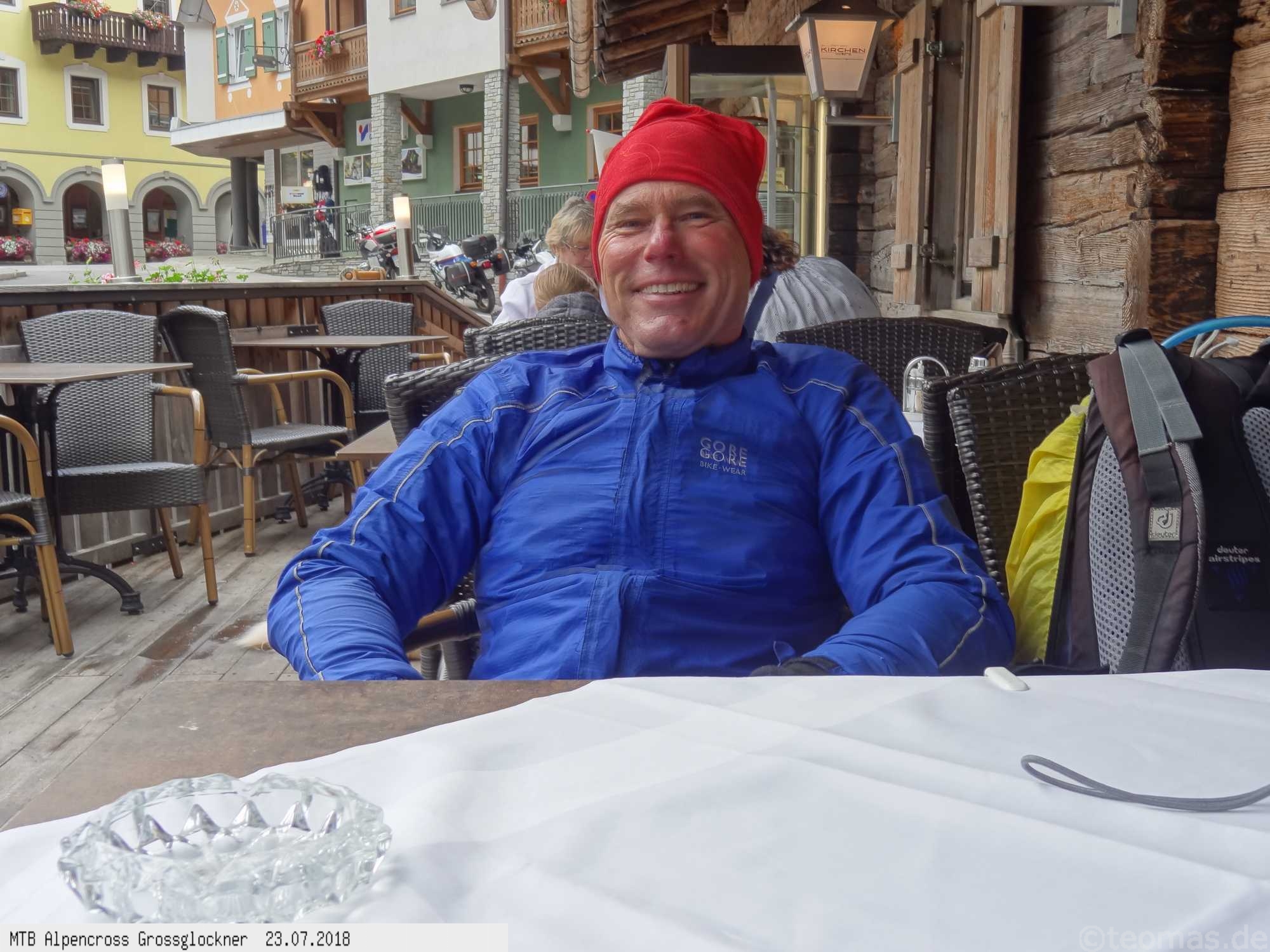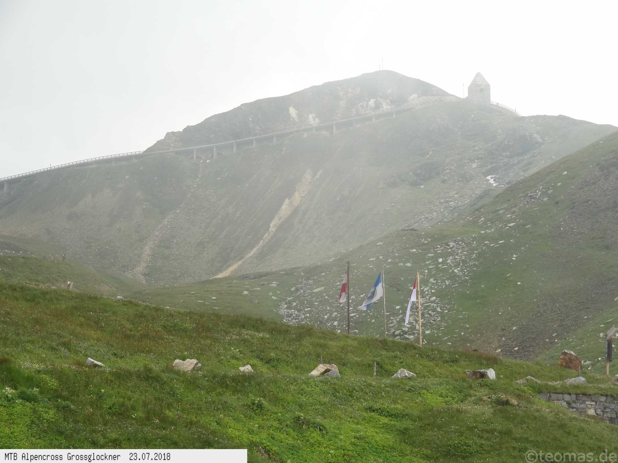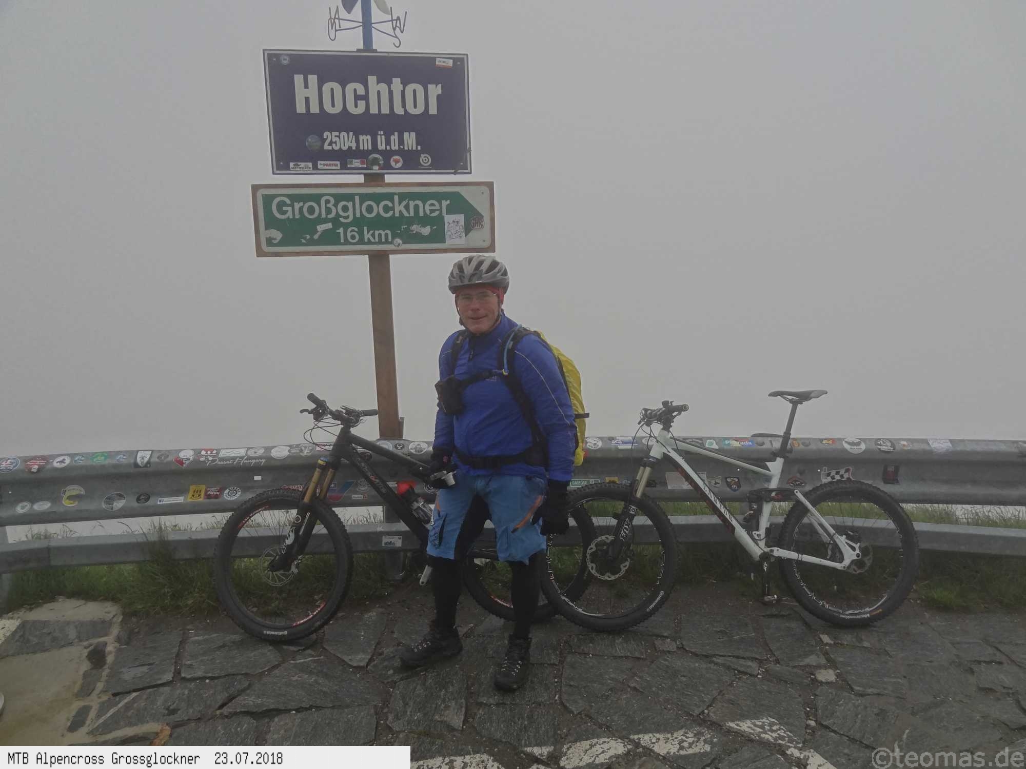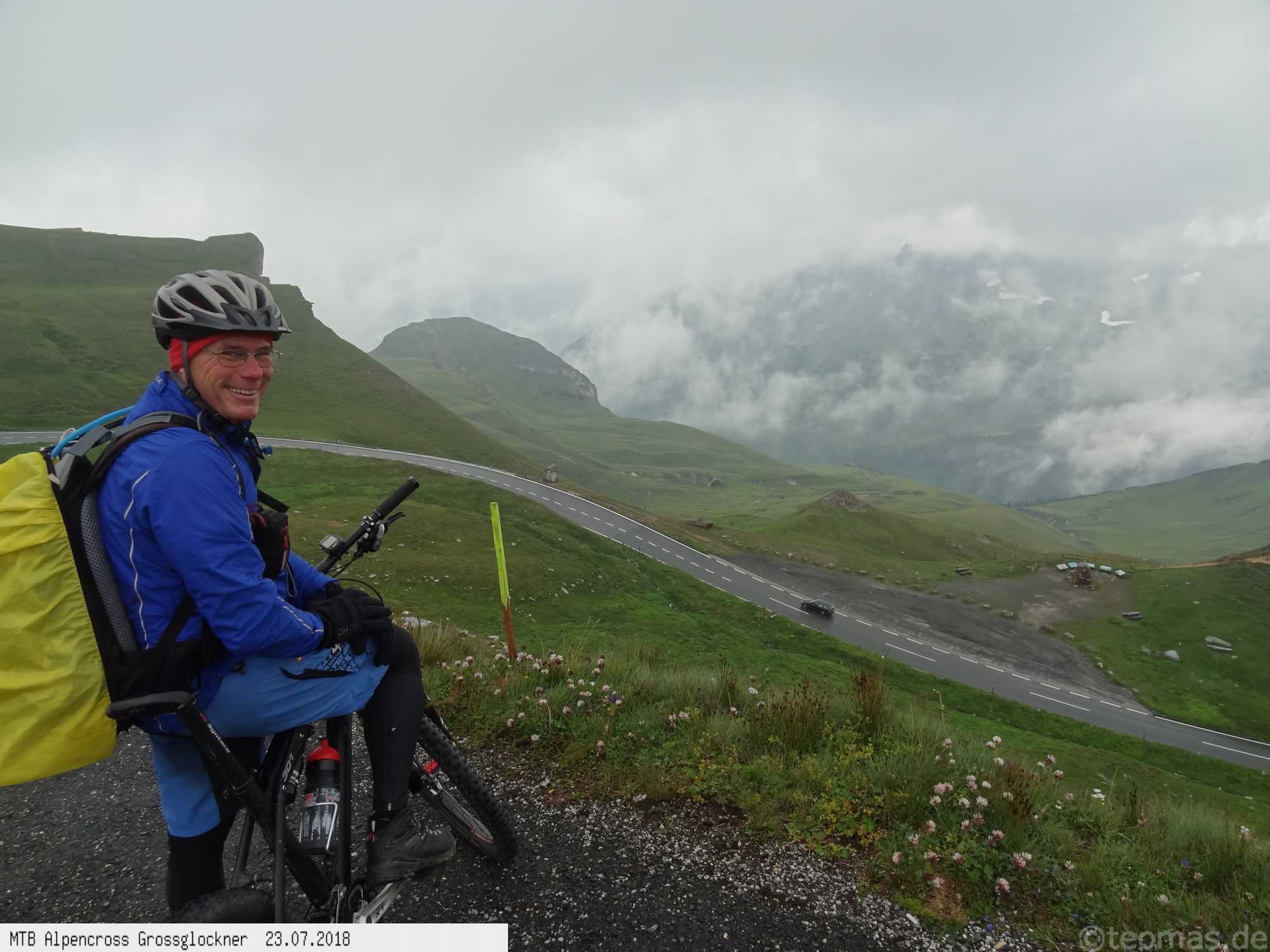 Am Morgen des dritten Tages Regen. Wir wagten es trotzdem, den Großglockner zu erklimmen, mussten aber im strömenden Regen nach 500 Hm kurz hinter Ferleiten abbrechen und nach Fusch zurückfahren. Ausrüstungspflege im Hotel Römerhof am frühen Vormittag! Den Rest des Tages mehr oder weniger im Hotel verbracht. Am 4. Tag hing der Nebel bis hinunter nach Fusch in den Bergen mit der Vorhersage: Oben wird es besser. Immerhin trocken, aber im dicken Nebel mit zum Teil nur 20 m Sicht bei 5°C war es nicht wirklich besser. Auf ca. 2.200 m mit allen verfügbaren Rad-Klamotten am Leib ohne große Pause bis nach Heiligenblut durchgefahren. Dort nach Schlotterabfahrt bei 16°C Mittagessen und weiter bis Winklern bei Lienz Hotel Tauerngold.