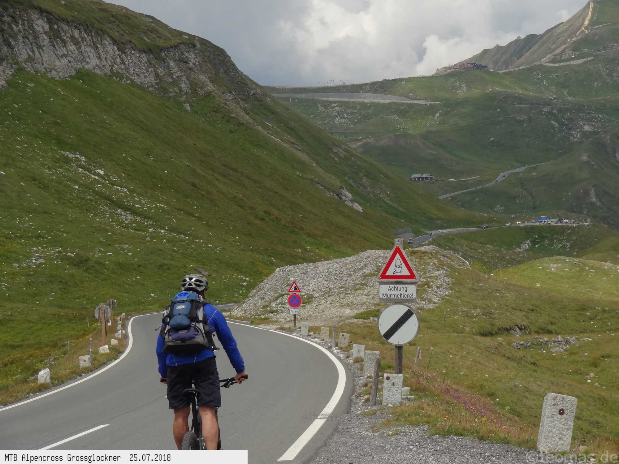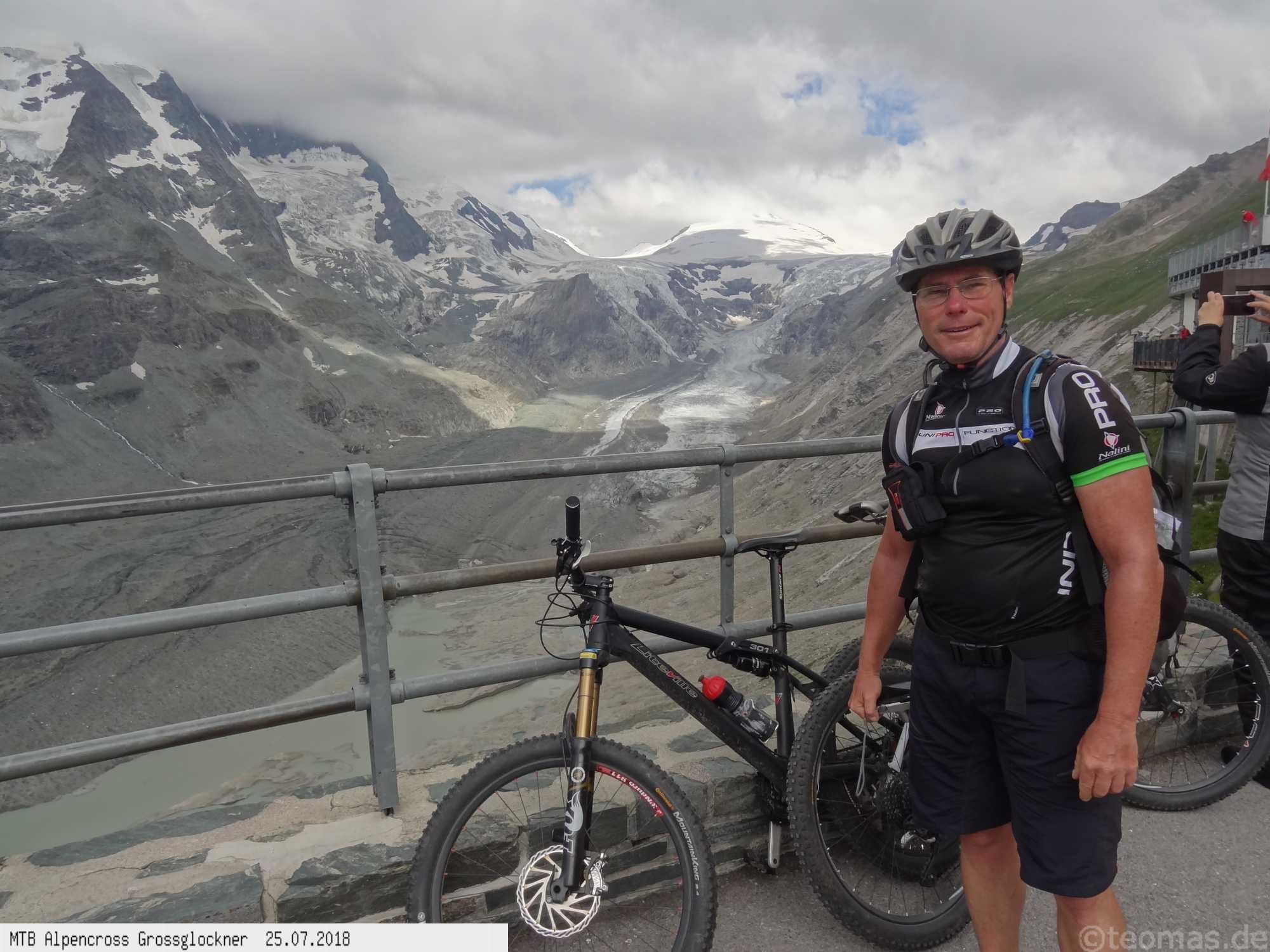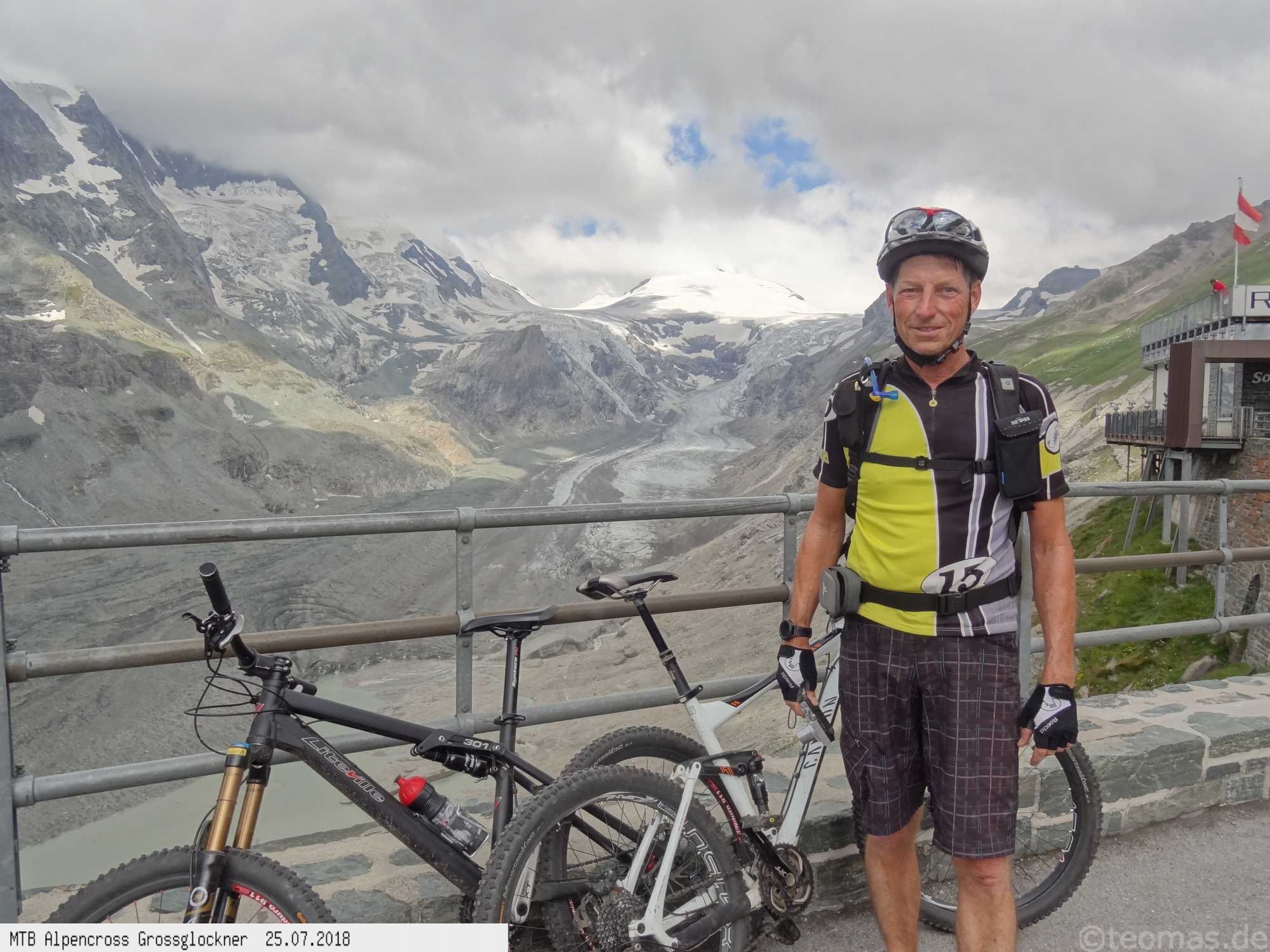 Am 6. Tag unsere ersehnte Belohnung bei halbwegs gutem Wetter am Glockner! Hinauf bis zum Besucherzentrum an der Pasterze auf der Kaiser Franz Josef Höhe, weiter bis zum Hochtor und Fuscher Törl bis hinauf zur Edelweißspitze. Hinunter bis Ferleiten, Mittagessen und nachmittags weiter bis Bruck, Taxenbach und Schwarzach an der Salzach entlang (Tauernradweg). Zwei Minuten nach Erreichen des Hotels Post in Schwarzach hat es wie aus Eimern gegossen, Gewitter. Mit dem Abendessen offenbar den Magen verdorben und eine unschöne Nacht erlebt. Am letzten Tag ohne Kraft und leerem Magen von Schwarzach über Werfen, Hallein bis nach Salzburg. Mit einigen wetterbedingten Umplanungen, aber ohne Panne und Stürze eine gelungene Alpenüberquerung!