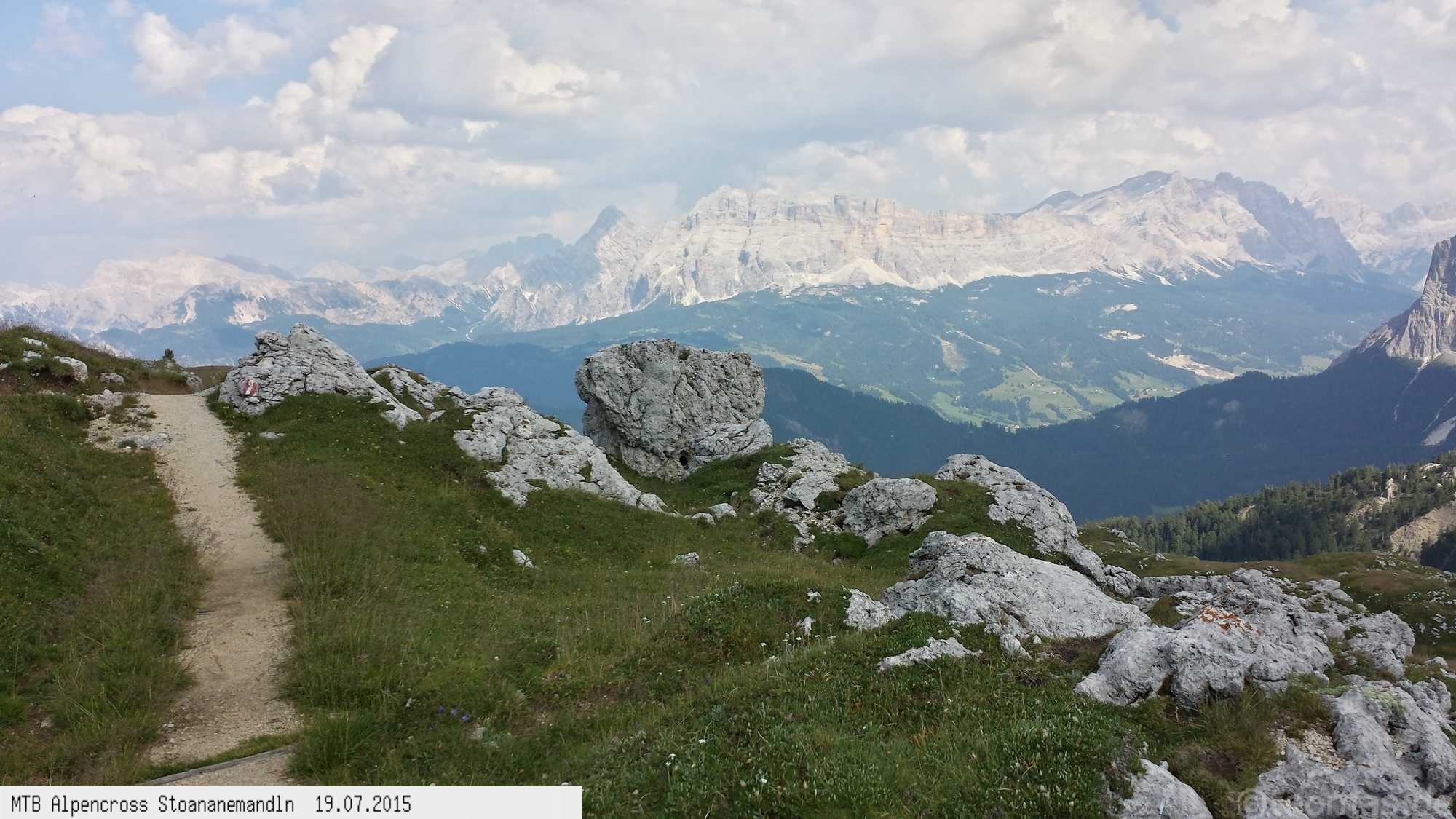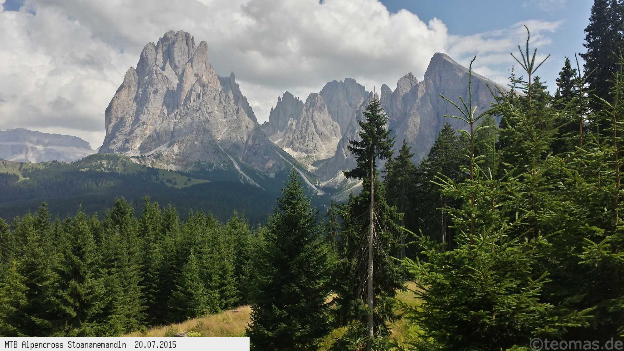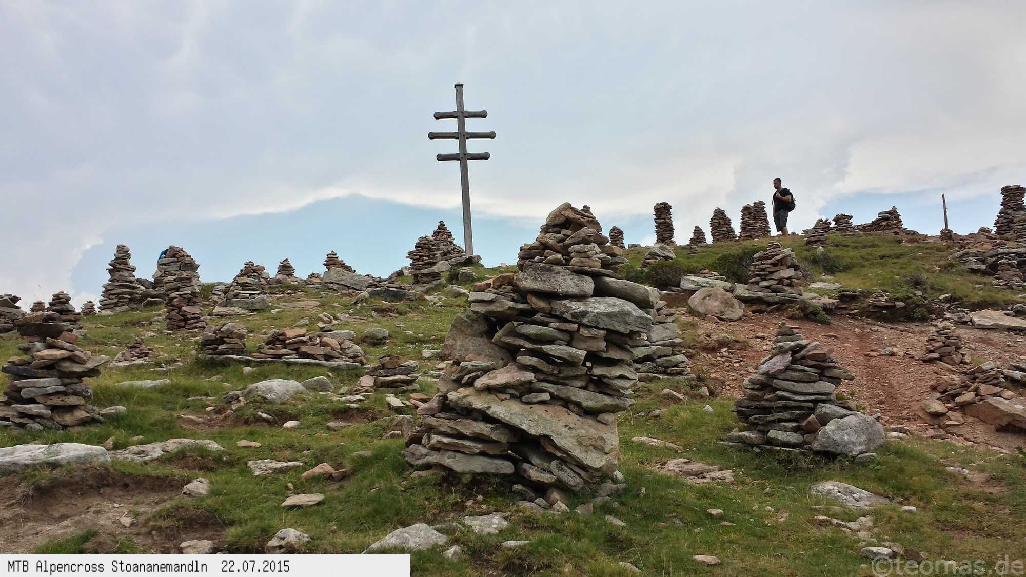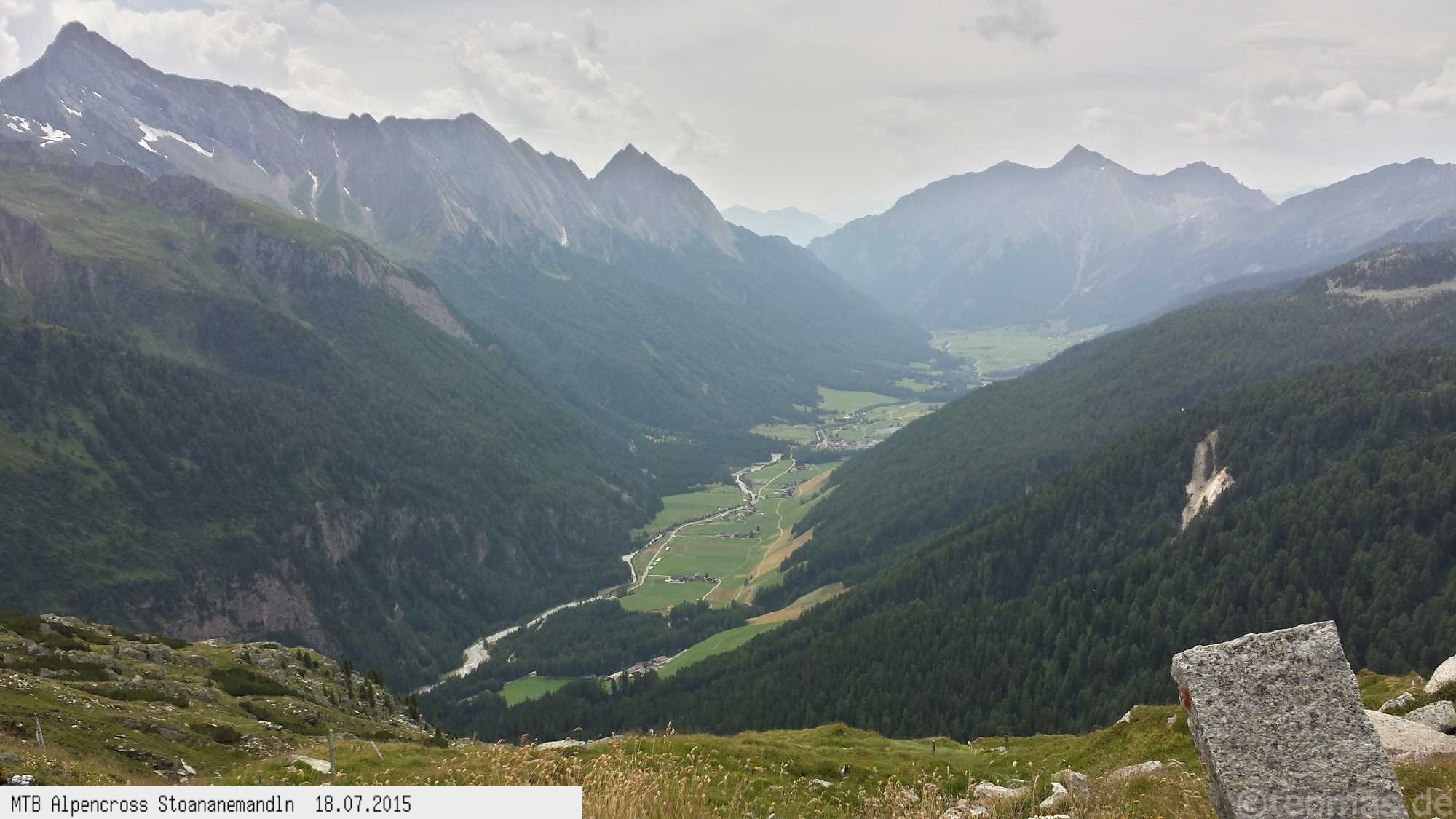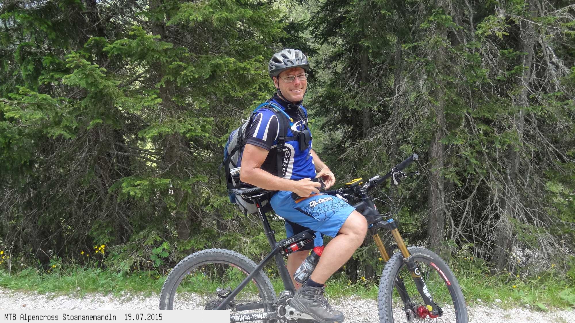 Die dem zweiten Trans-Alp Buch von Uli Stanciu entnommene Tour "Stoanane Mandln" haben wir von knapp 20.000 Hm auf ein für uns durchführbares Maß entschärft. 6 Fahrtage reichen uns völlig! Start in Kramsach am Inn, sämtliche Highlights wie das Pfitscher Joch und die Dolomiten wurden gefahren. Ziel in Eppan, die Schußetappen bis zum Gardasee haben wir ausgelassen. Am ersten Tag anspruchsvolle, steile Auffahrt zum Geiseljoch bei 41°C mit anschließender kalter Gewitter-Dusche bei 10°C hinunter nach Tux.