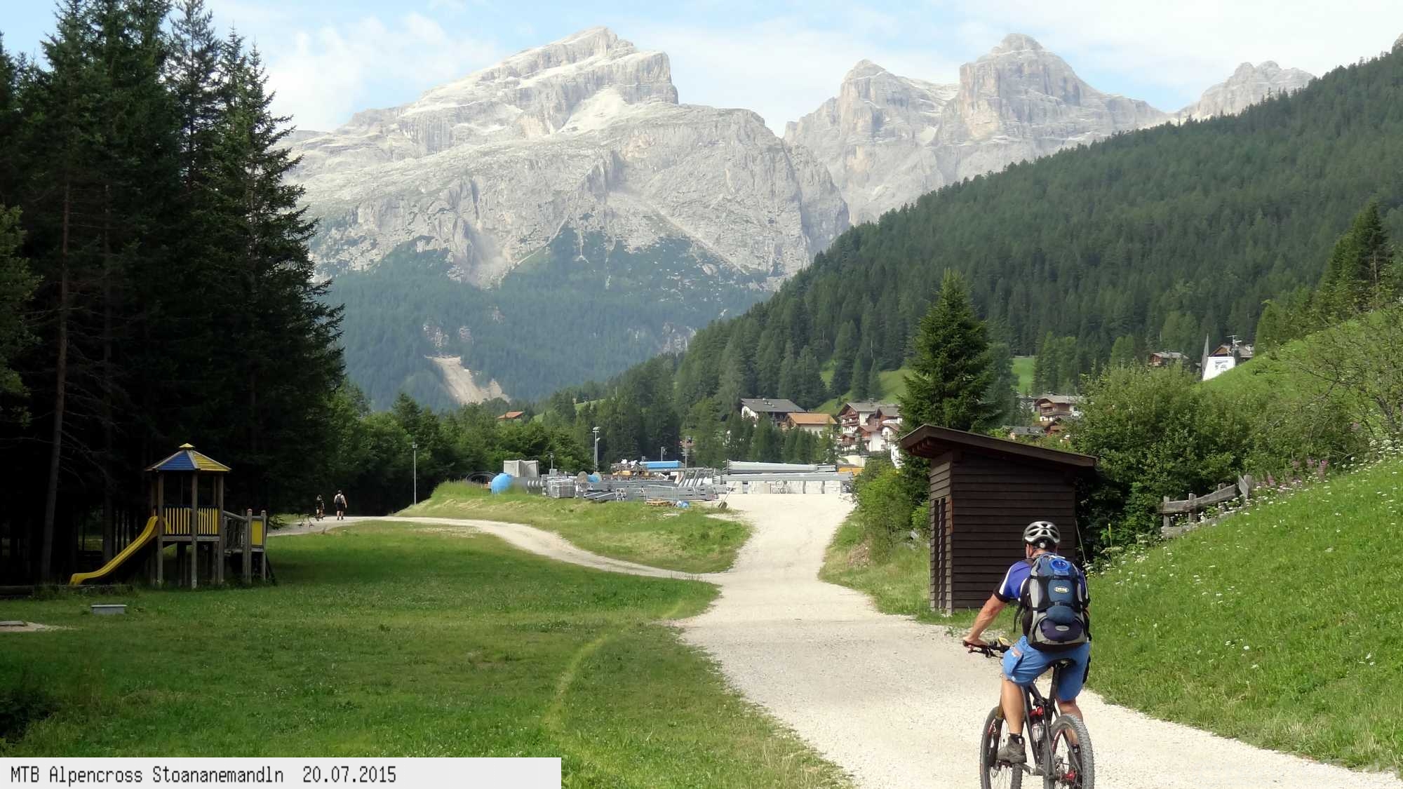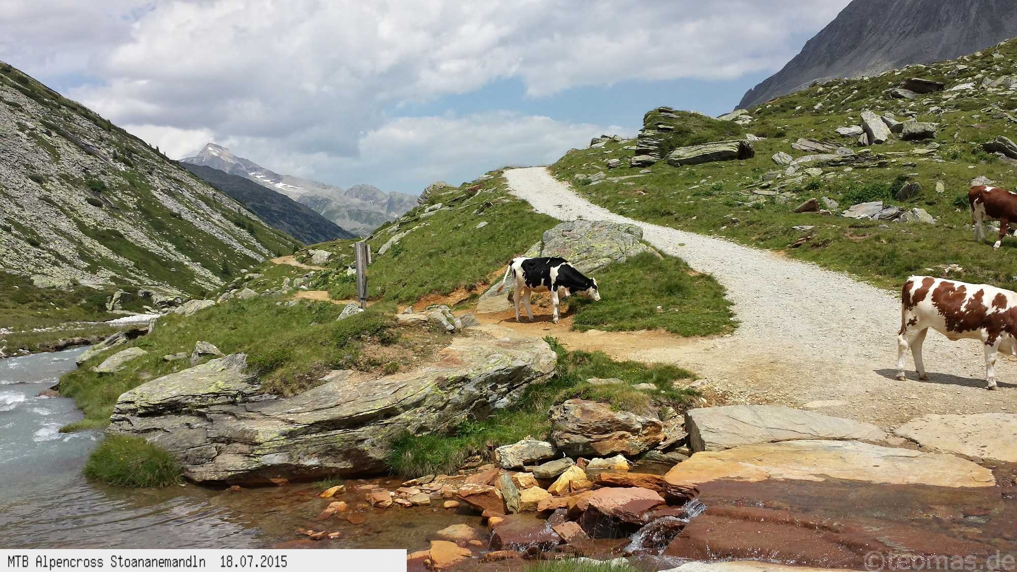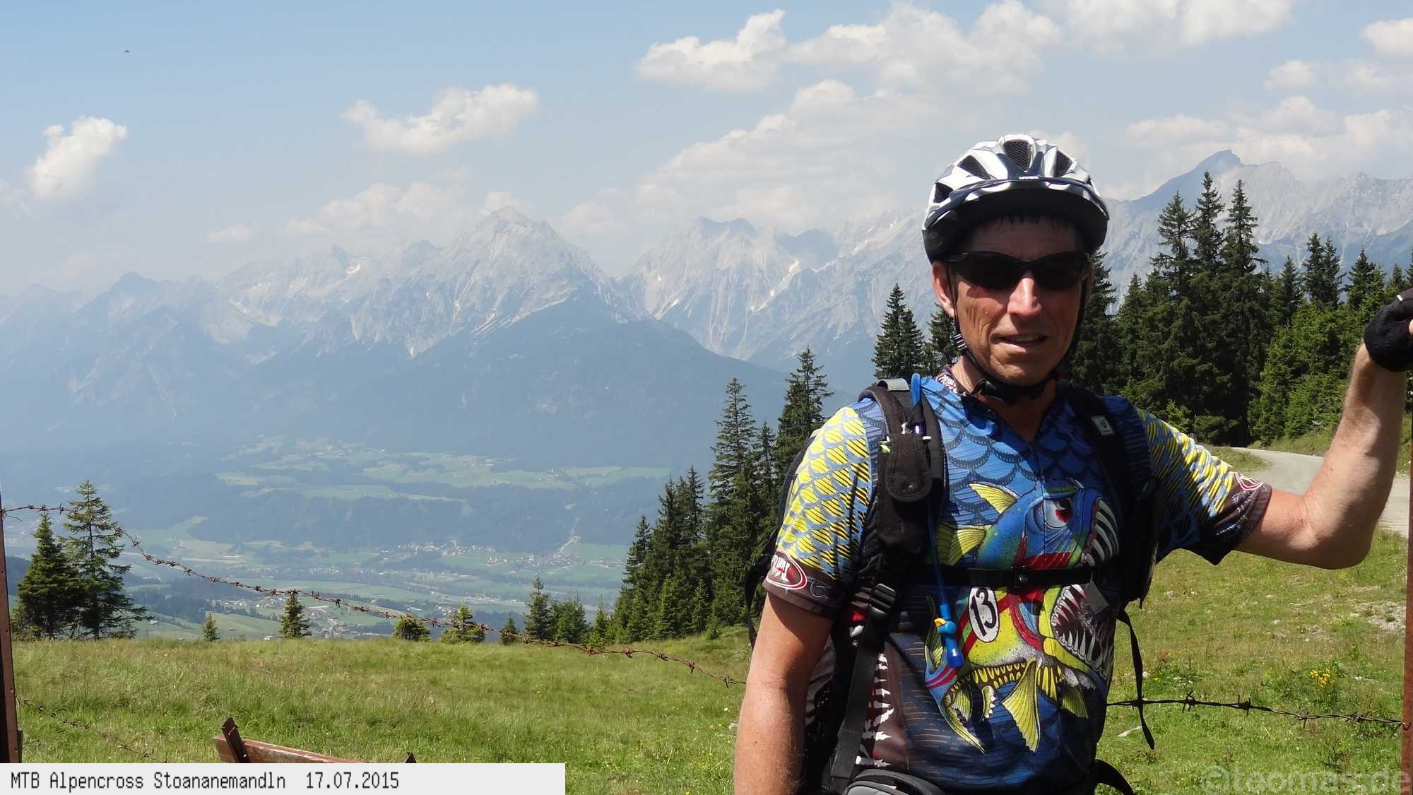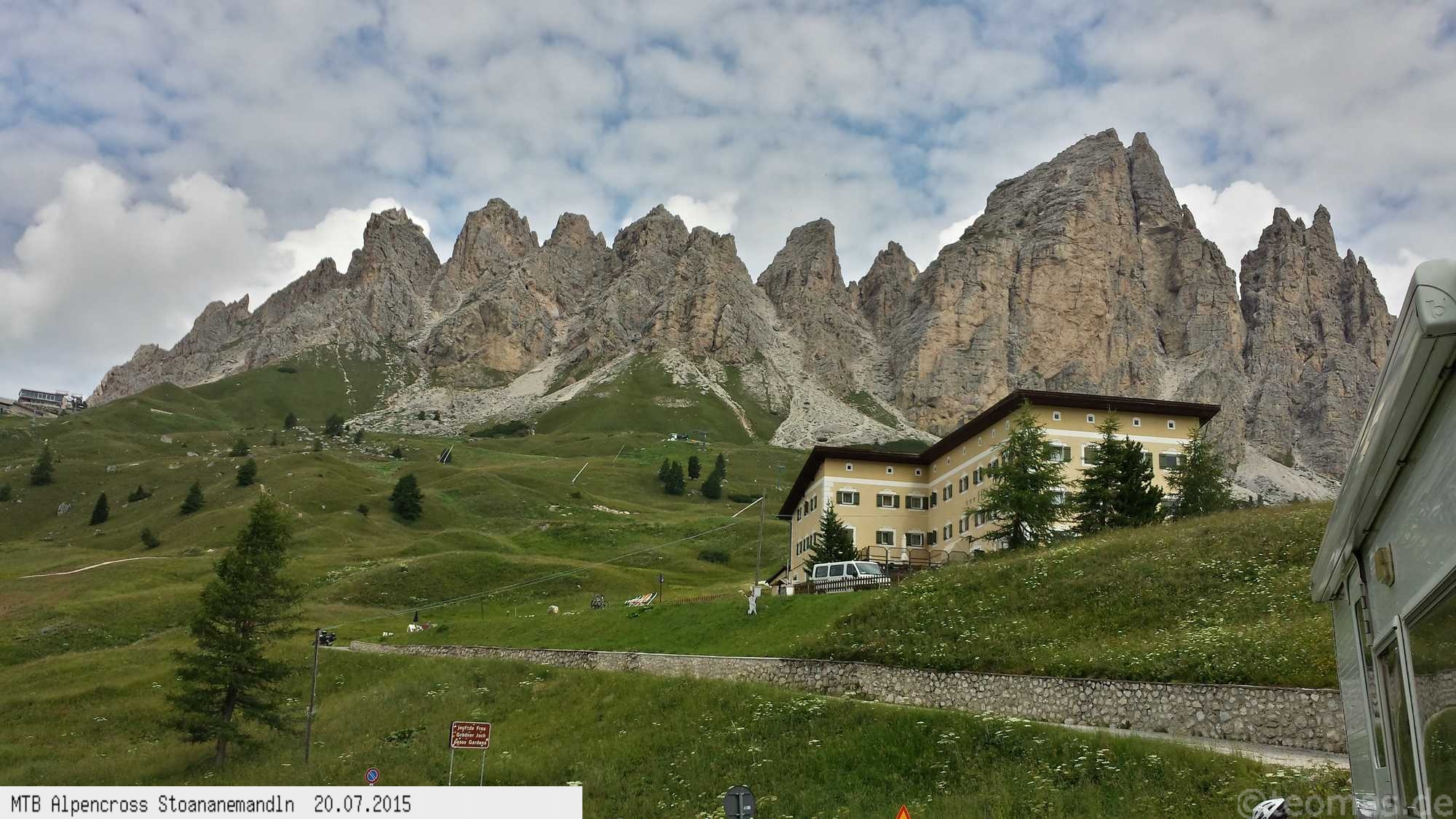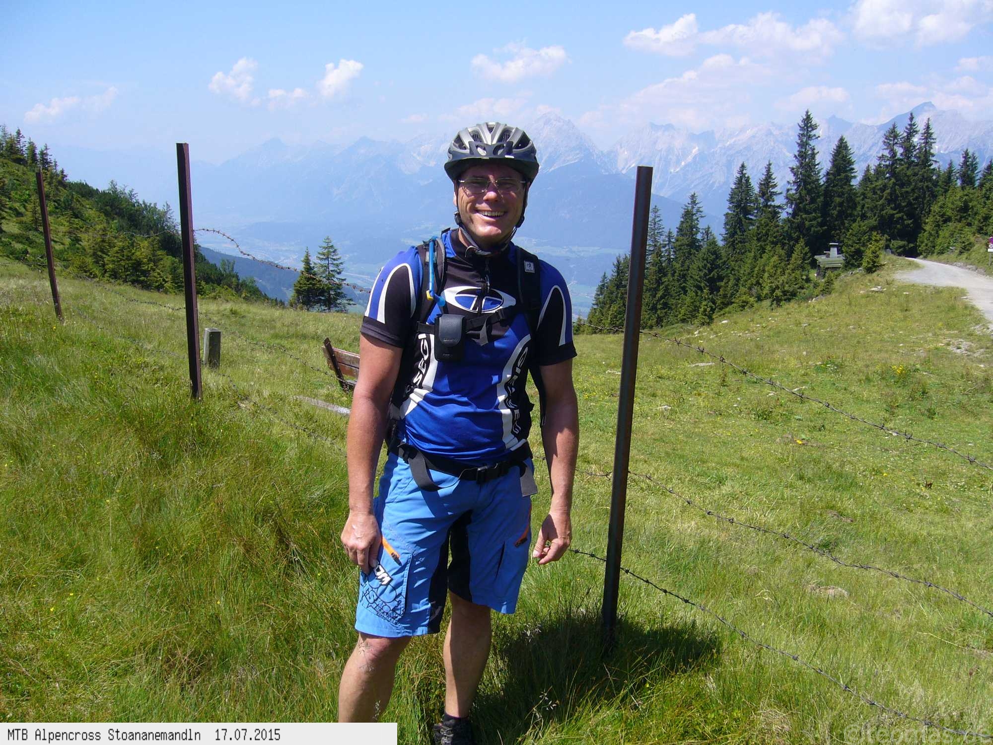 Die dem zweiten Trans-Alp Buch von Uli Stanciu entnommene Tour "Stoanane Mandln" haben wir von knapp 20.000 Hm auf ein für uns durchführbares Maß entschärft. 6 Fahrtage reichen uns völlig! Start in Kramsach am Inn, sämtliche Highlights wie das Pfitscher Joch und die Dolomiten wurden gefahren. Ziel in Eppan, die Schußetappen bis zum Gardasee haben wir ausgelassen. Am ersten Tag anspruchsvolle, steile Auffahrt zum Geiseljoch bei 41°C mit anschließender kalter Gewitter-Dusche bei 10°C hinunter nach Tux.