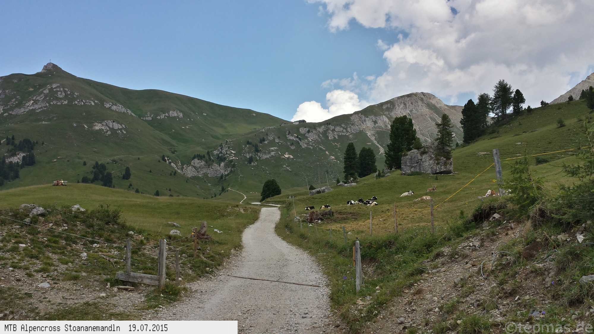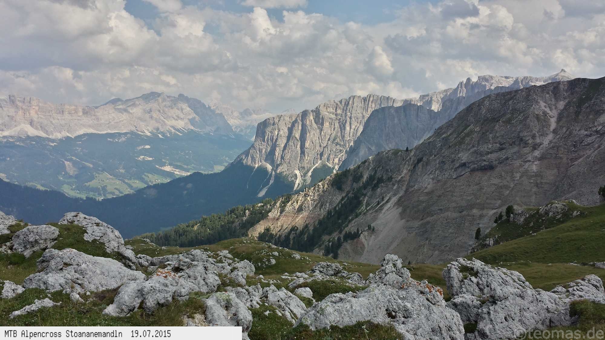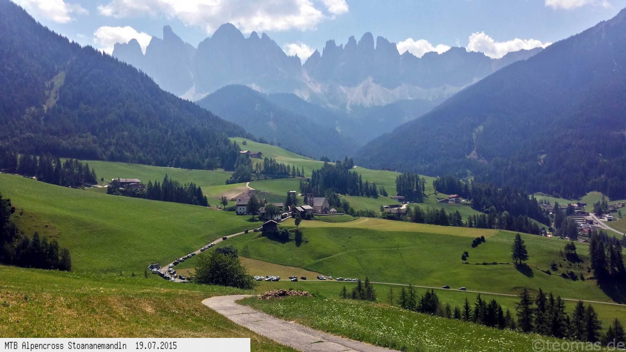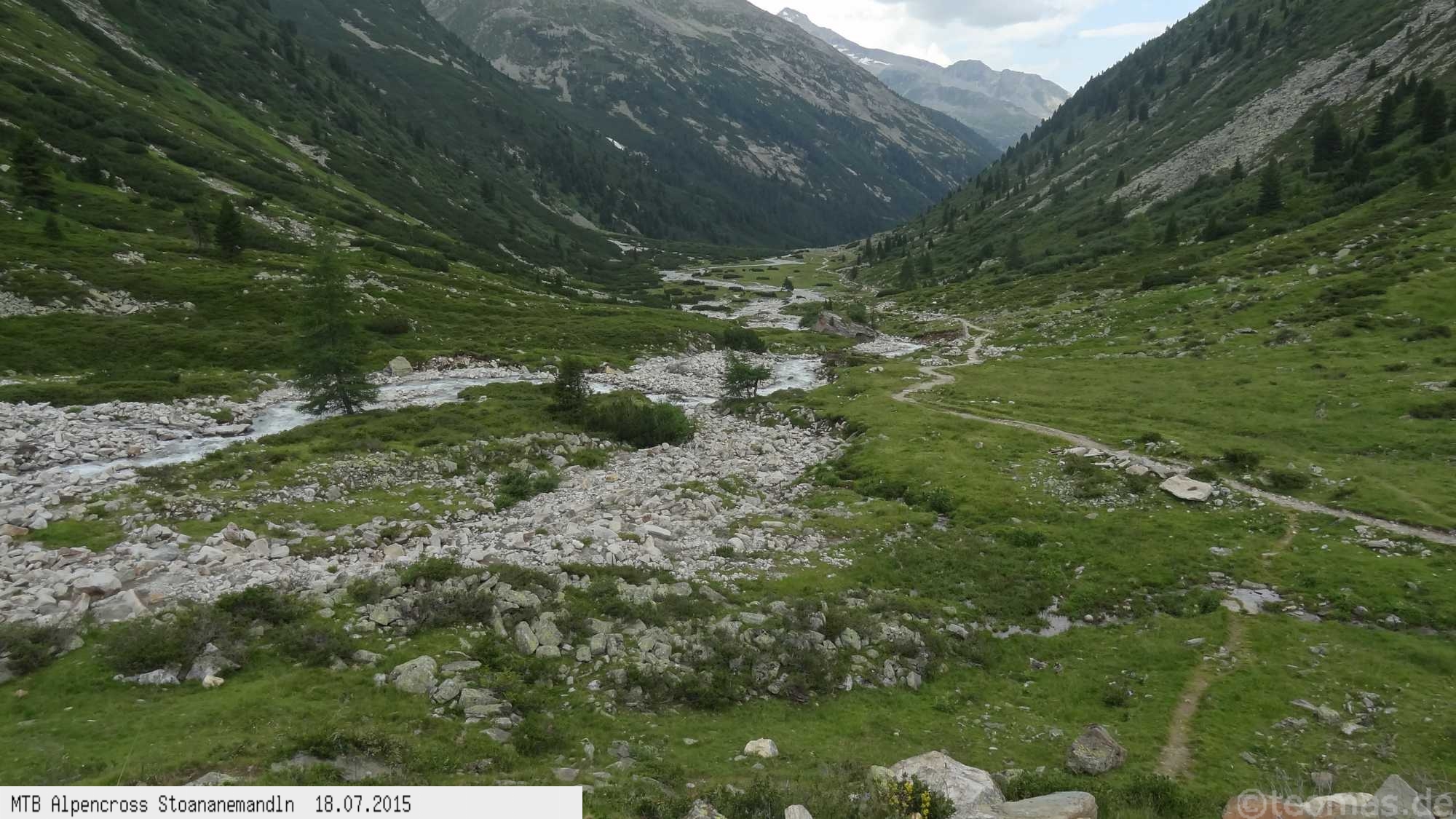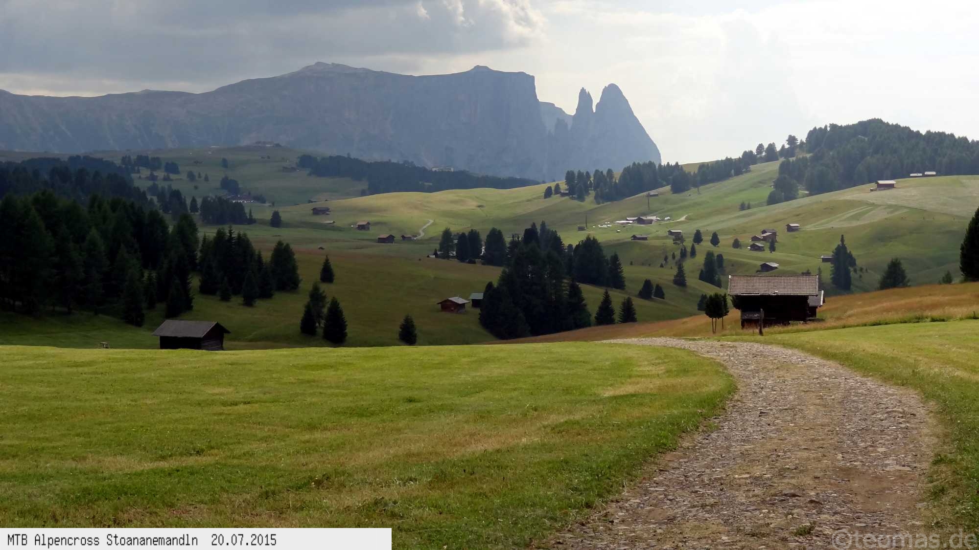 Die dem zweiten Trans-Alp Buch von Uli Stanciu entnommene Tour "Stoanane Mandln" haben wir von knapp 20.000 Hm auf ein für uns durchführbares Maß entschärft. 6 Fahrtage reichen uns völlig! Start in Kramsach am Inn, sämtliche Highlights wie das Pfitscher Joch und die Dolomiten wurden gefahren. Ziel in Eppan, die Schußetappen bis zum Gardasee haben wir ausgelassen. Am ersten Tag anspruchsvolle, steile Auffahrt zum Geiseljoch bei 41°C mit anschließender kalter Gewitter-Dusche bei 10°C hinunter nach Tux.