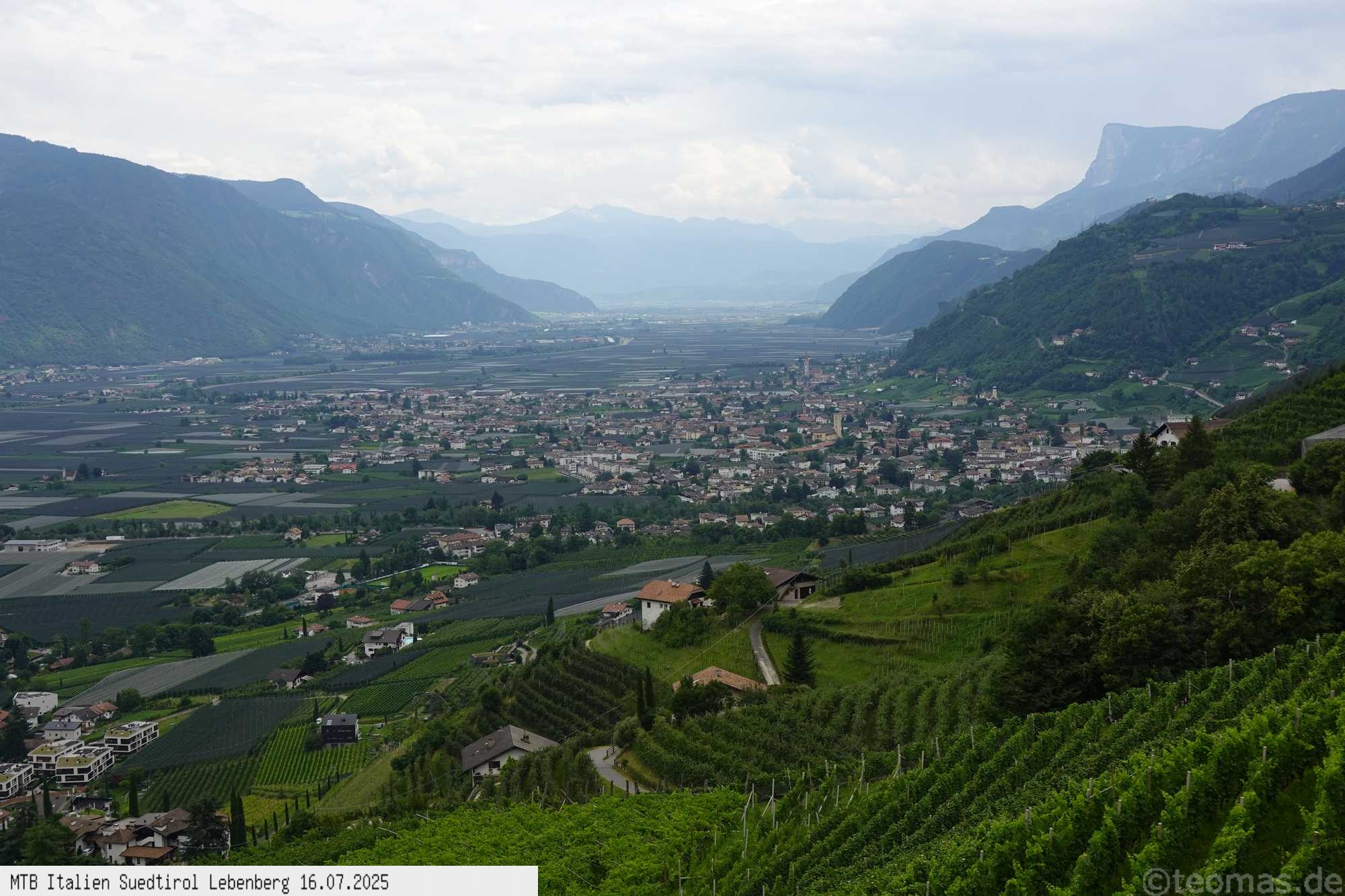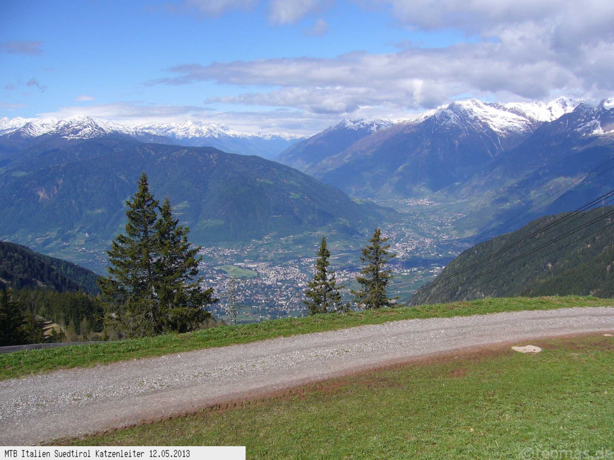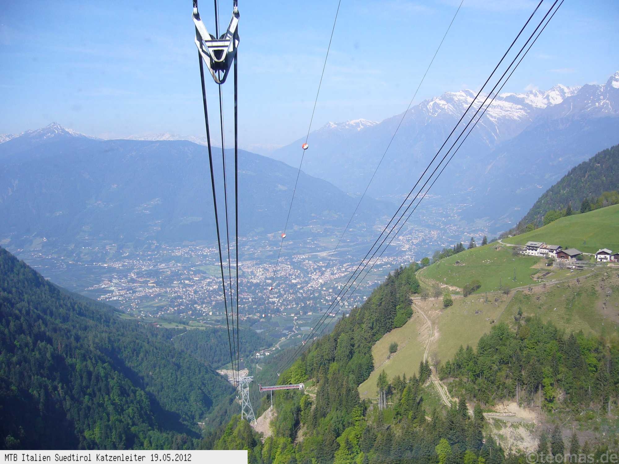 Von Andrian im Etschtal kurbelt man bis Meran und nach Naif zur Seilbahn Meran 2000 auf steiler 14%iger Teerstraße ab Meran.