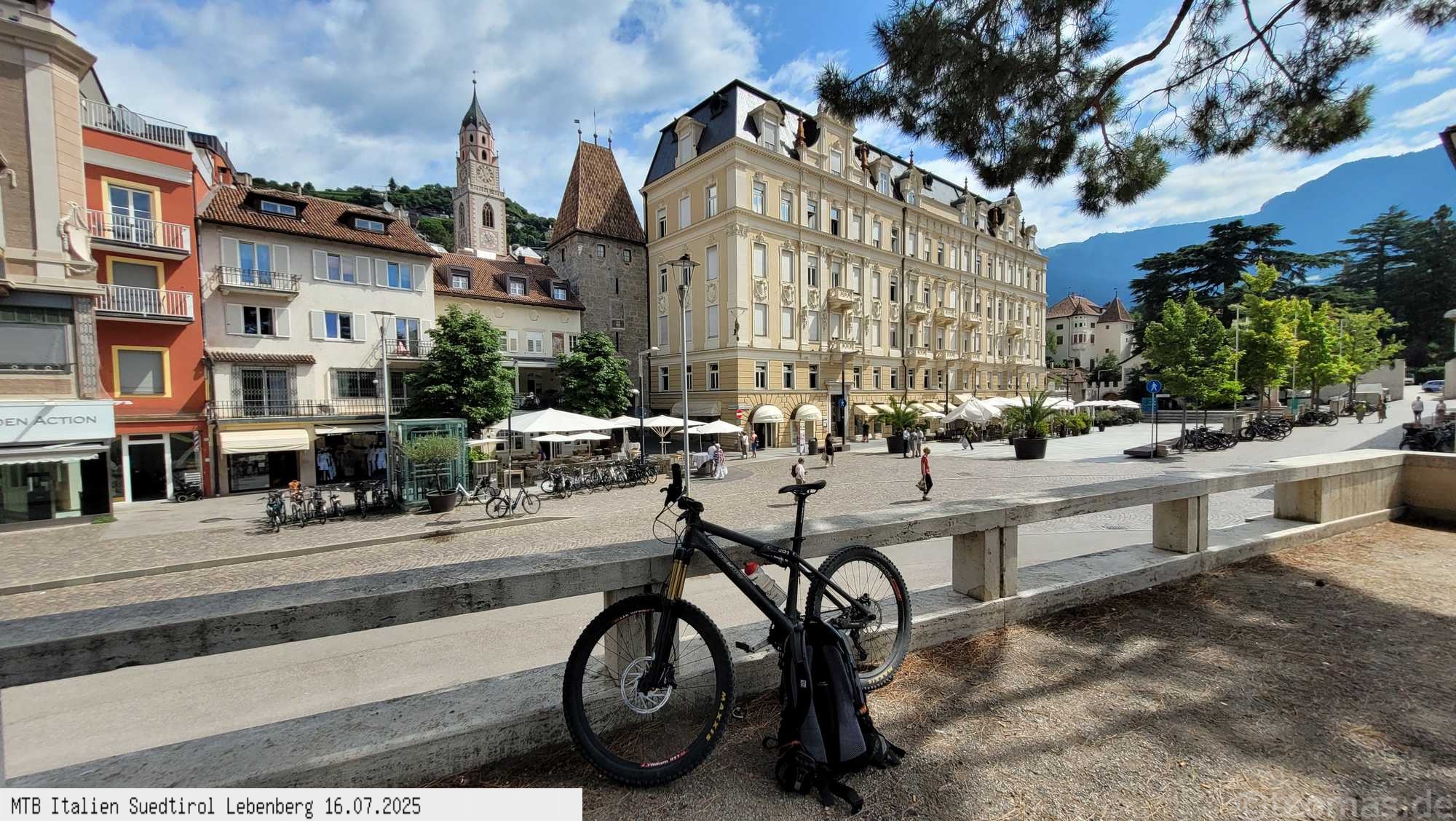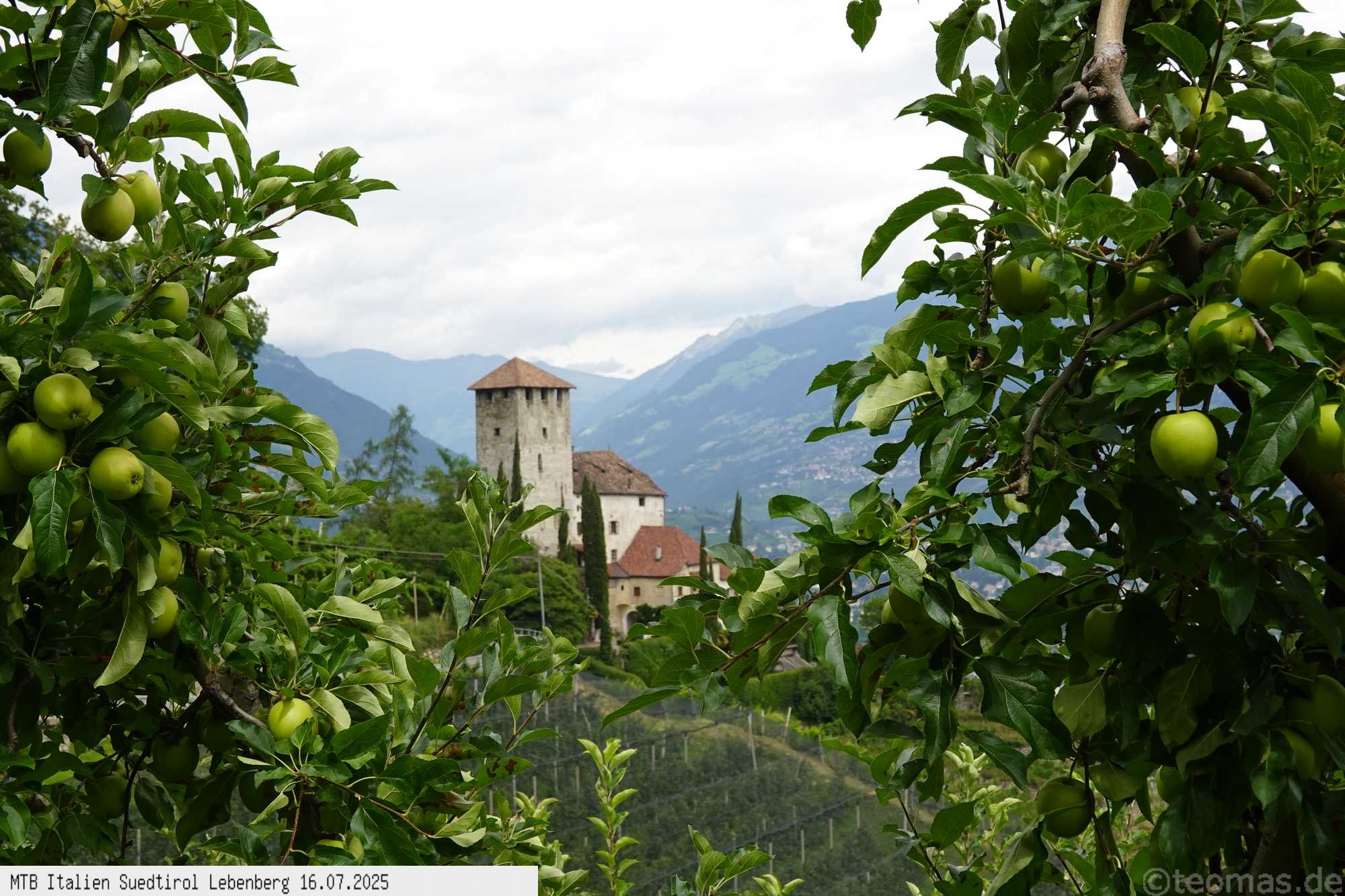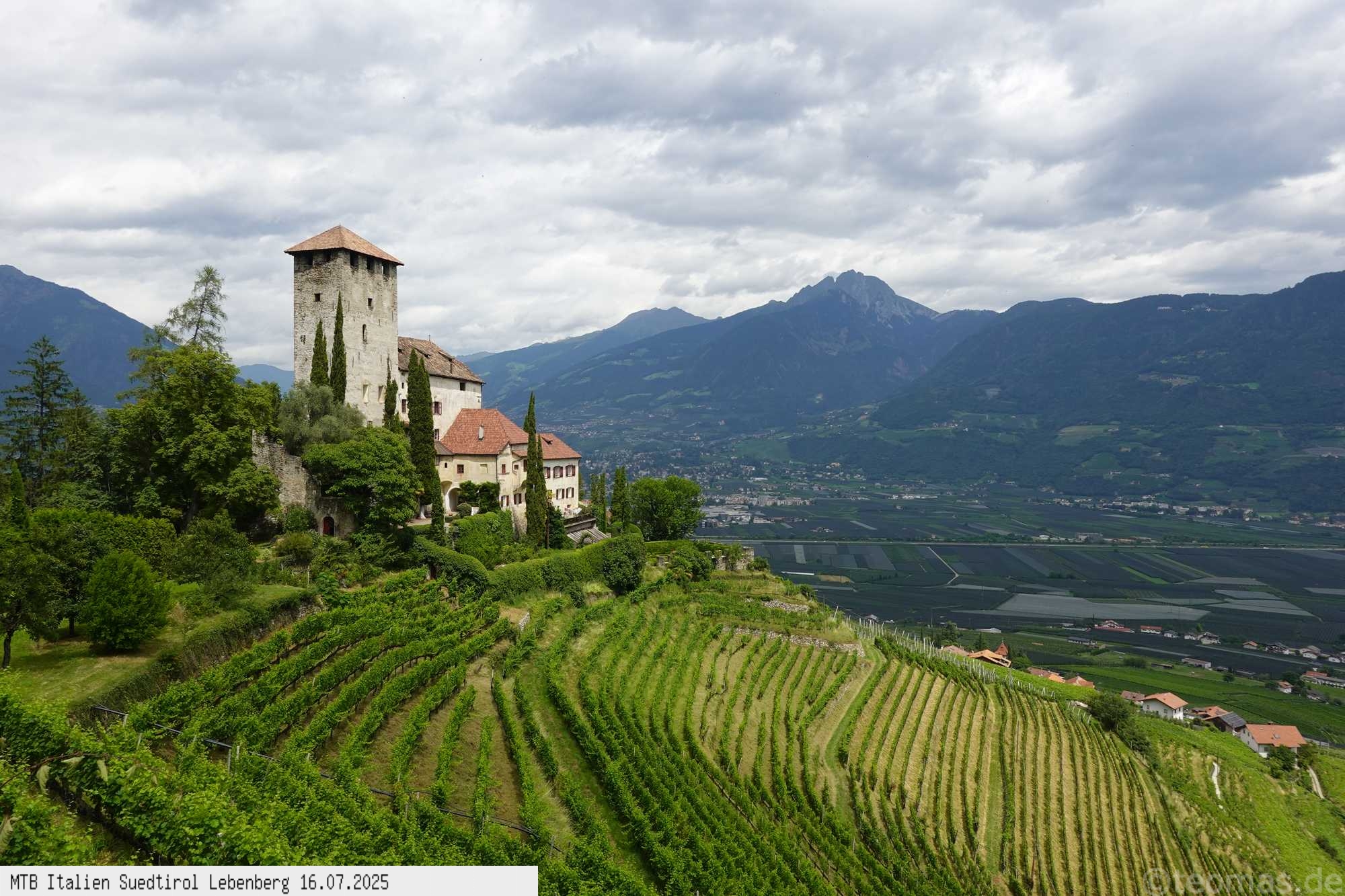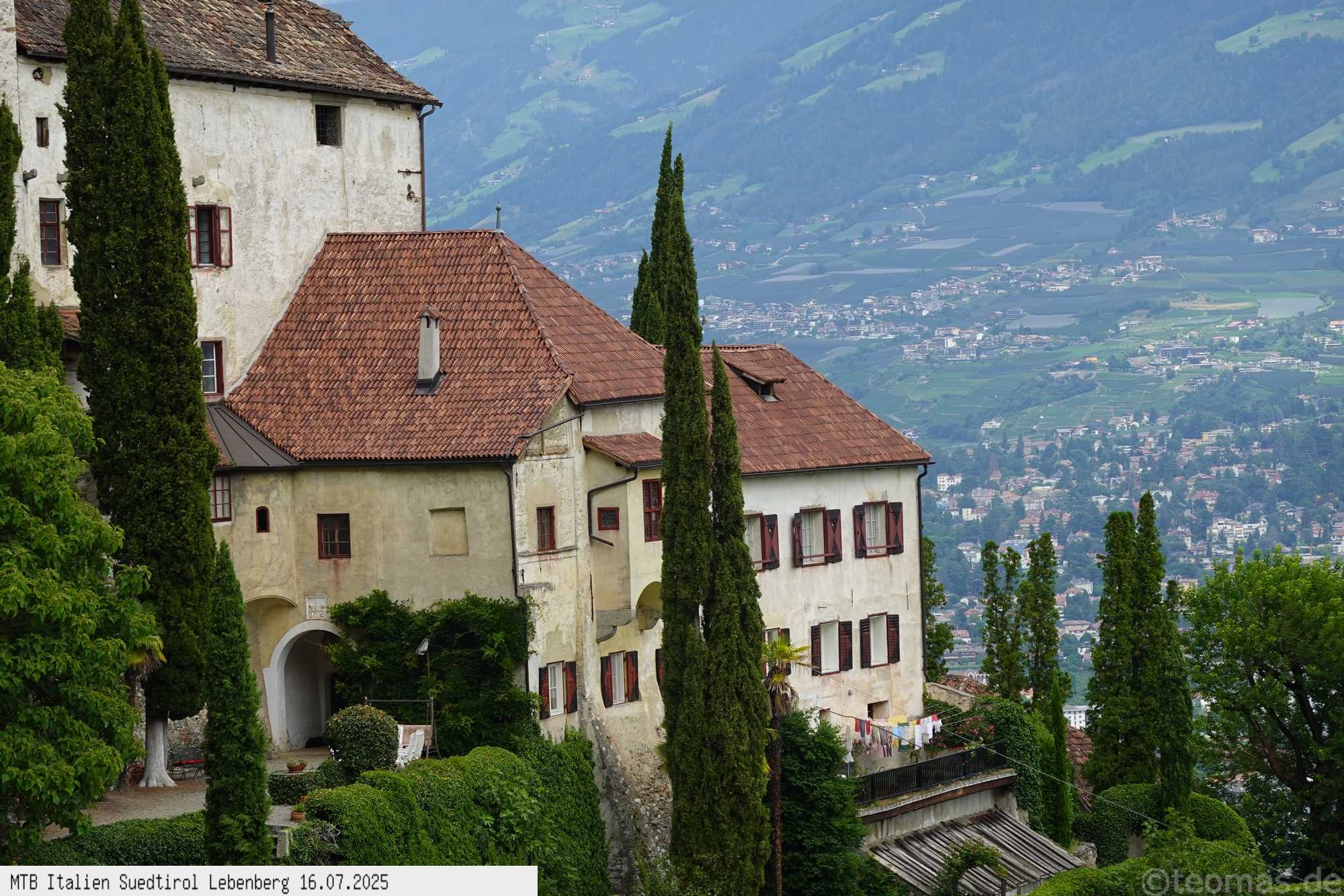 Von Andrian im Etschtal kurbelt man bis Meran und nach Naif zur Seilbahn Meran 2000 auf steiler 14%iger Teerstraße ab Meran.