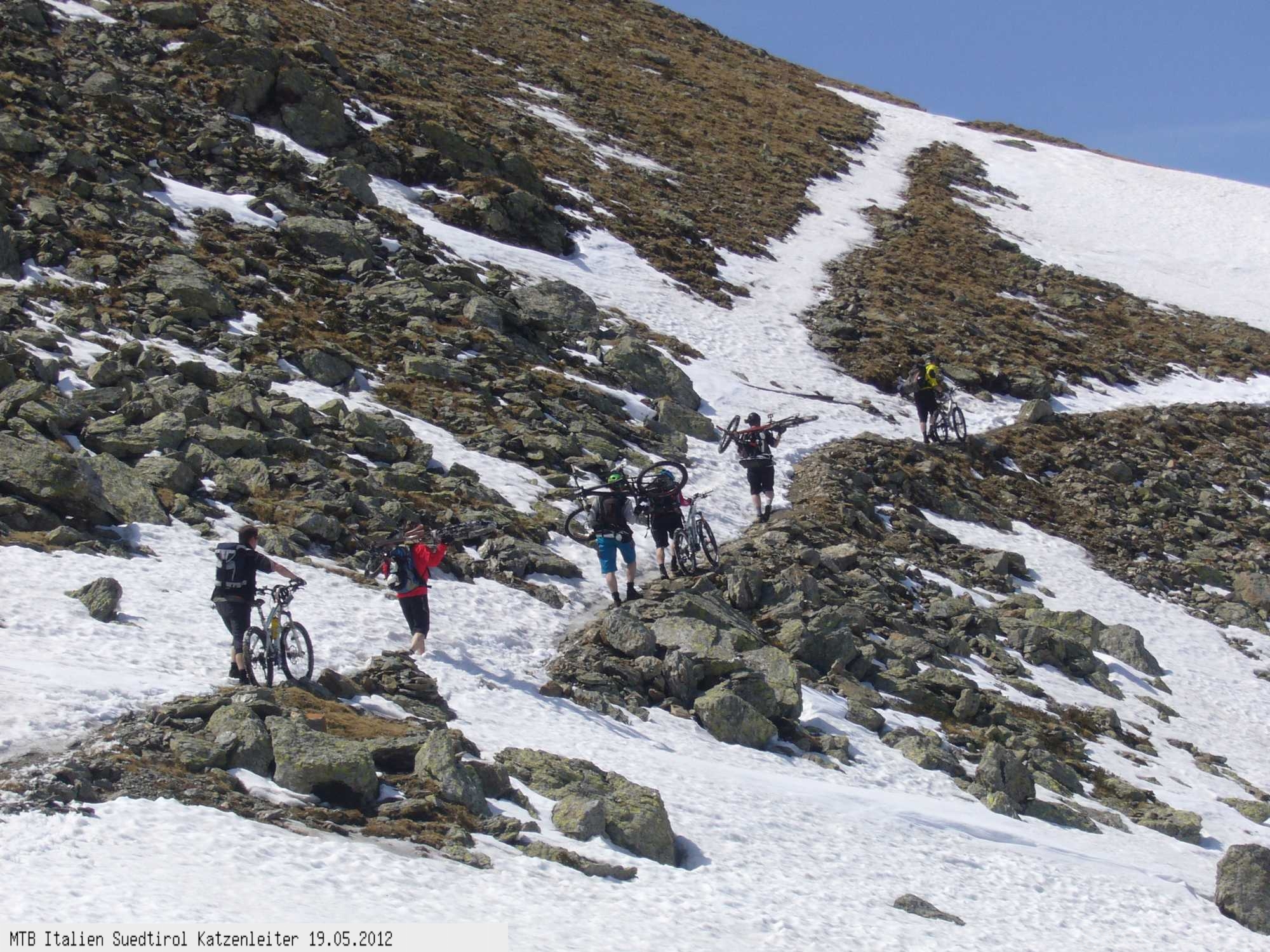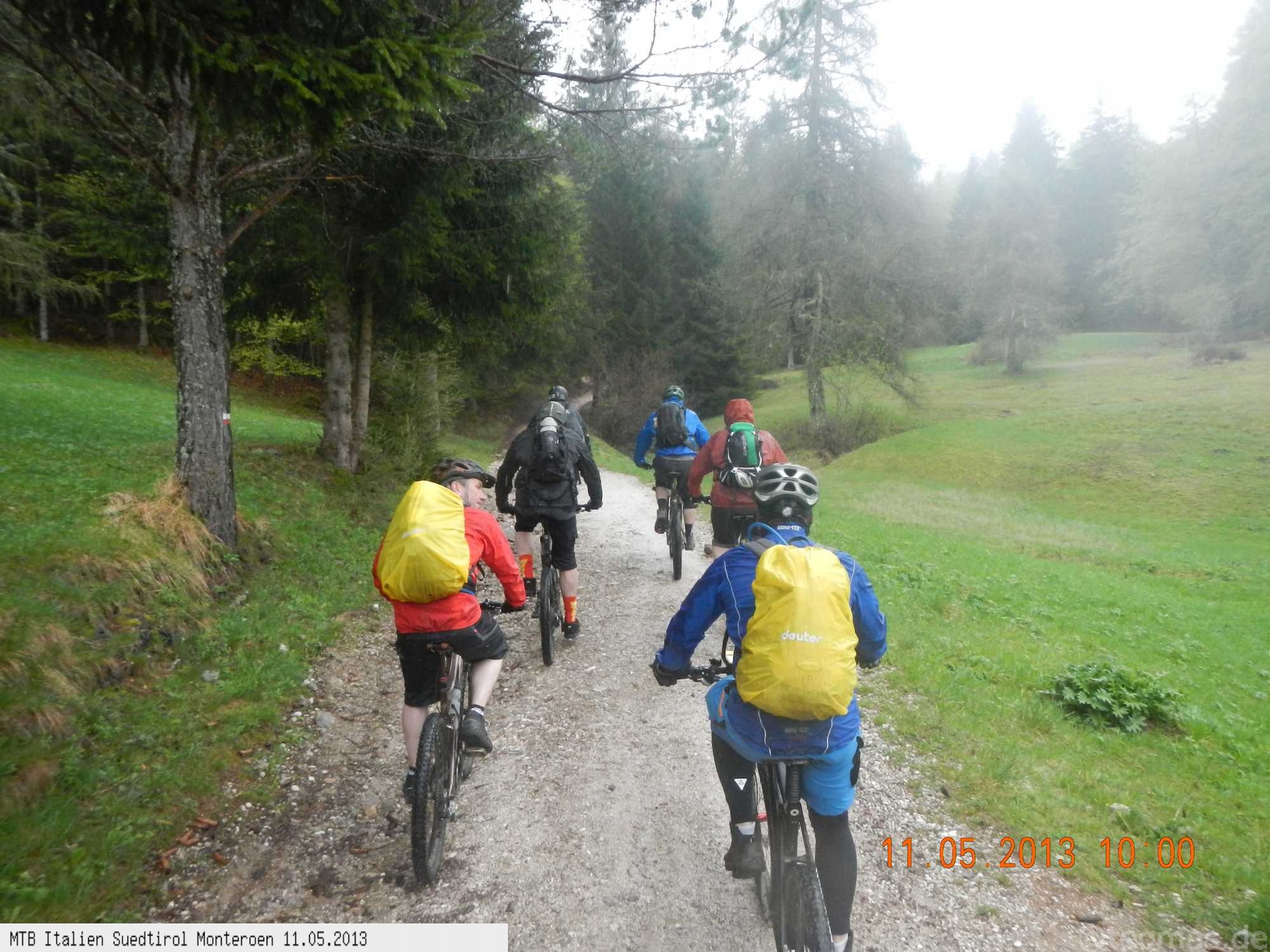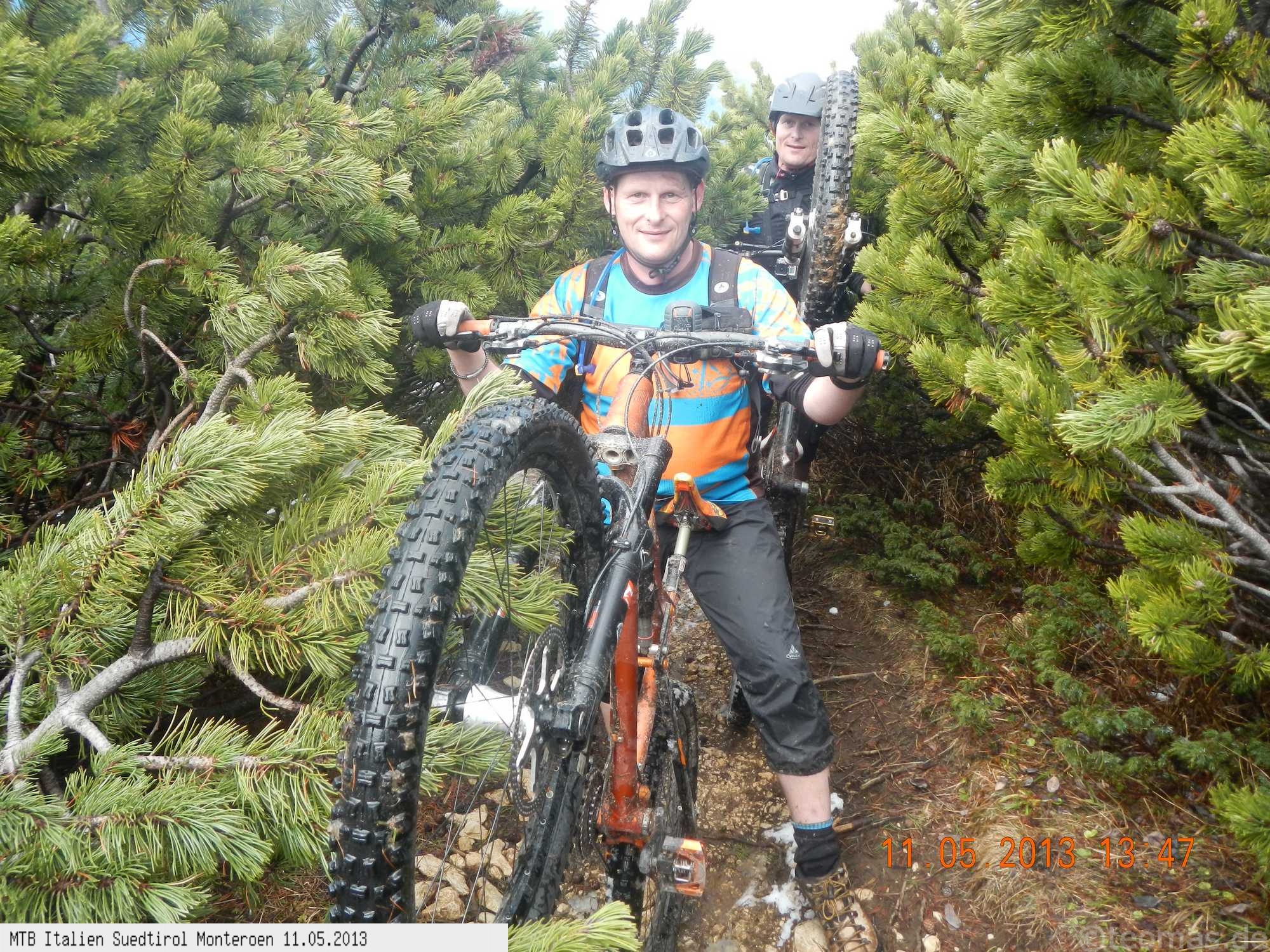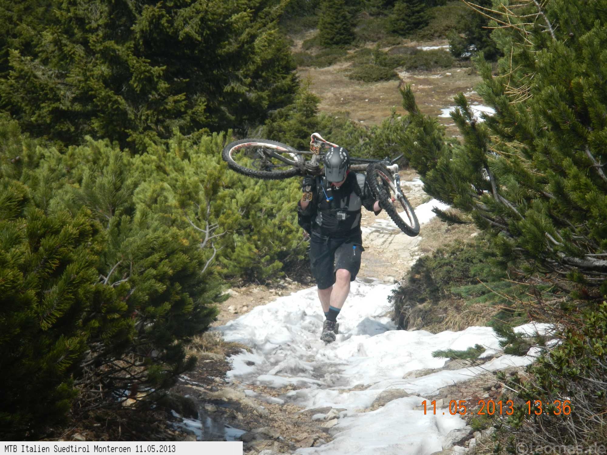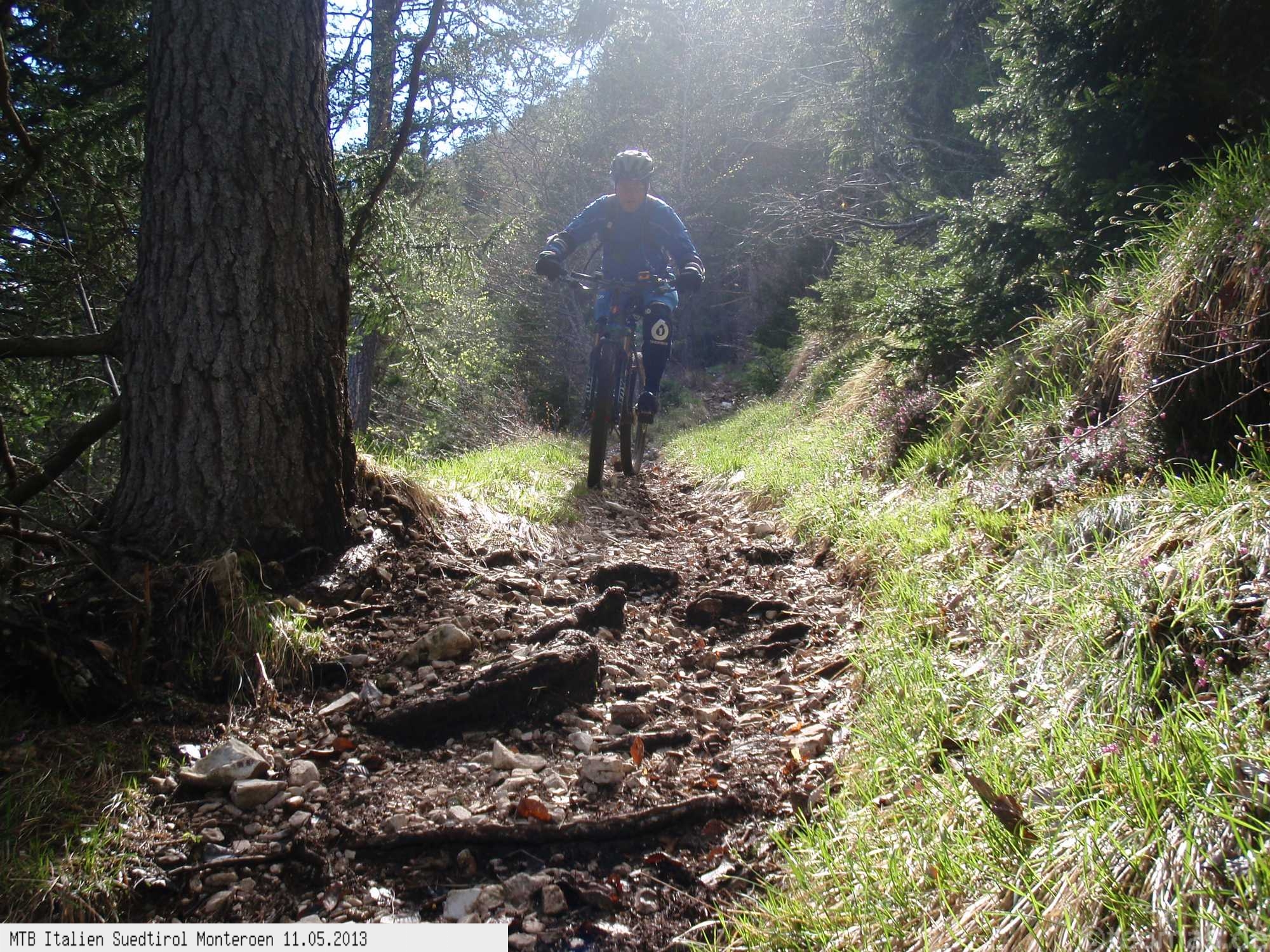 die Anfahrt hoch zum Monte Roen in die Länge. Oben wird man belohnt mit einem tollen Downhill auf technischem Gelände, einige Varianten sind möglich.