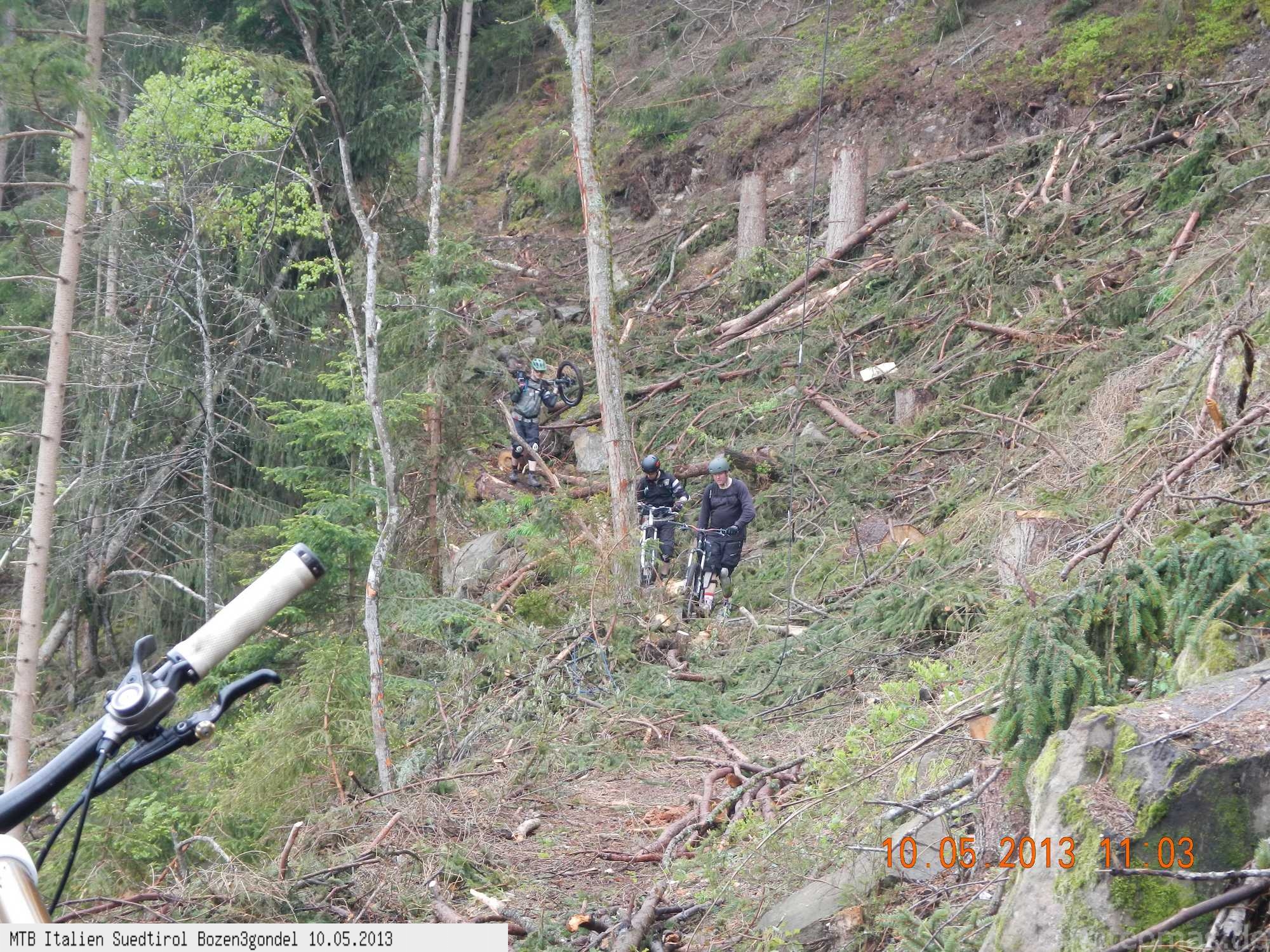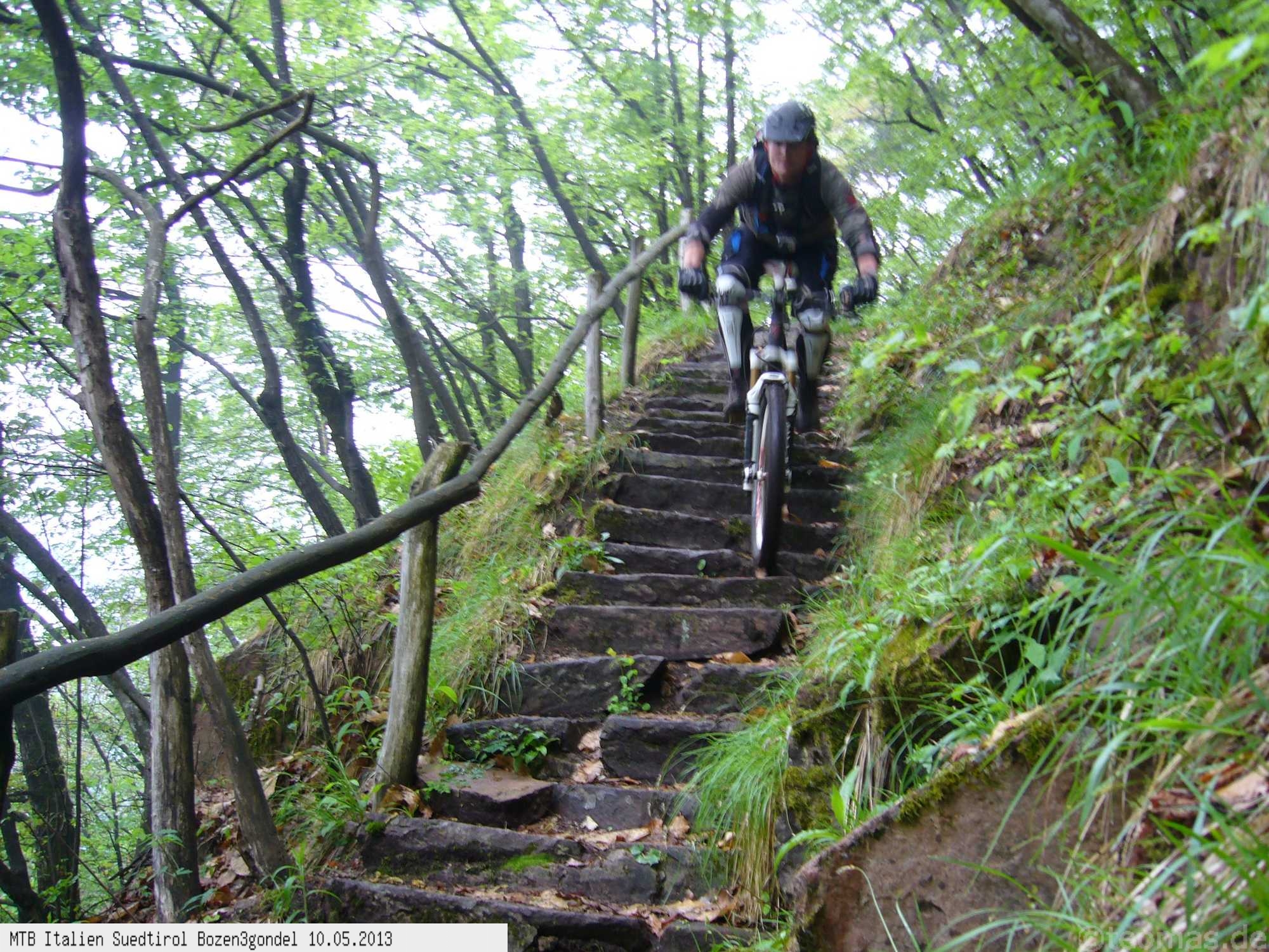 Dann Downhill bis Bozen über den Schleimsteig Schluchtenweg bis Grissmann, Sopra, Oberbozen, und Trail Nr. 2 hinunter