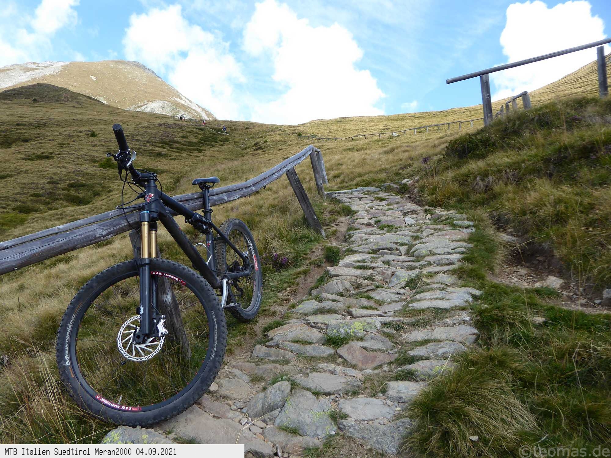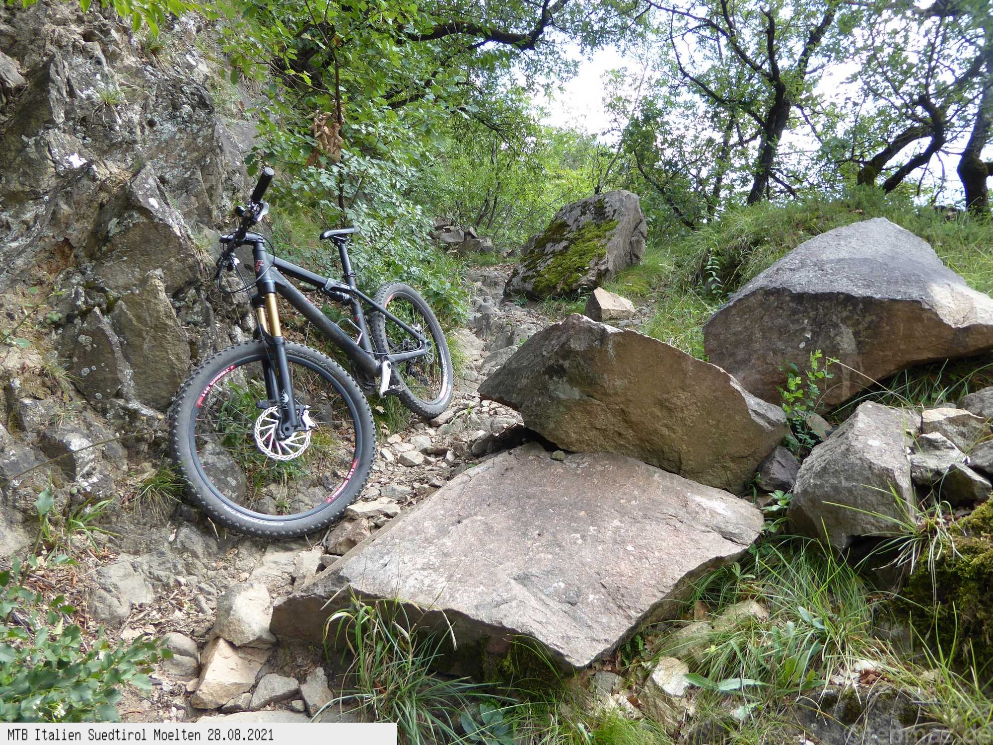 Direkt vom Mendelpass startet ein verblockter Trail mit einigen schönen Aussichtspunkten. Entweder hochkurbeln oder