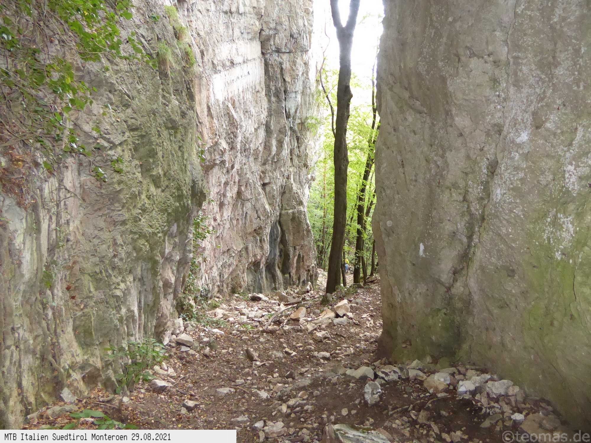 Wegen eines Felssturzes im Jahr 2021 war der Wanderweg gesperrt, mit beschwerlichem Klettern über Bäume unf Felsen sehr abenteuerlich