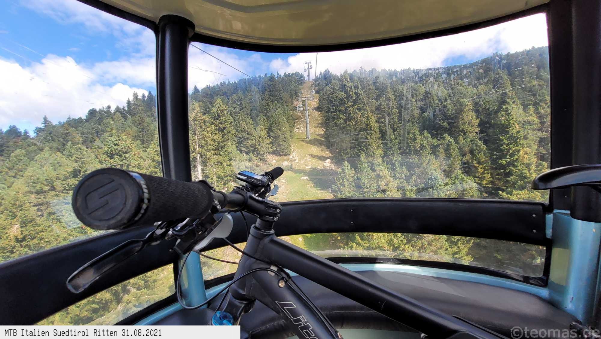 hochkurbeln, wieder Gondel bis Schwarzseespitze. Zum Rittner Horn hochkurbeln, ab hier folgt der Downhill bis nach Bozen.