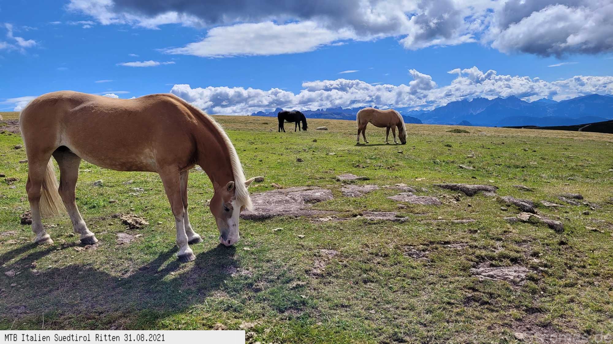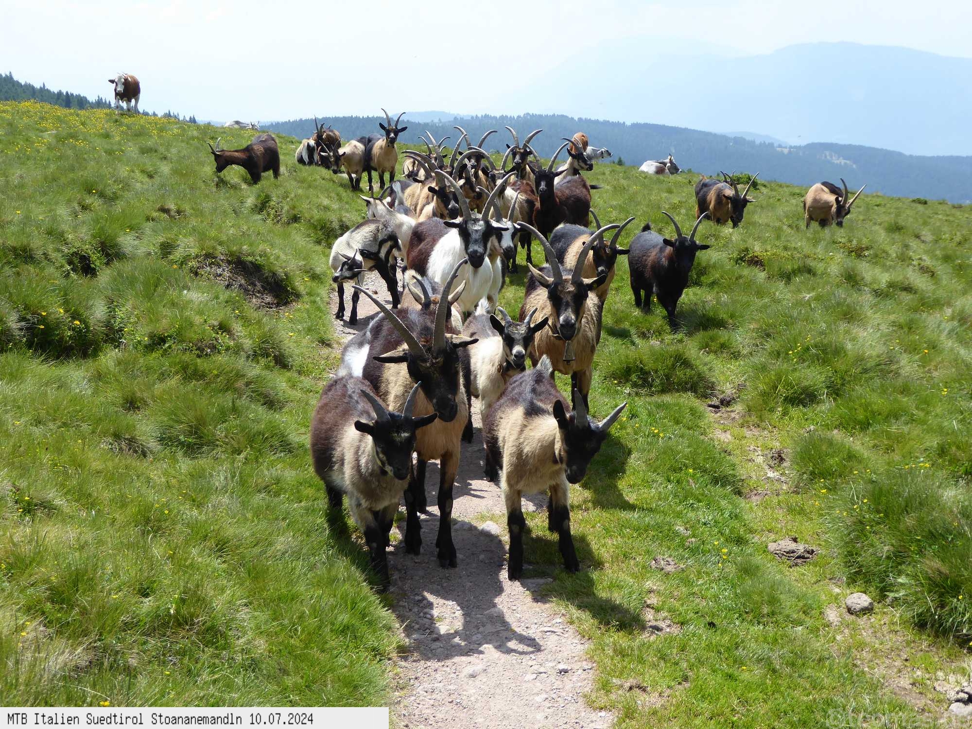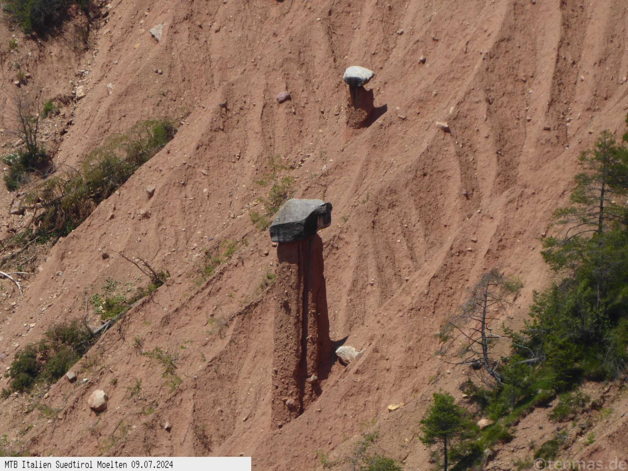 Haflinger Höhenwegs. Hier wieder hoch Treten-/Schieben bis zu den Stoananen Mandln, ein wahrlich mystischer Ort! Der folgende Trail hinunter bis zum