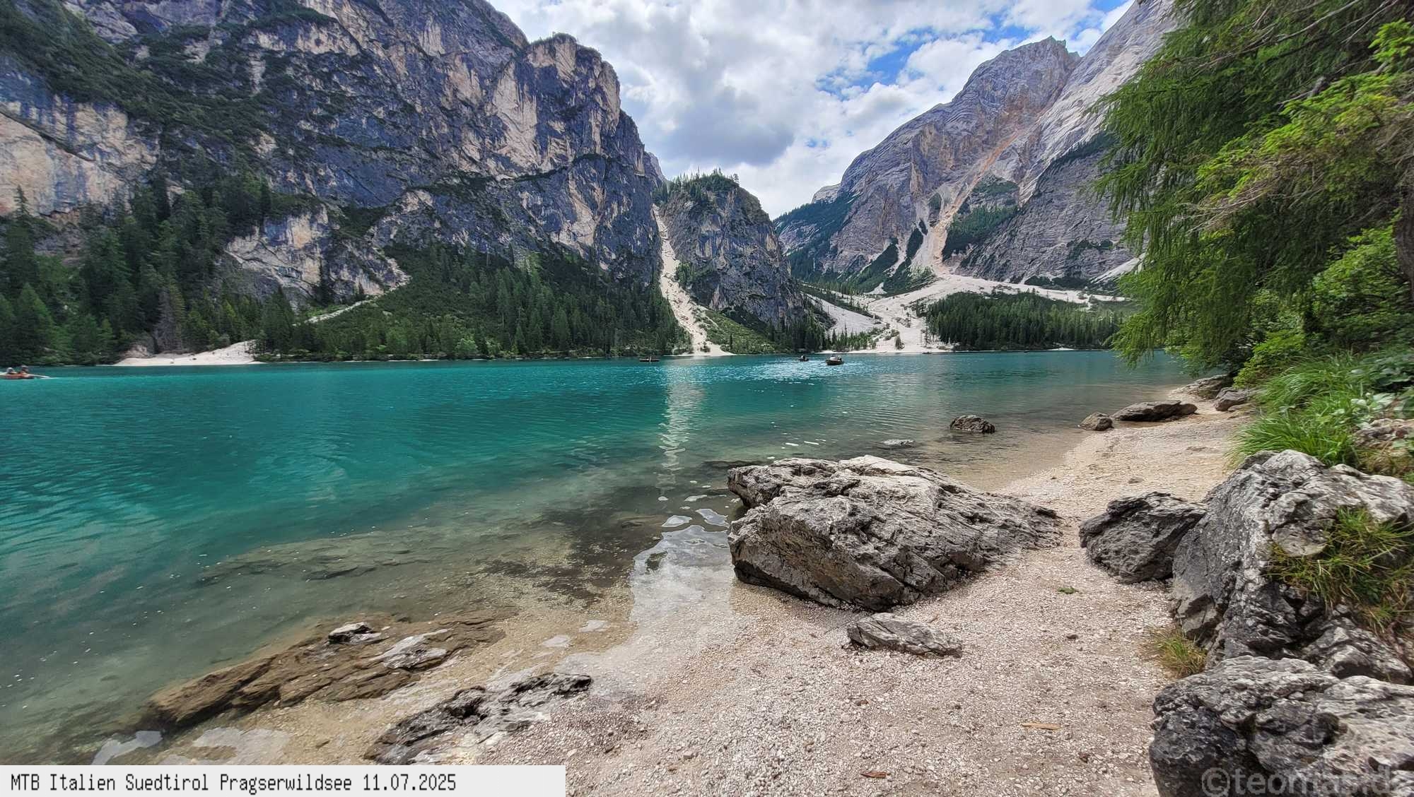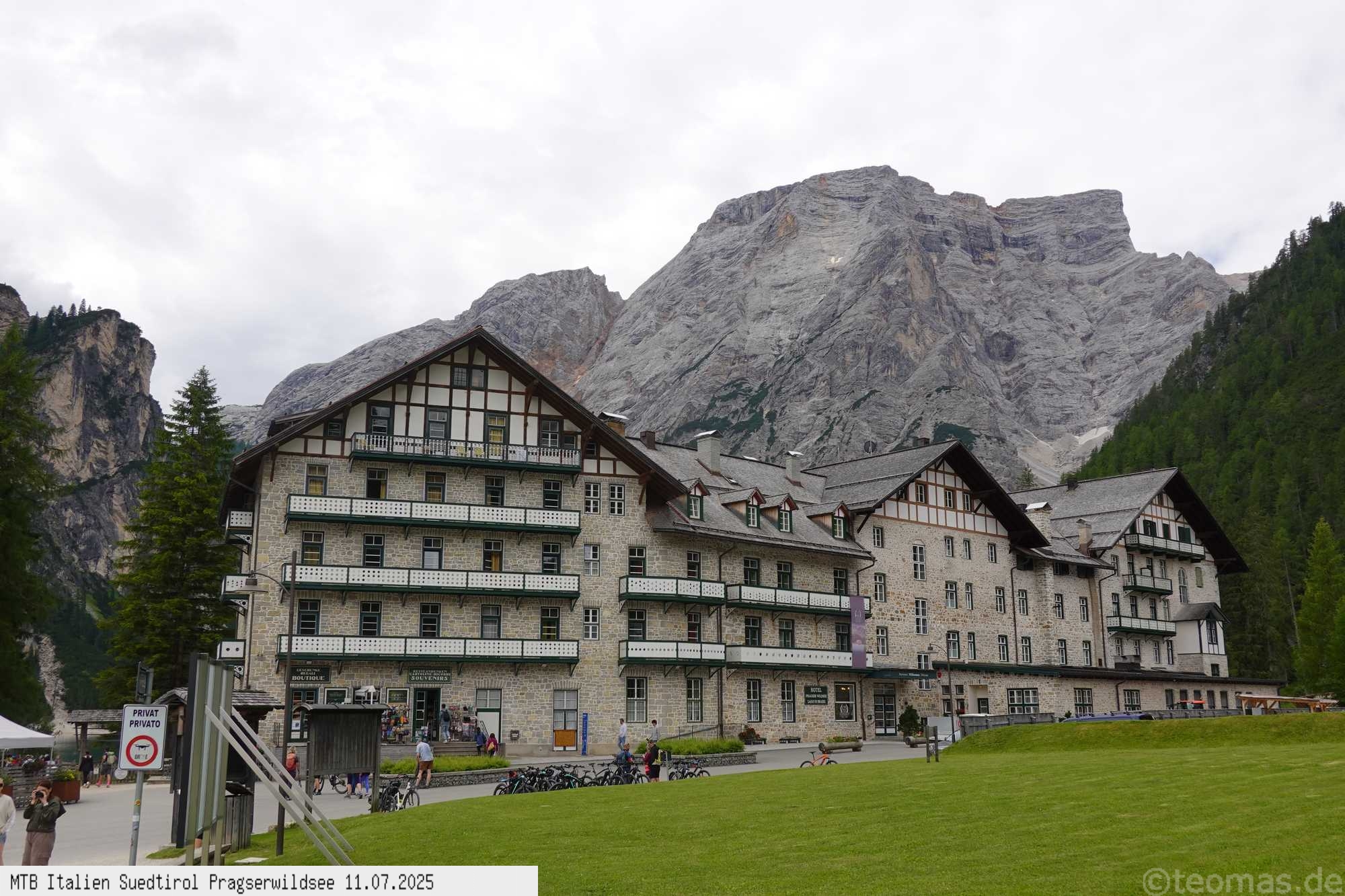 Man parkt kostenlos an der Abzweigung zum Pragser Wildsee bei Niederdorf an der Hauptstraße. Zum Pragser Wildsee sind es ca. 400 Höhenmeter
