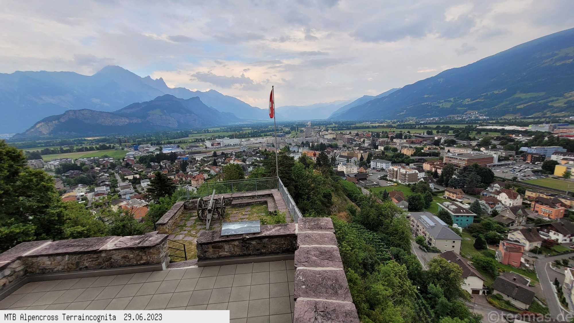 Tourstart der Alpencross am Bahnhof Sargans bei trockenem, aber bewölkten und kühlen Wetter. Einrollen bis Bad Ragaz, danach steil hoch auf