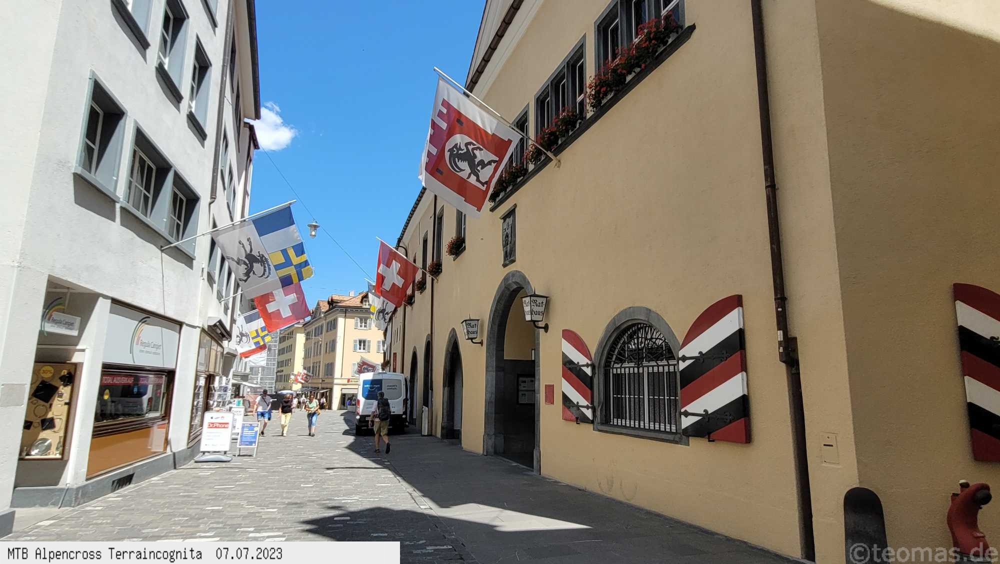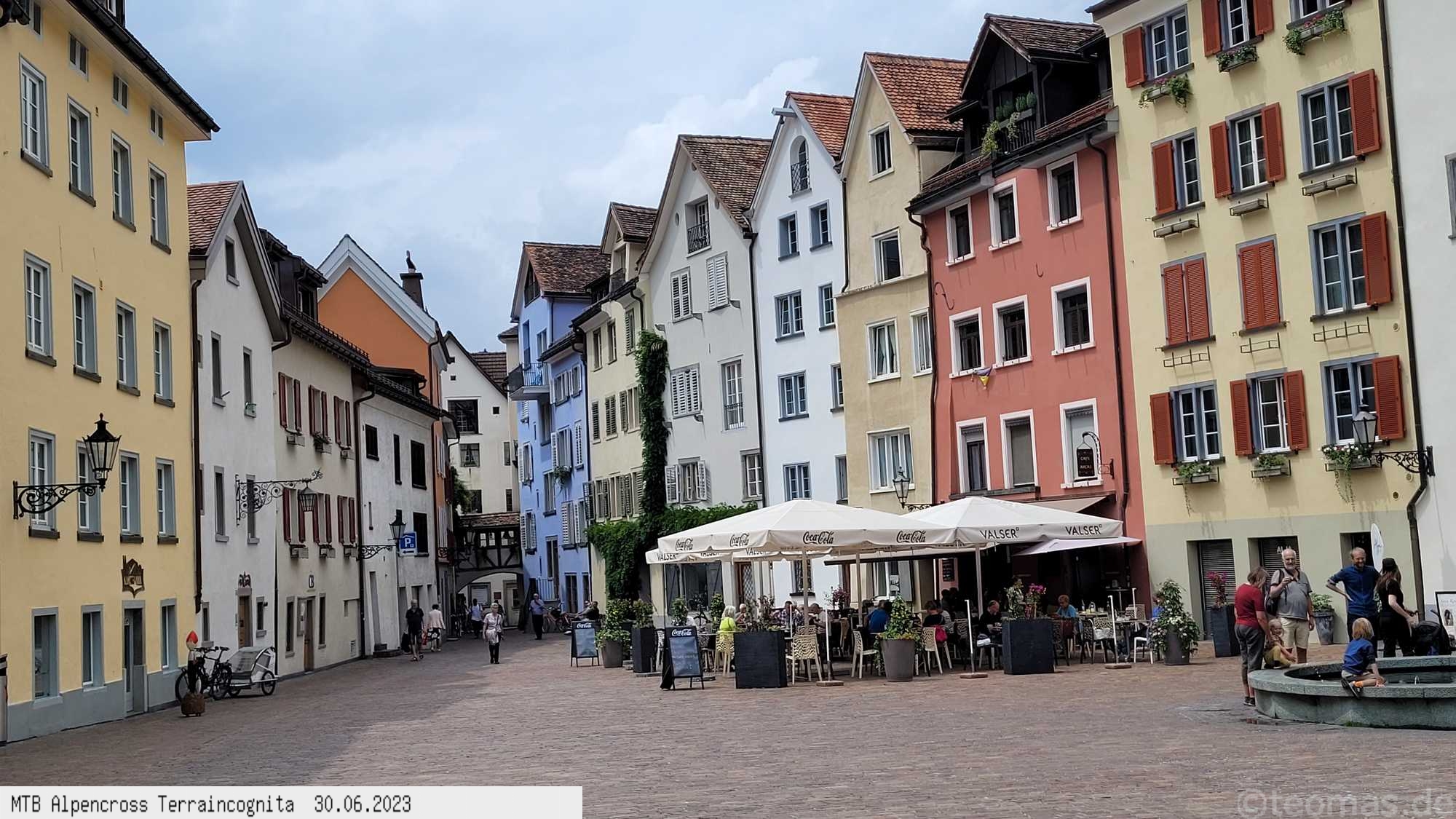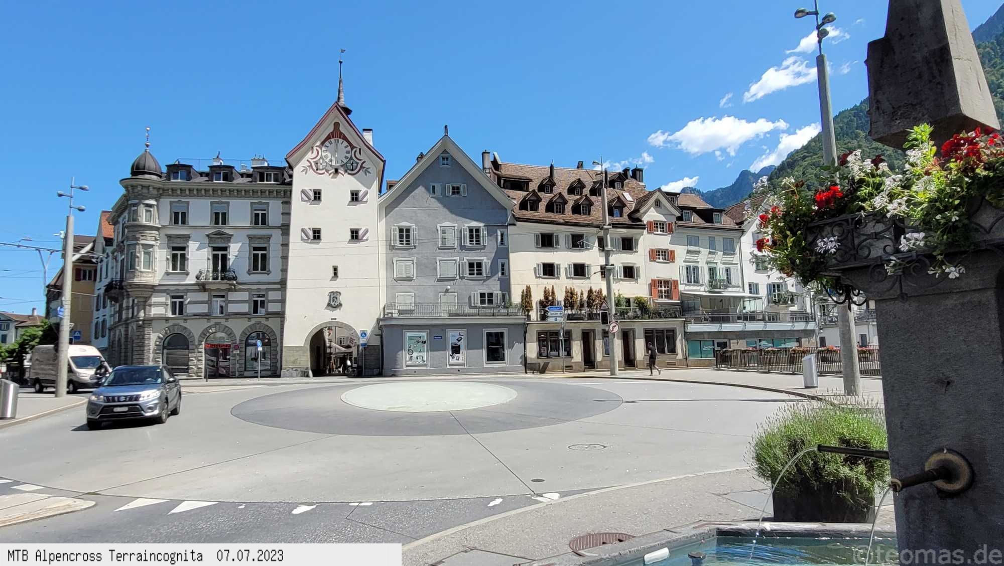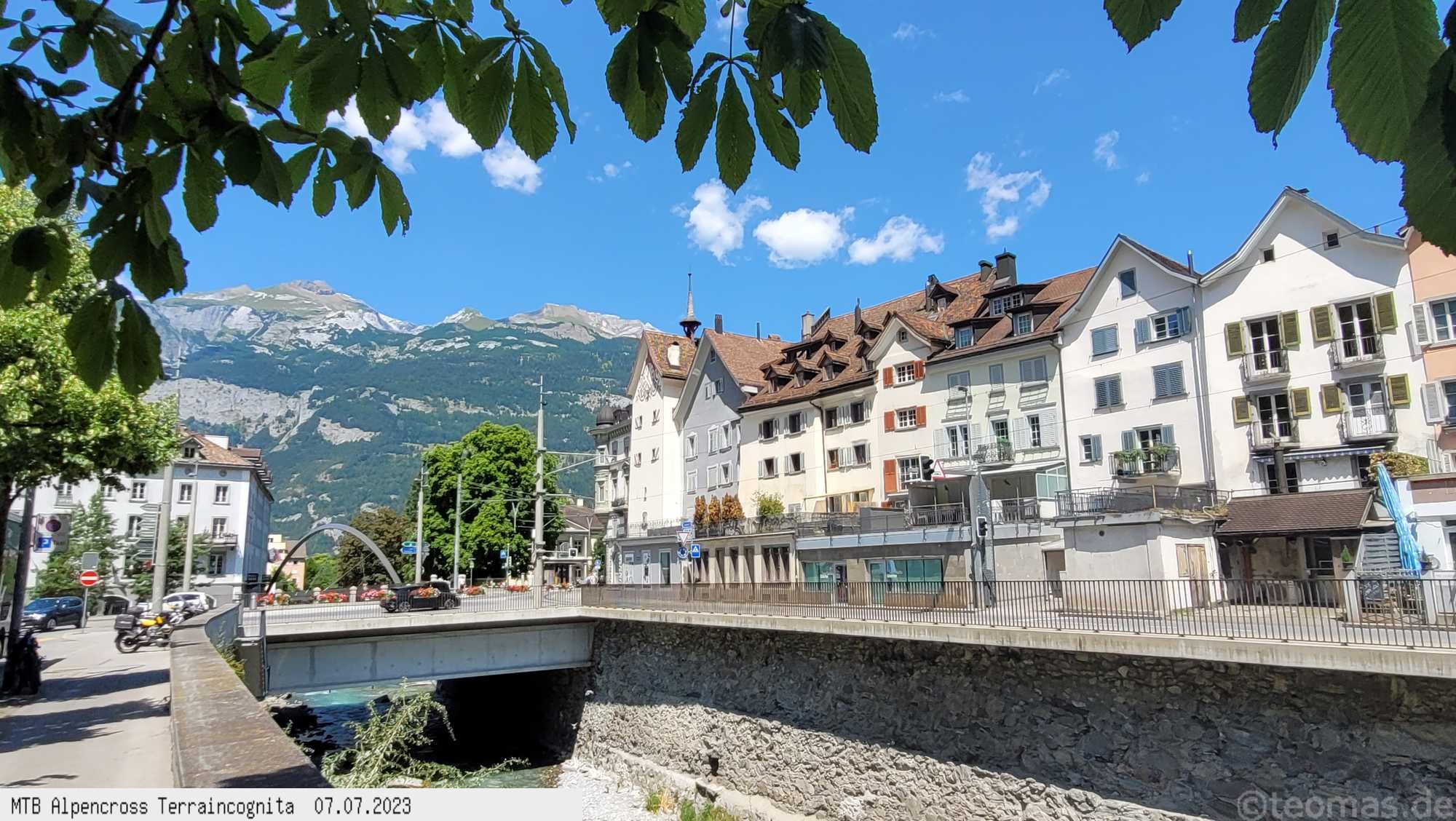 Bernadino Pass über Thusis nach Chur, erst Rast am Rhein und Stadtrundfahrt mit dem Bike, danach Zug nach Sargans zum Auto. Bike Einpacken und Weiterfahrt