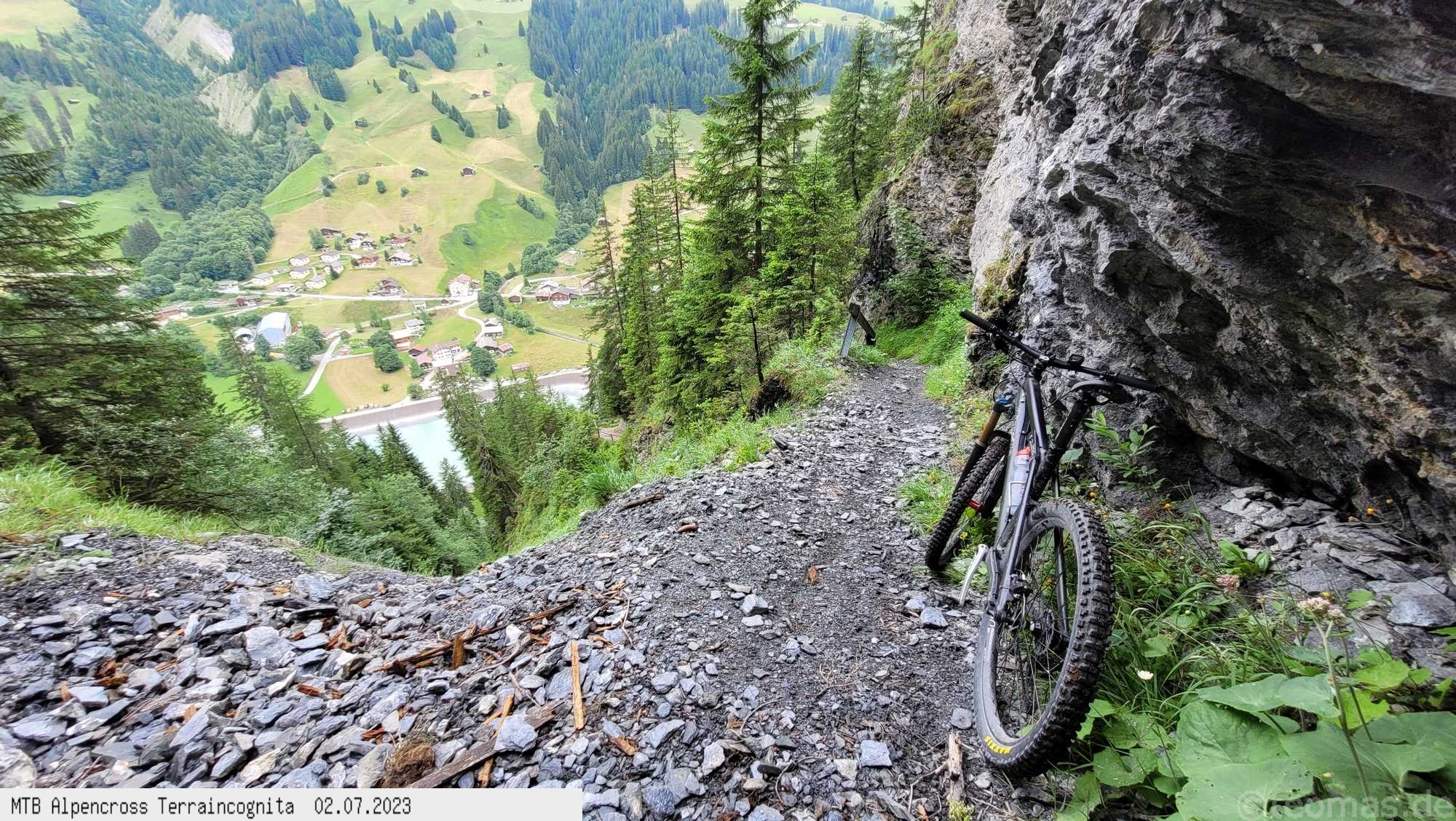 die folgende Abfahrt dafür umso mehr! Krasser Downhill senkrecht den Berg hinunter, verblockt und grob steinig mit vielen Kehren. Ankunft in Safien Platz und