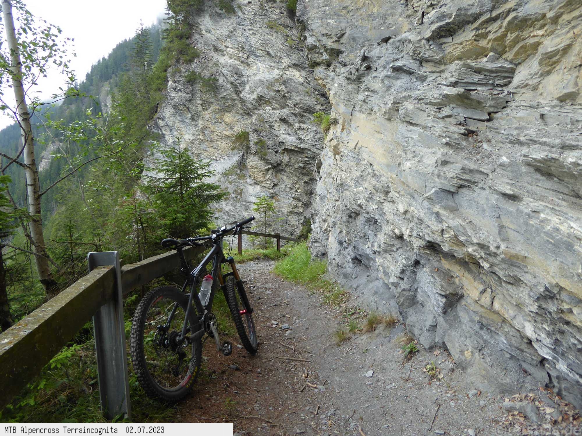 Teerabfahrt gelangte man zum Einstieg in den Schluchten Trail "Der Alte Shin", eine hoch über der Albulaschlucht in die steile Bergflanke gehauene Trasse.