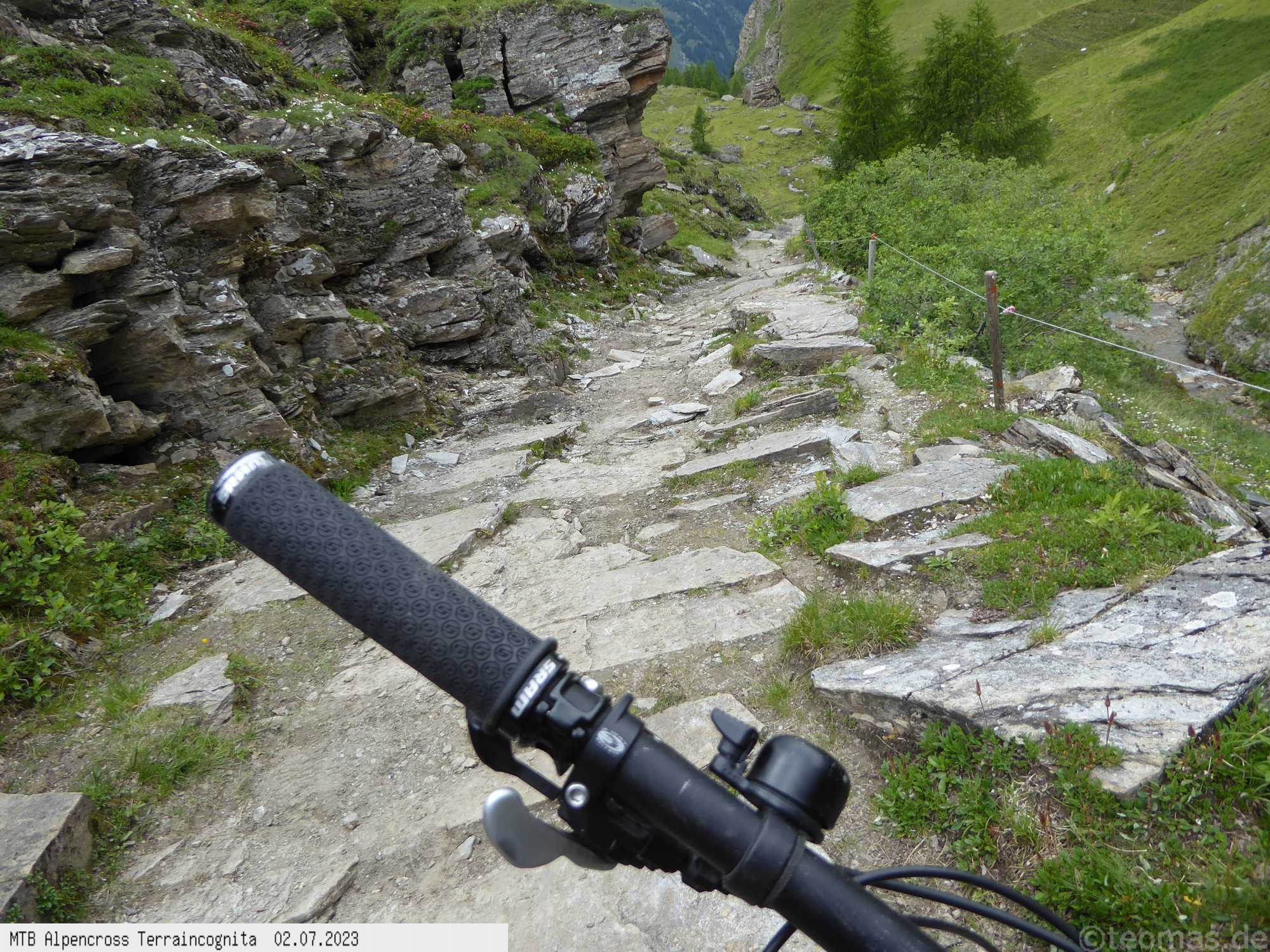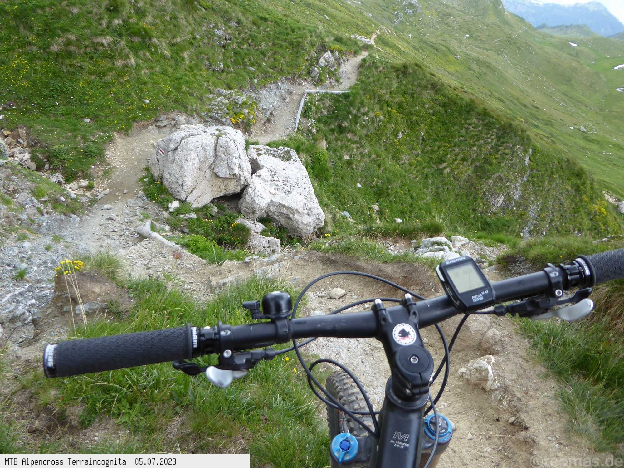 ab dem Paß folgte eine geniale 500 Hm Abfahrt bis Stabbio Nuovo. Technisch anspruchsvoll aber nie zu schwer. Den weitergehenden Trail wegen des mich einholenden