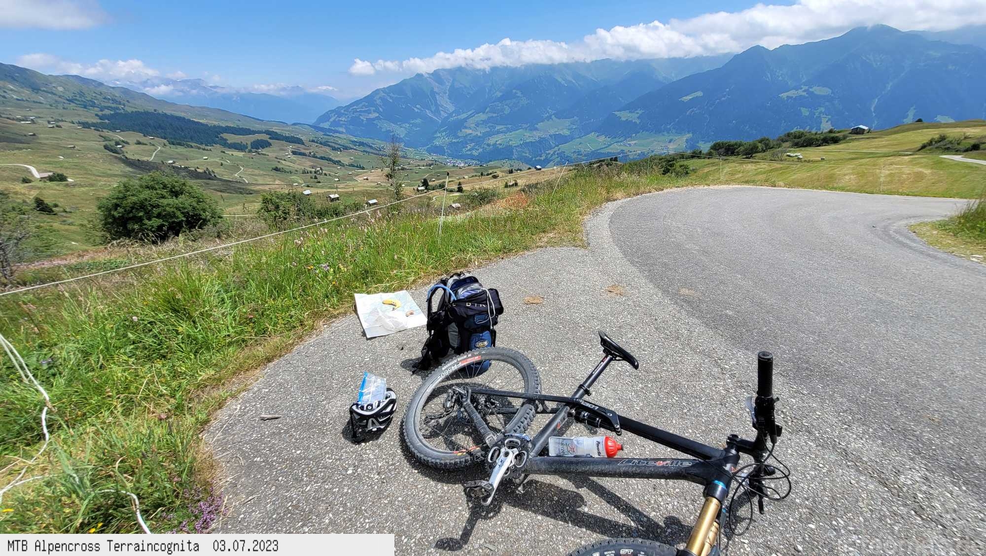 Ab Thalkirch 2 Stunden 700 Hm Schieben zum Tomül Pass. Nach kurzer Rast phantastische Trail Abfahrt, technisch genau das Richtige. Hinunter nach Vals, einem