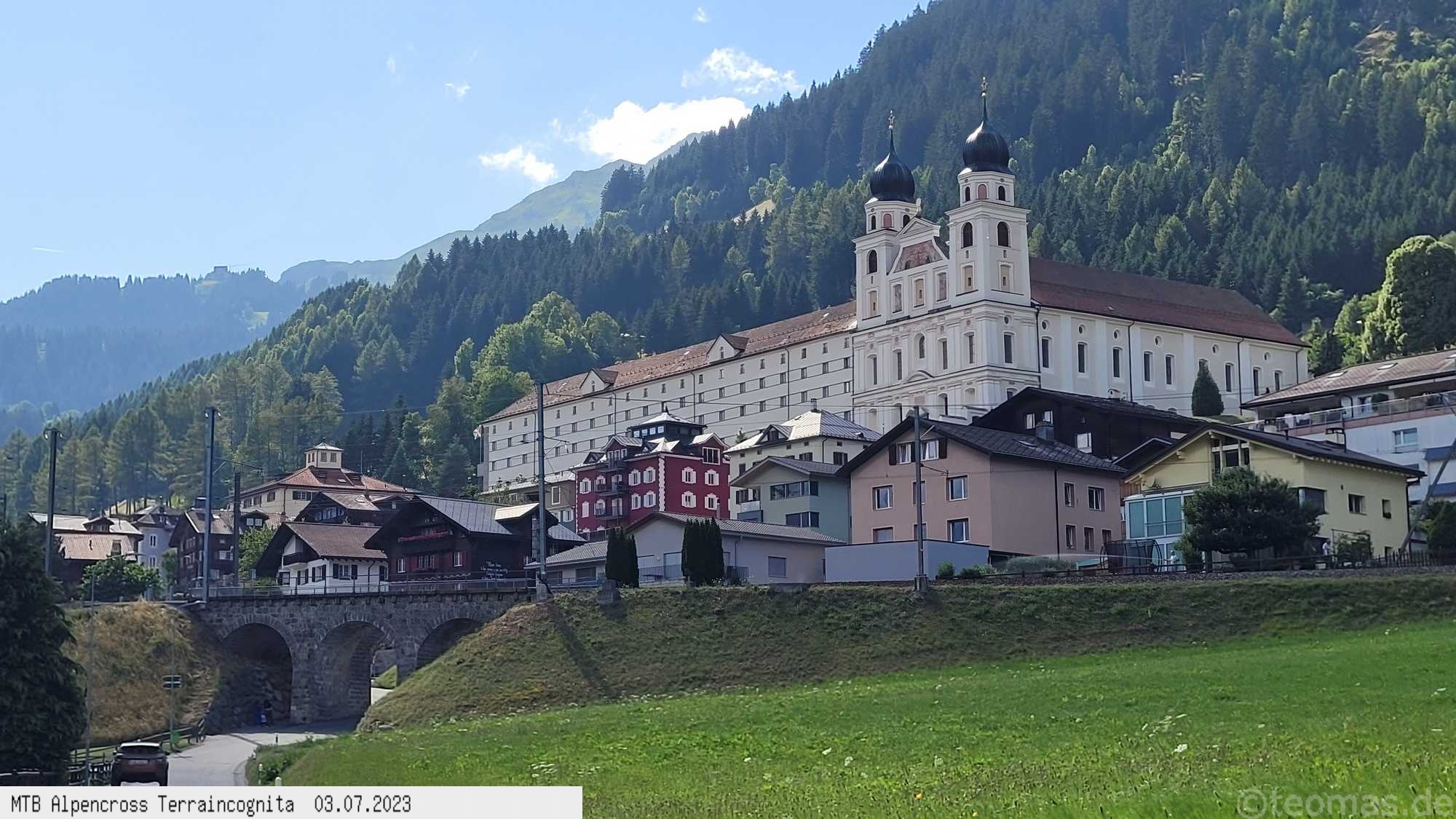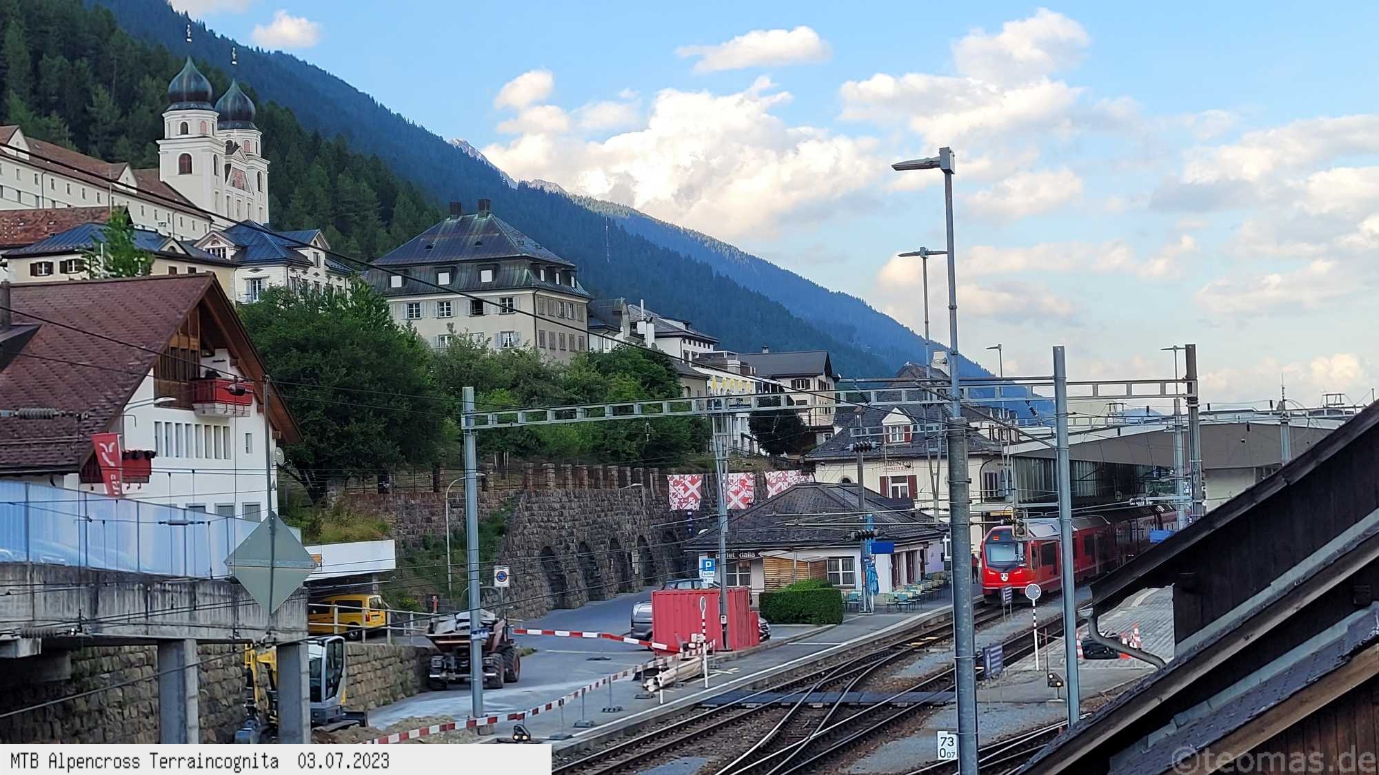 Übernachtung in Disentis im Hotel AlpSu, echt top. Rundgang durch Disentis, prunkvolles Benediktiner Kloster mit Münster, am Bahnhof der Glacier Express.