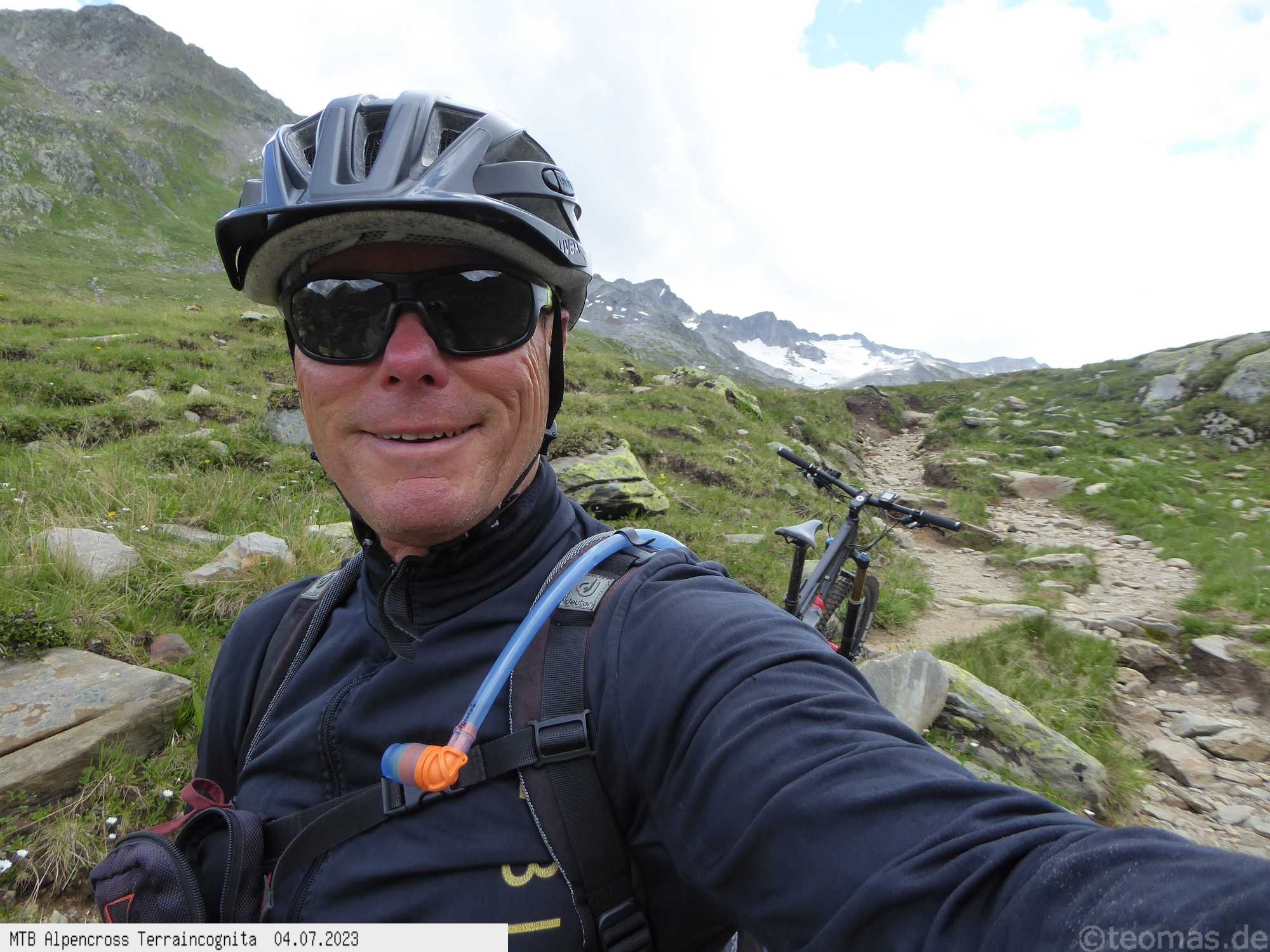 Tragen, Treten auf genialem Trail war der Paß Meighels erreicht. Sagenhafte Landschaft mit Gletscher Blick, nach dem Paß Bergseen und 360° Panorama!