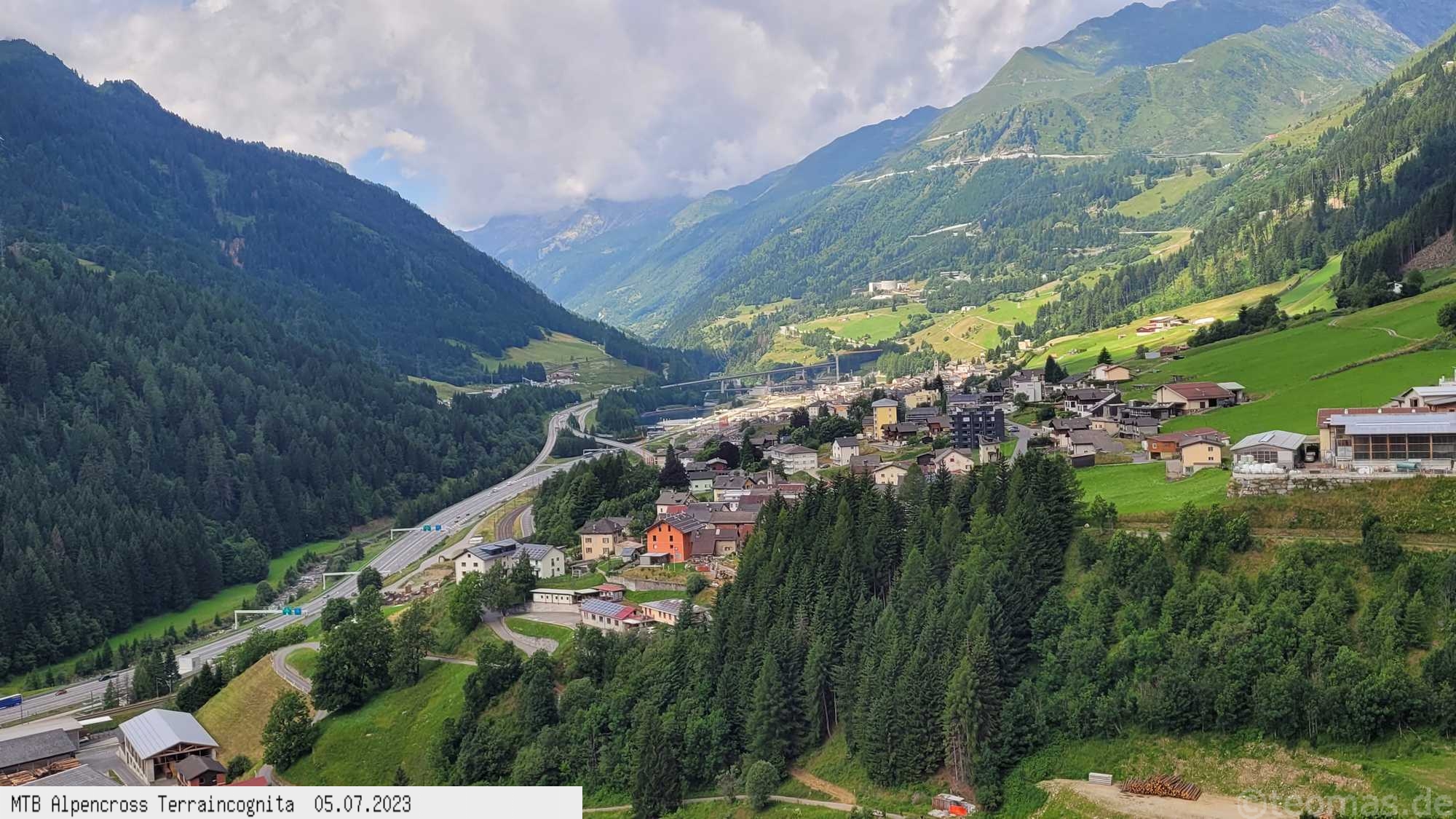 in die umliegende Bergwelt. Brutaler aber fahrbarer Downhill Richtung Airolo, das Gewitter hinter mir lassend. Kurz vor Airolo wieder steil einen Bergtrail
