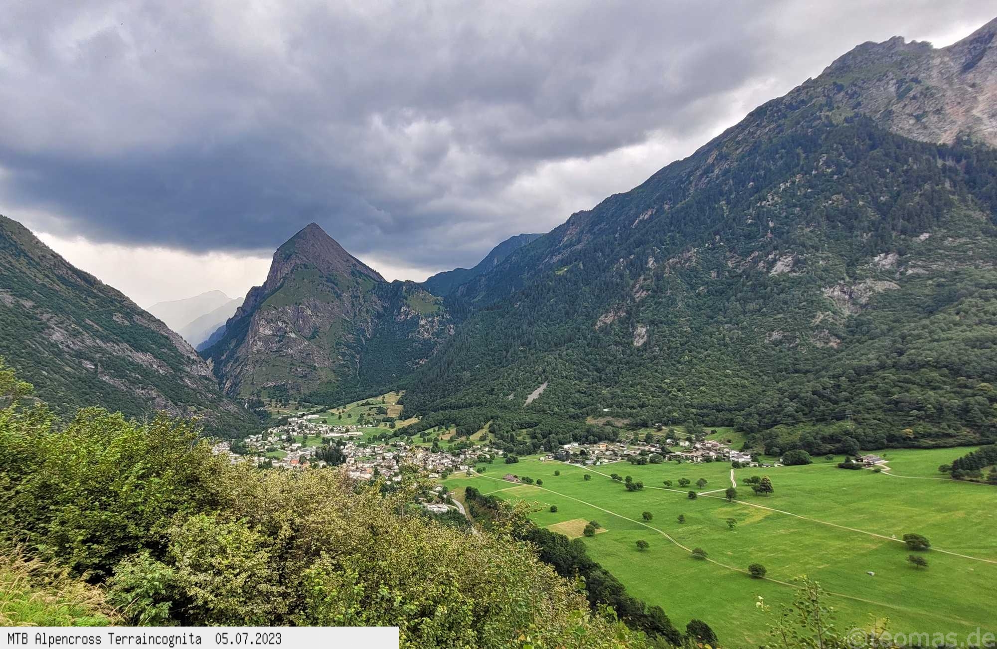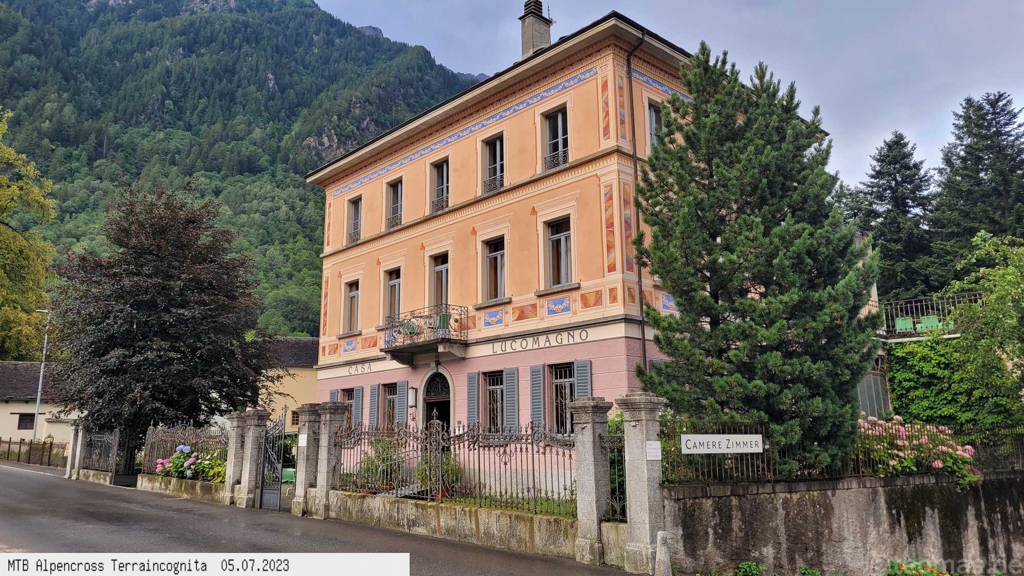 Gewitters ausgelassen und die Teerstraße hinunter nach Olivone gefahren. Kaum ein Zimmer in Olivone im Casa Lucomagno gefunden hat es zu Schütten begonnen!