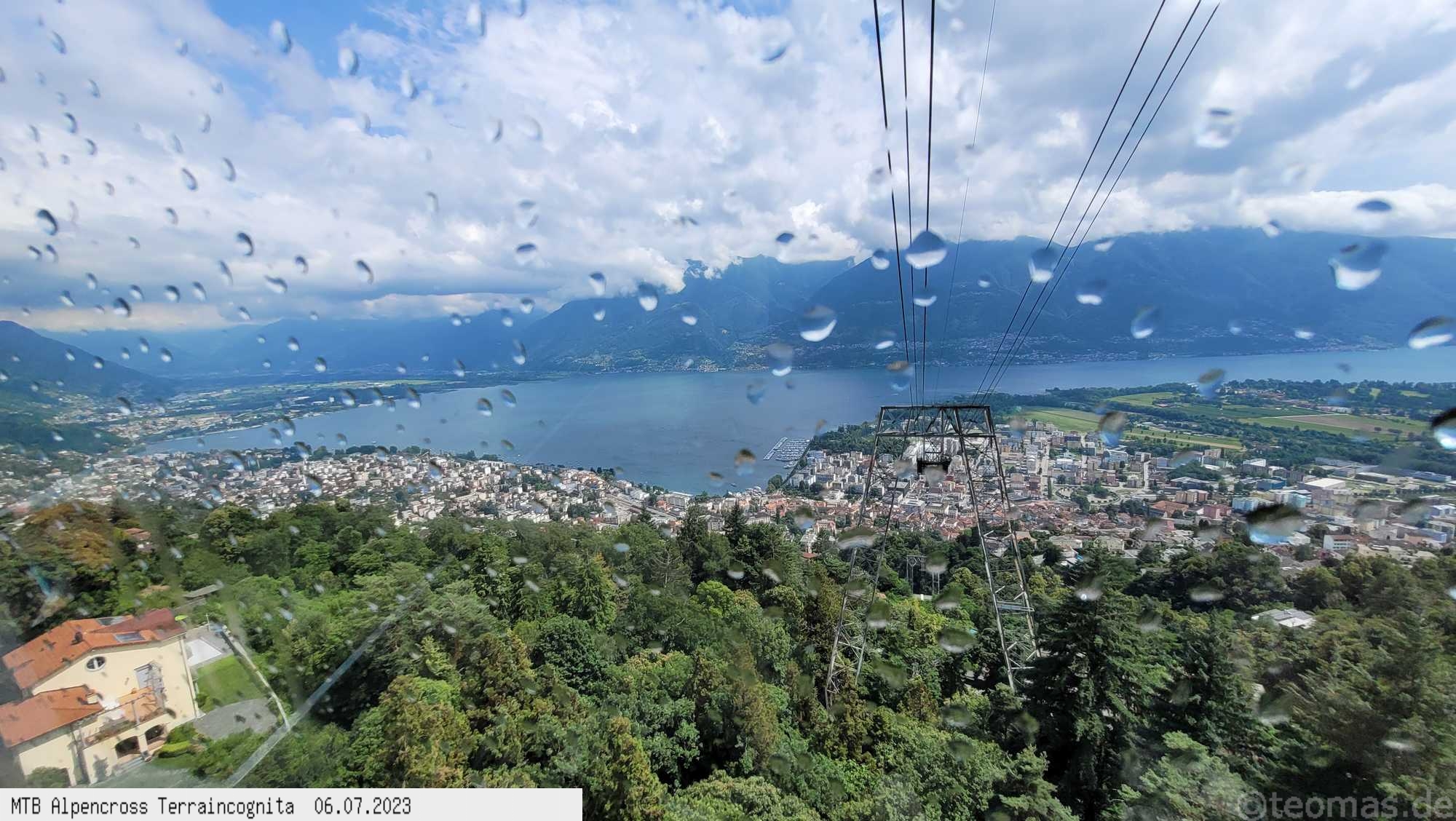 zur Talstation der Cardada Seilbahn. Oben angekommen den Trail bis zur tollen Aussicht auf den Lago Maggiore am Gasthaus erreicht mit leichtem Regen und Nebel unterwegs.