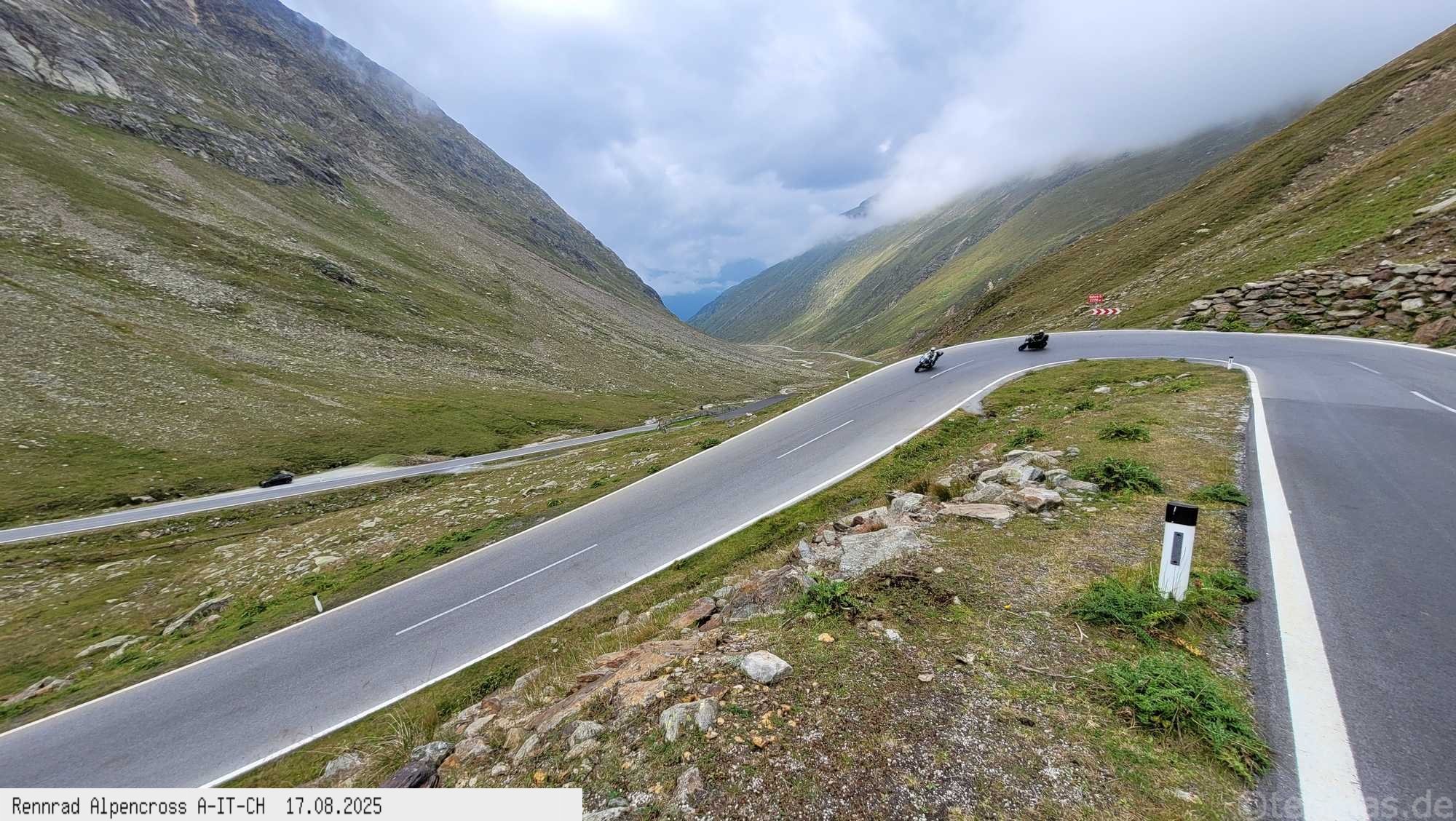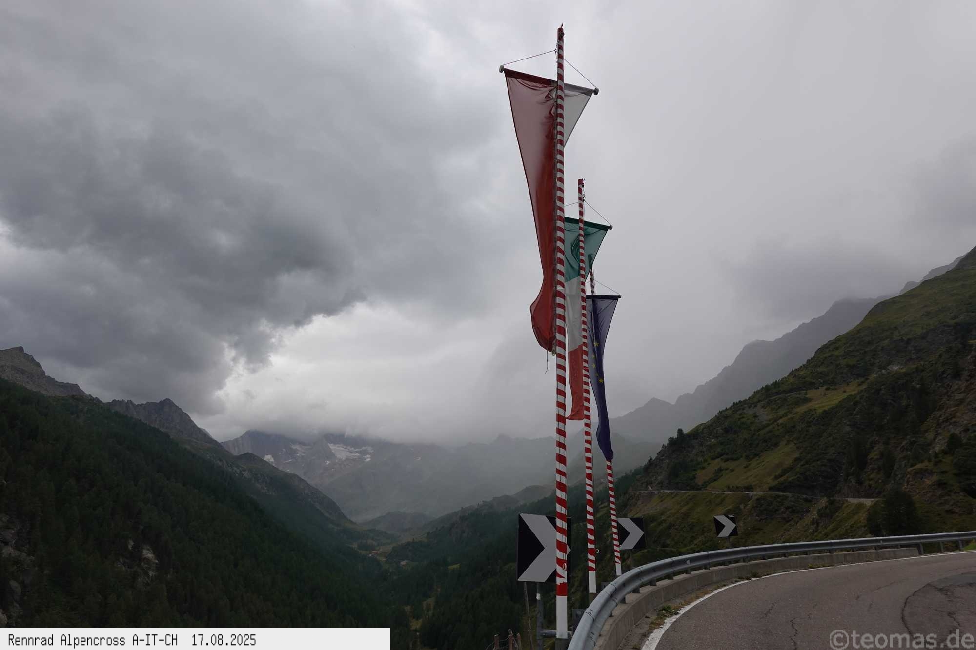 Von hinten kam Regen in meine Richtung, aber trocken bis auf das Timmelsjoch geschafft und gerade so entkommen. Um 14 Uhr oben auf dem Joch