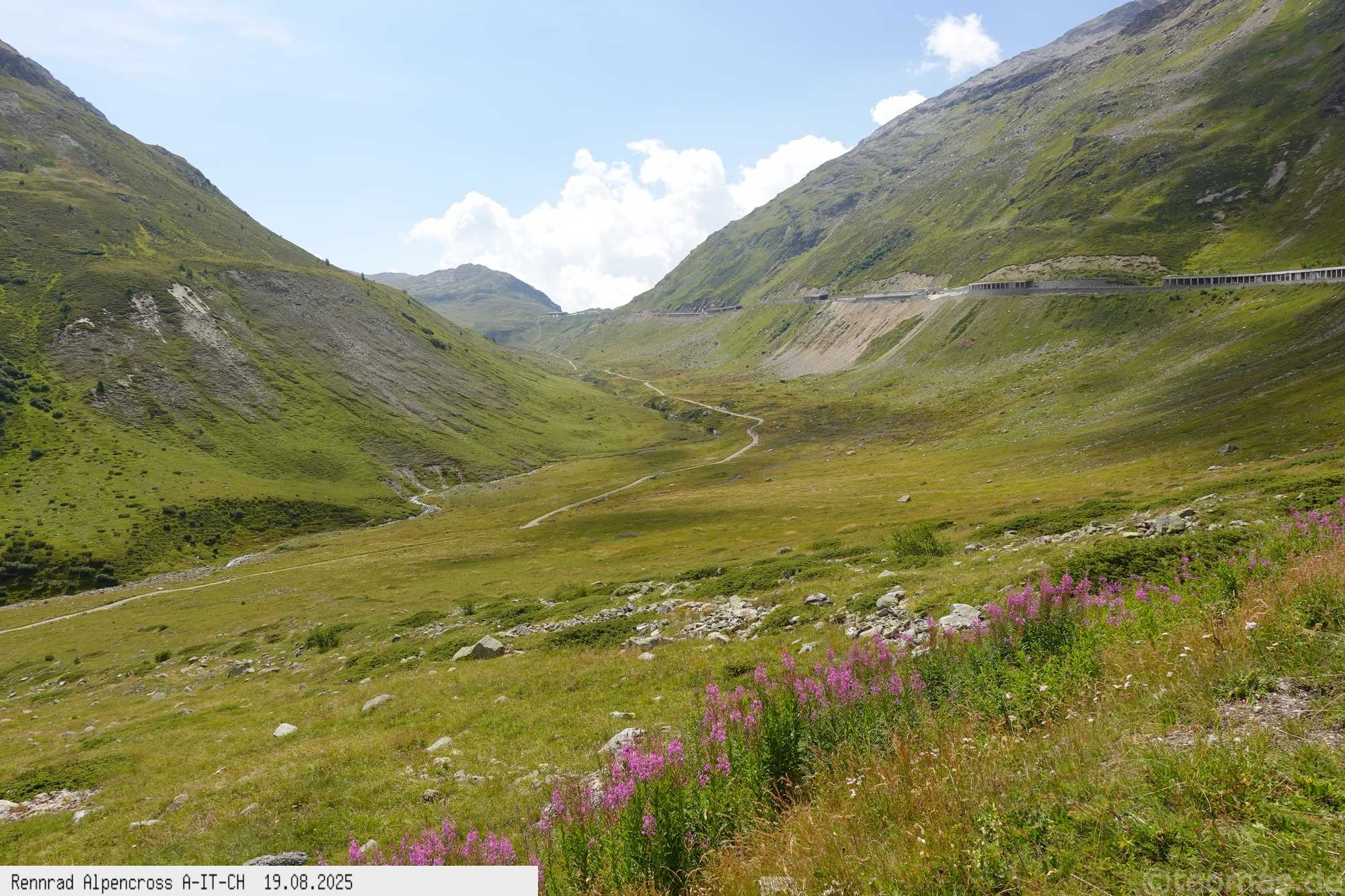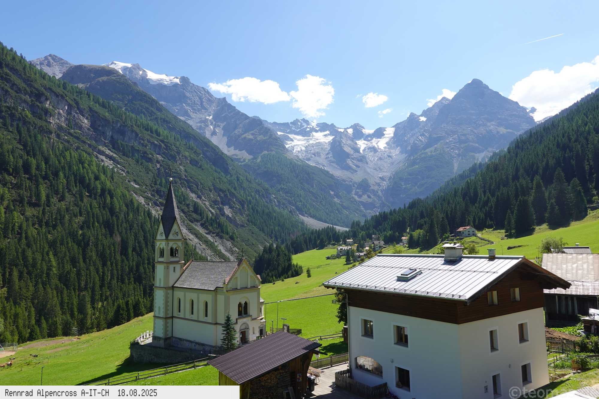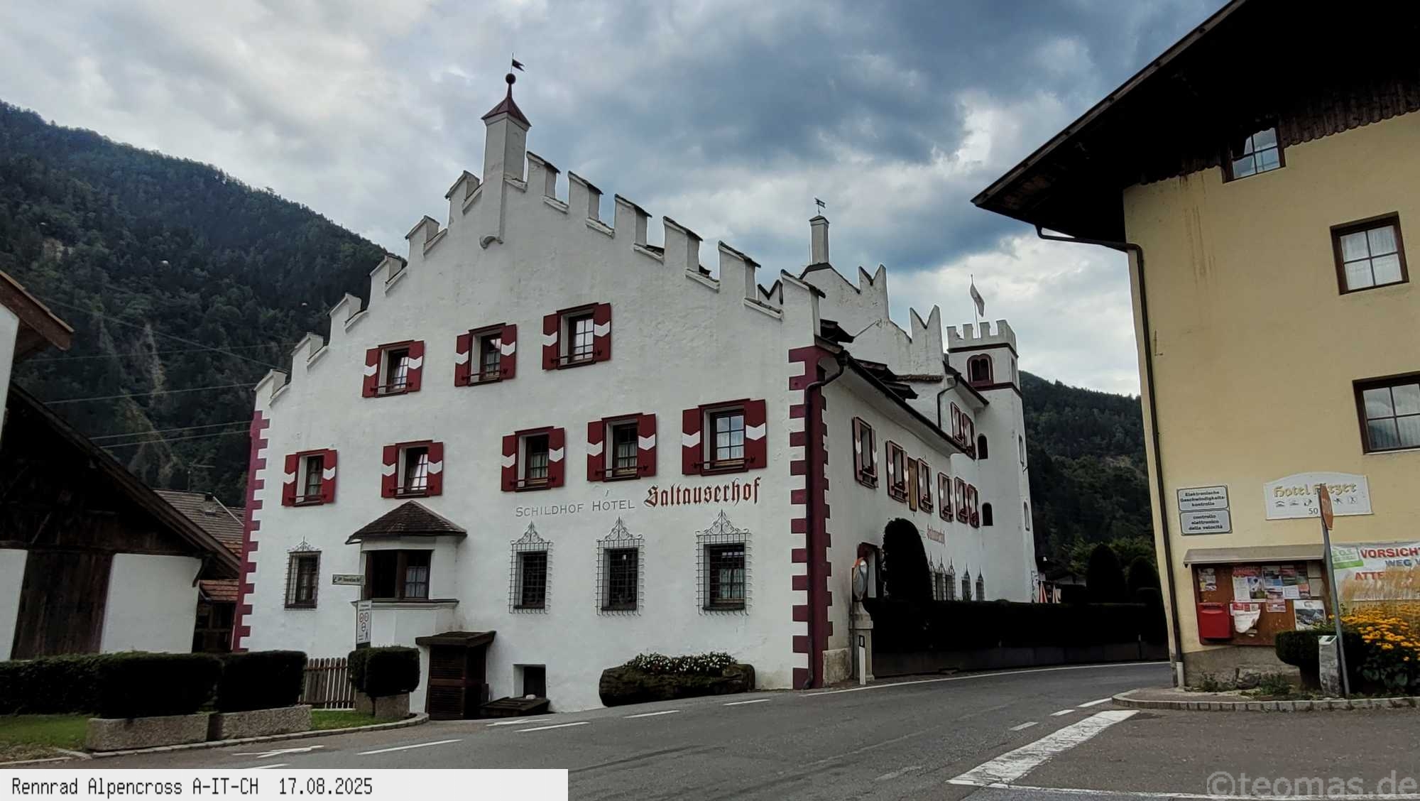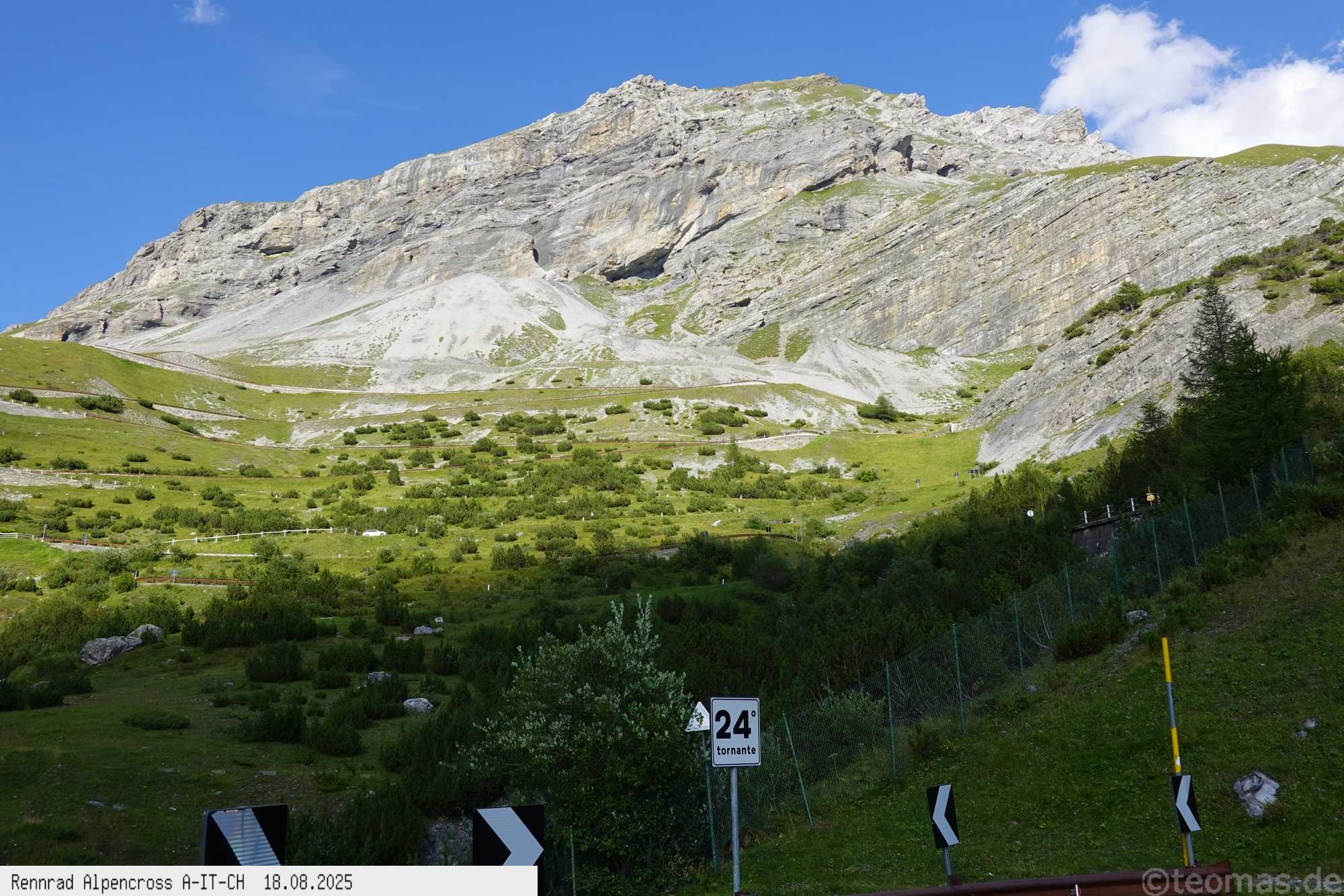 für Hotel! Nach Rast in Prad gegen 13 Uhr weiter hinauf bis Stilfs und Trafoi bei 37°C in der Sonne, puh! Immer weiter hoch über den