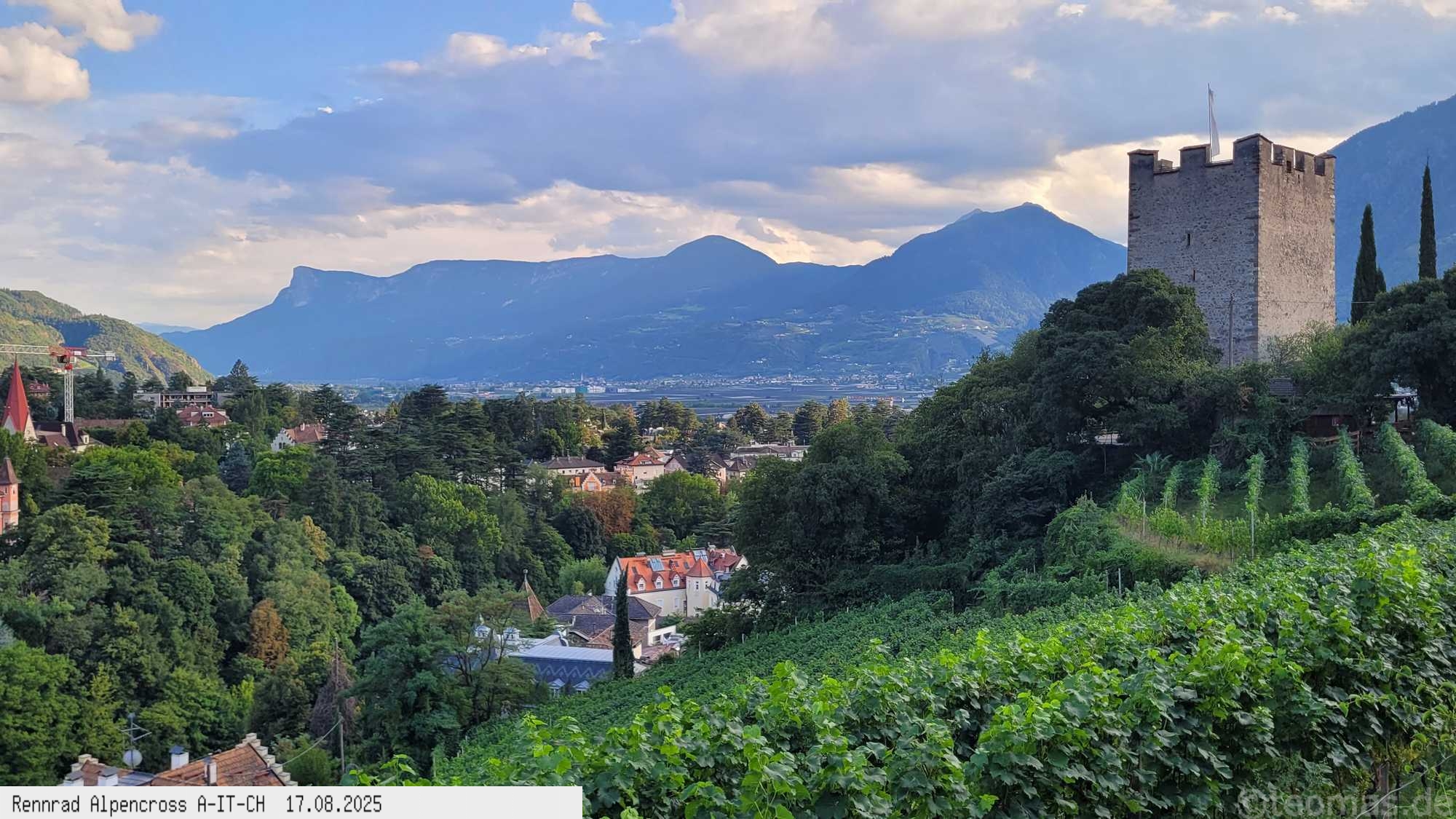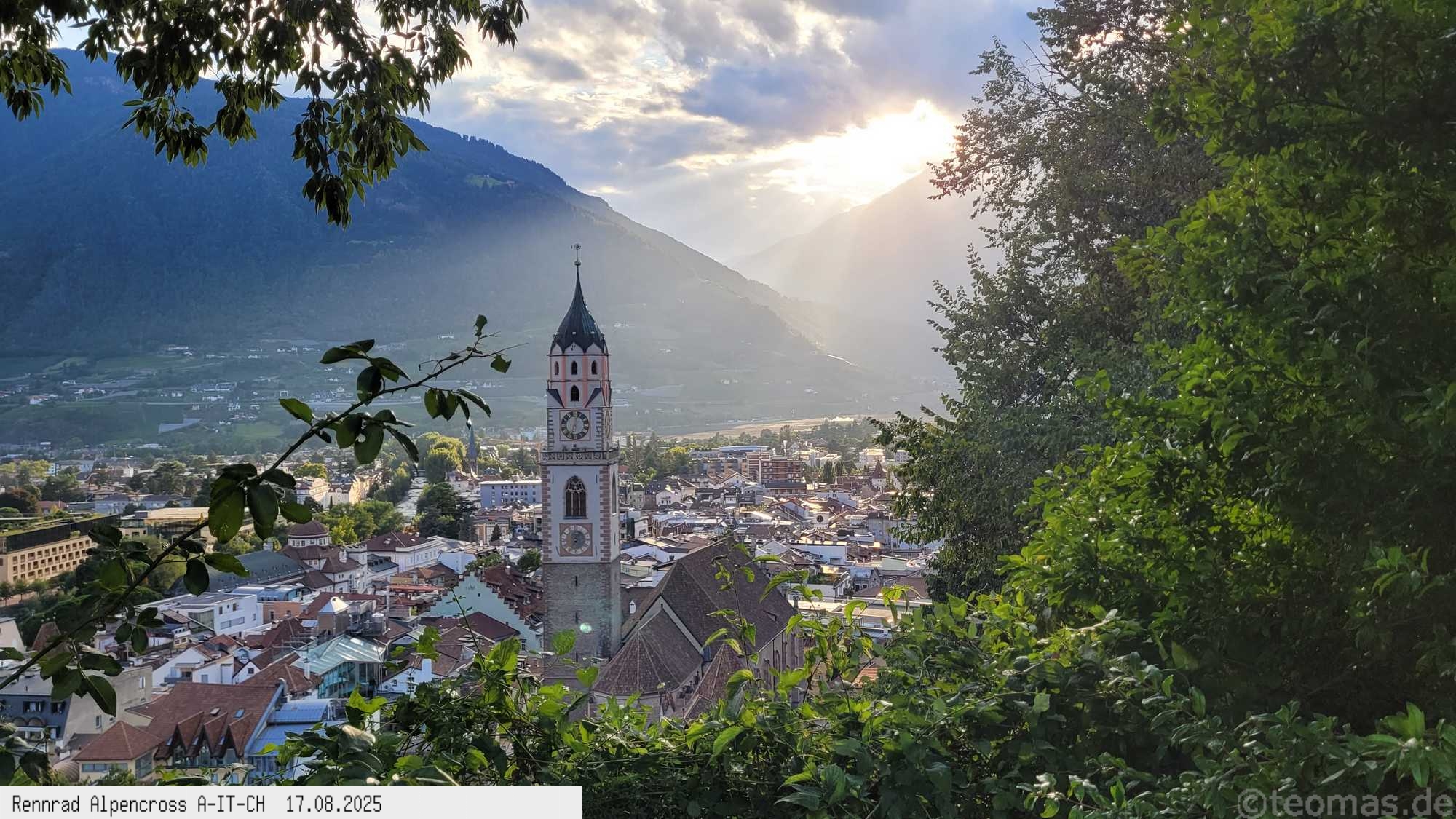 tolle Wolkenstimmung und Regenschleier nicht weit entfernt. Da es hier erst 15:30 Uhr war Weiterfahrt bis nach Meran, bereits kurz nach 16 Uhr