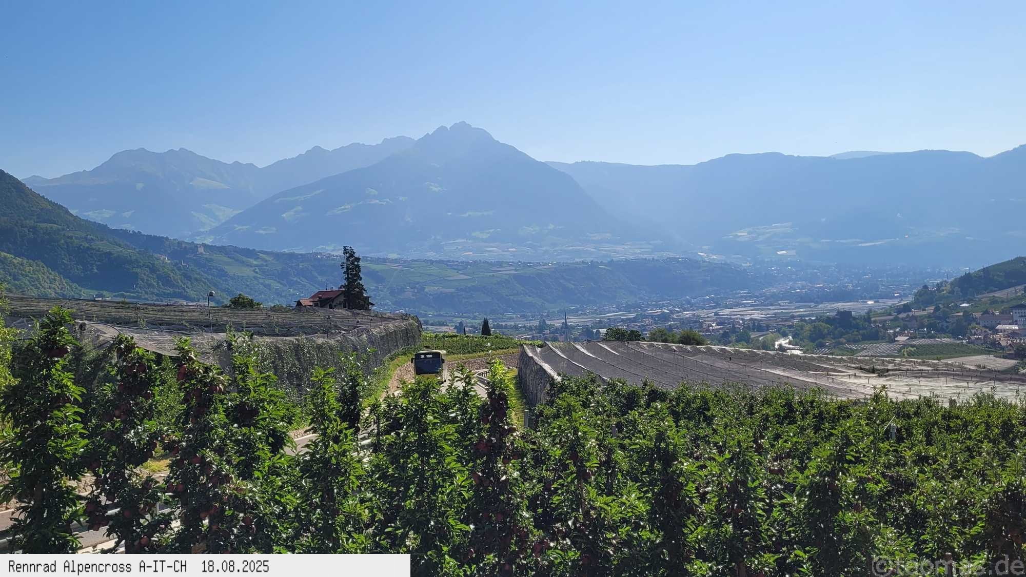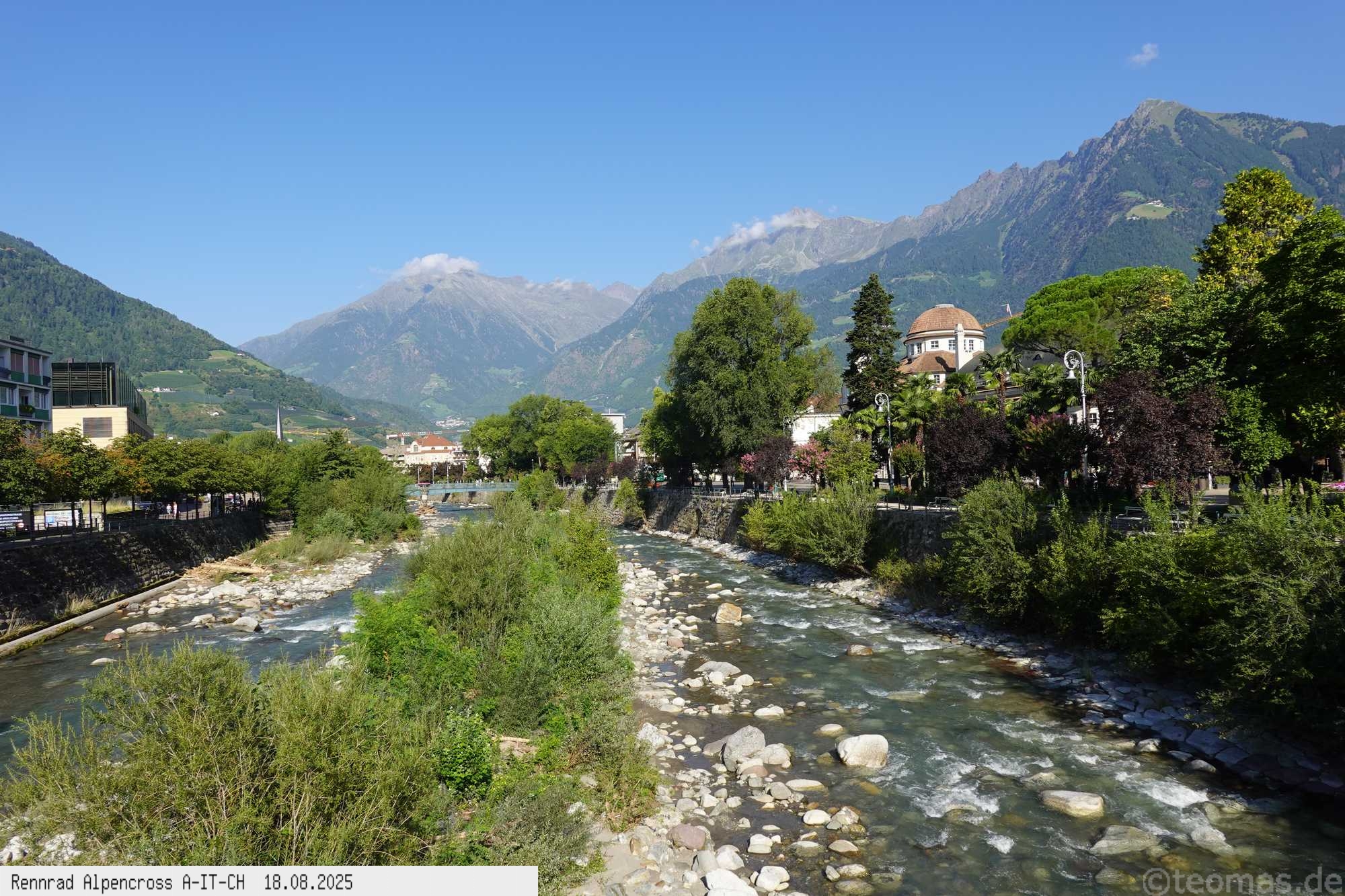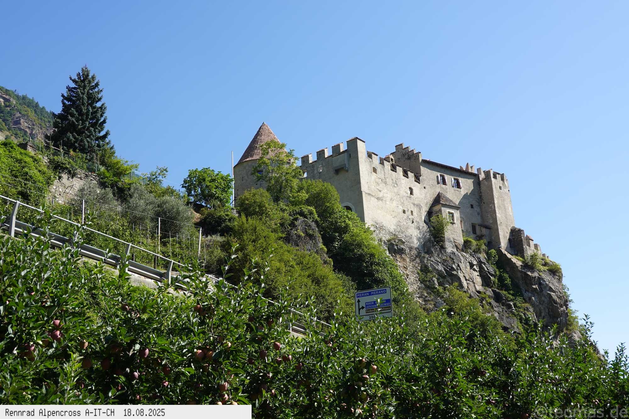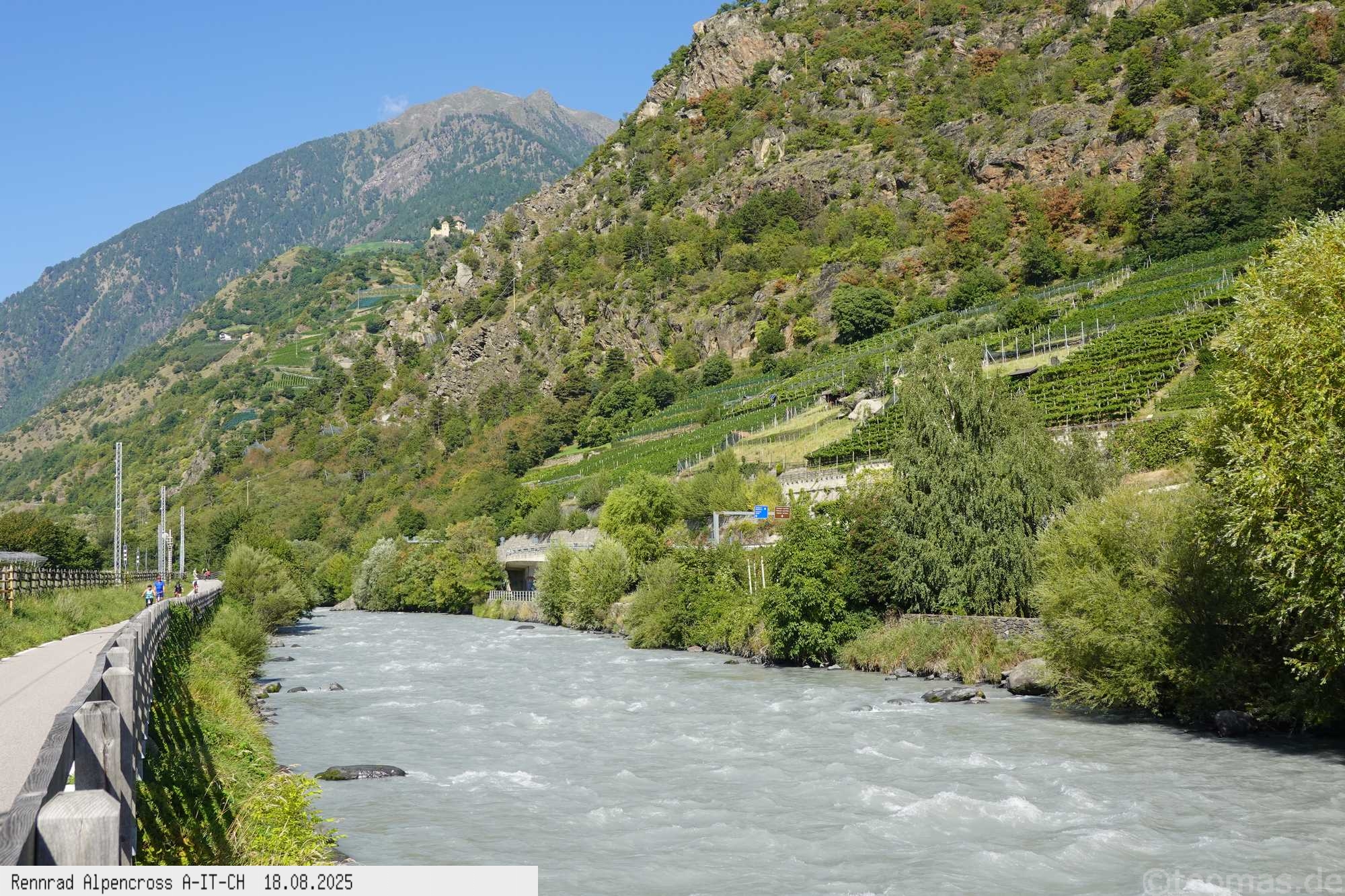 Kurz nach 9 Uhr inkl. Abstecher durch Meran auf dem Etschtalradweg ins Vinschgau über Töll, Kastelbell, Nauders bis Prad.