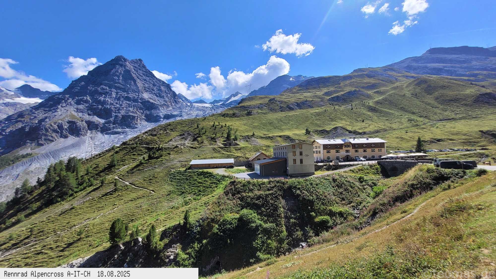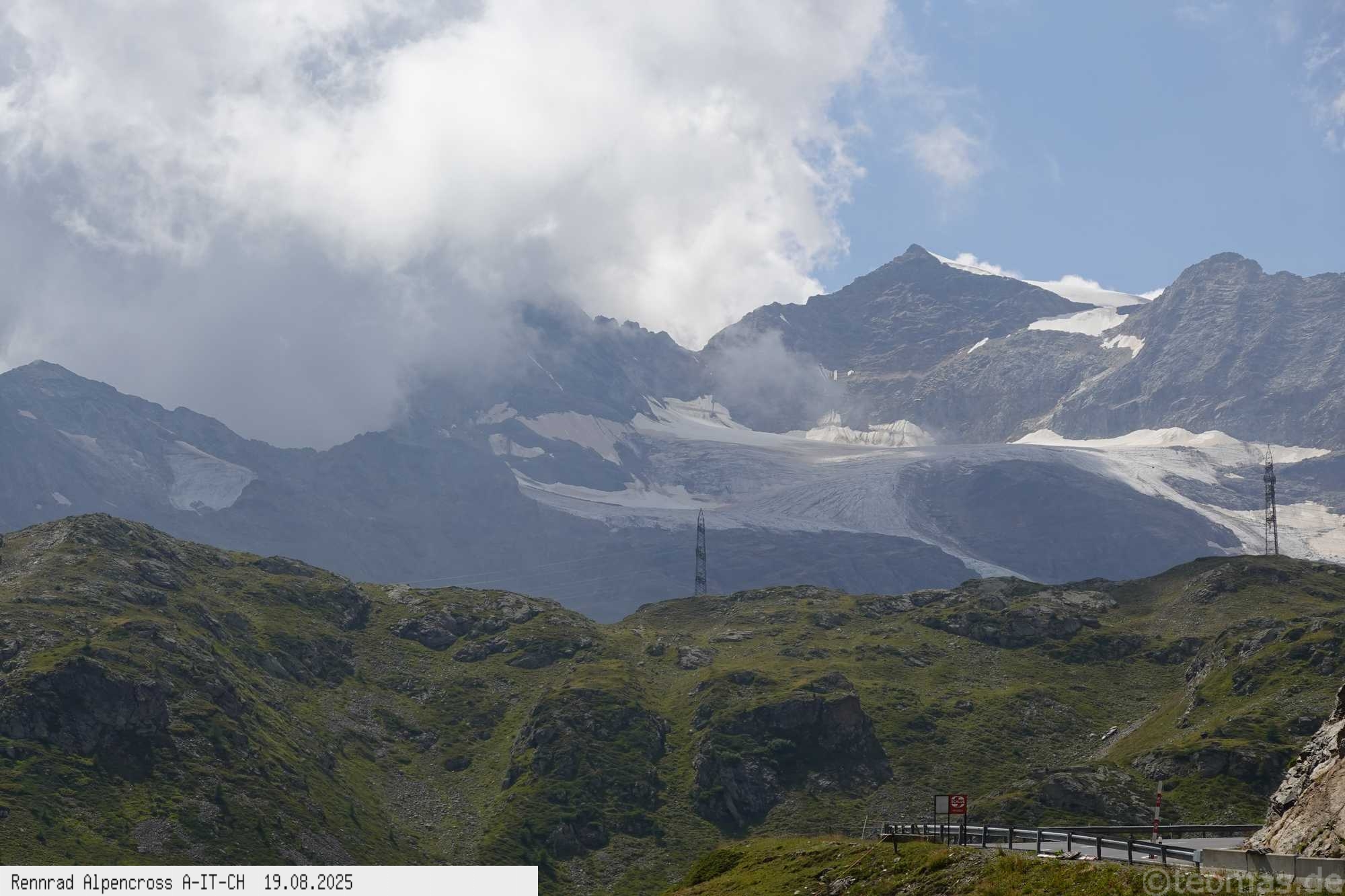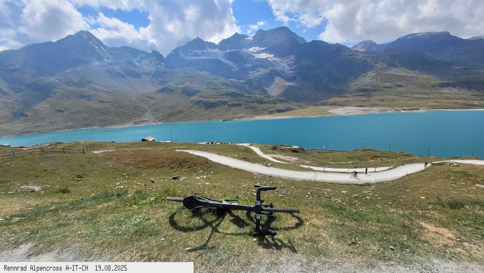 der Verkehr etwas weniger. 200 Hm runter und wieder hoch zum Bernina Paß, dem 4. Paß am heutigen Tag. Um 14:30 Uhr nach 2.000 Hm
