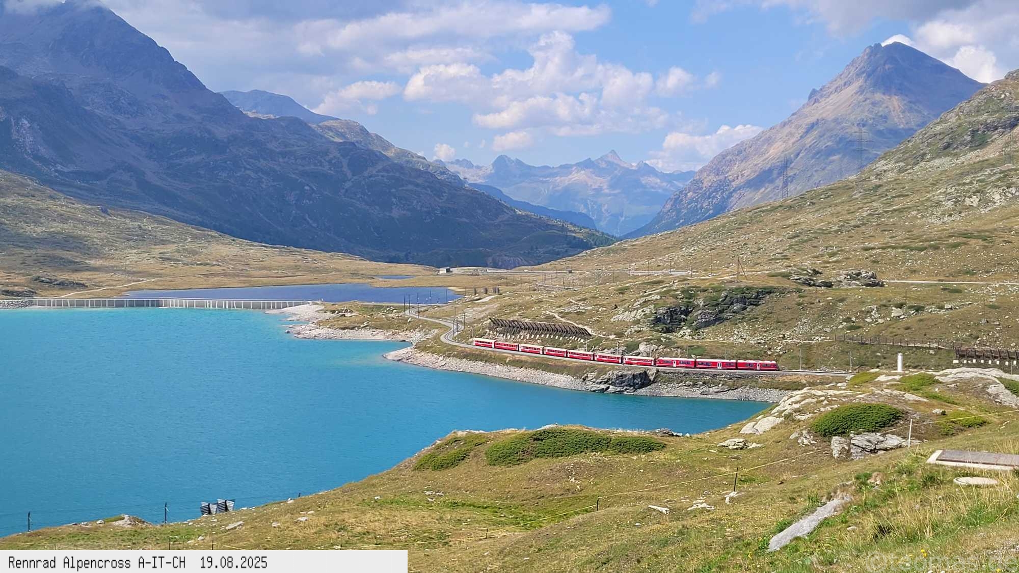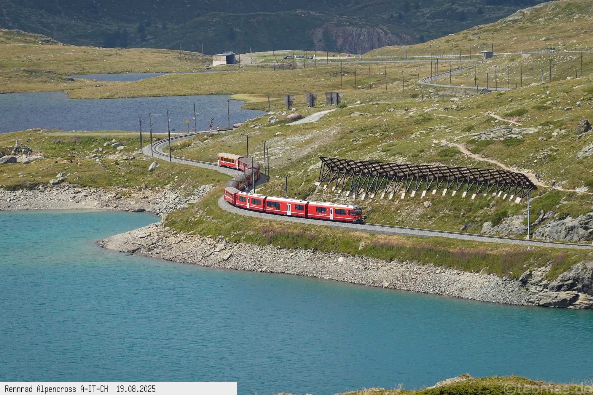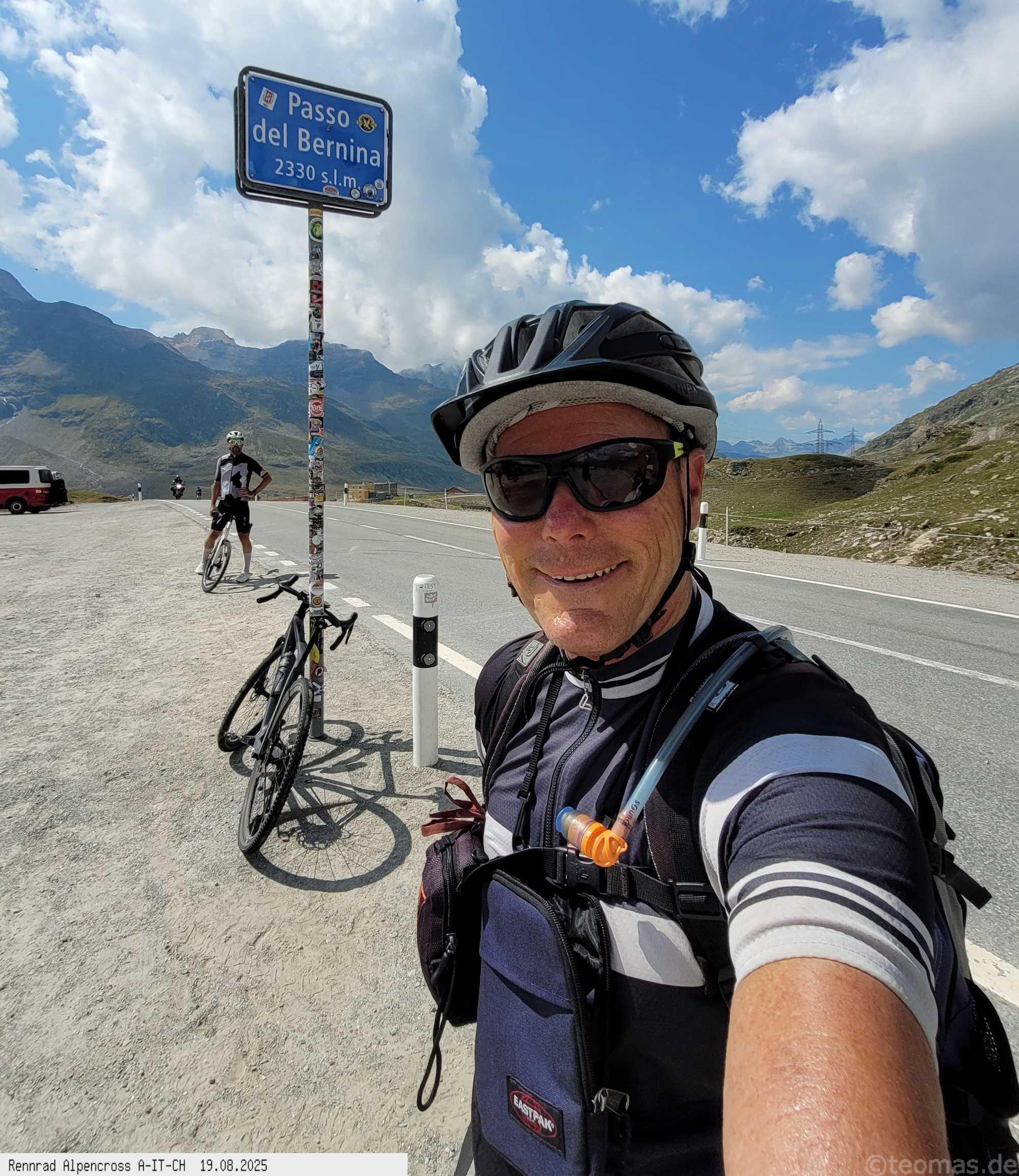 der Verkehr etwas weniger. 200 Hm runter und wieder hoch zum Bernina Paß, dem 4. Paß am heutigen Tag. Um 14:30 Uhr nach 2.000 Hm