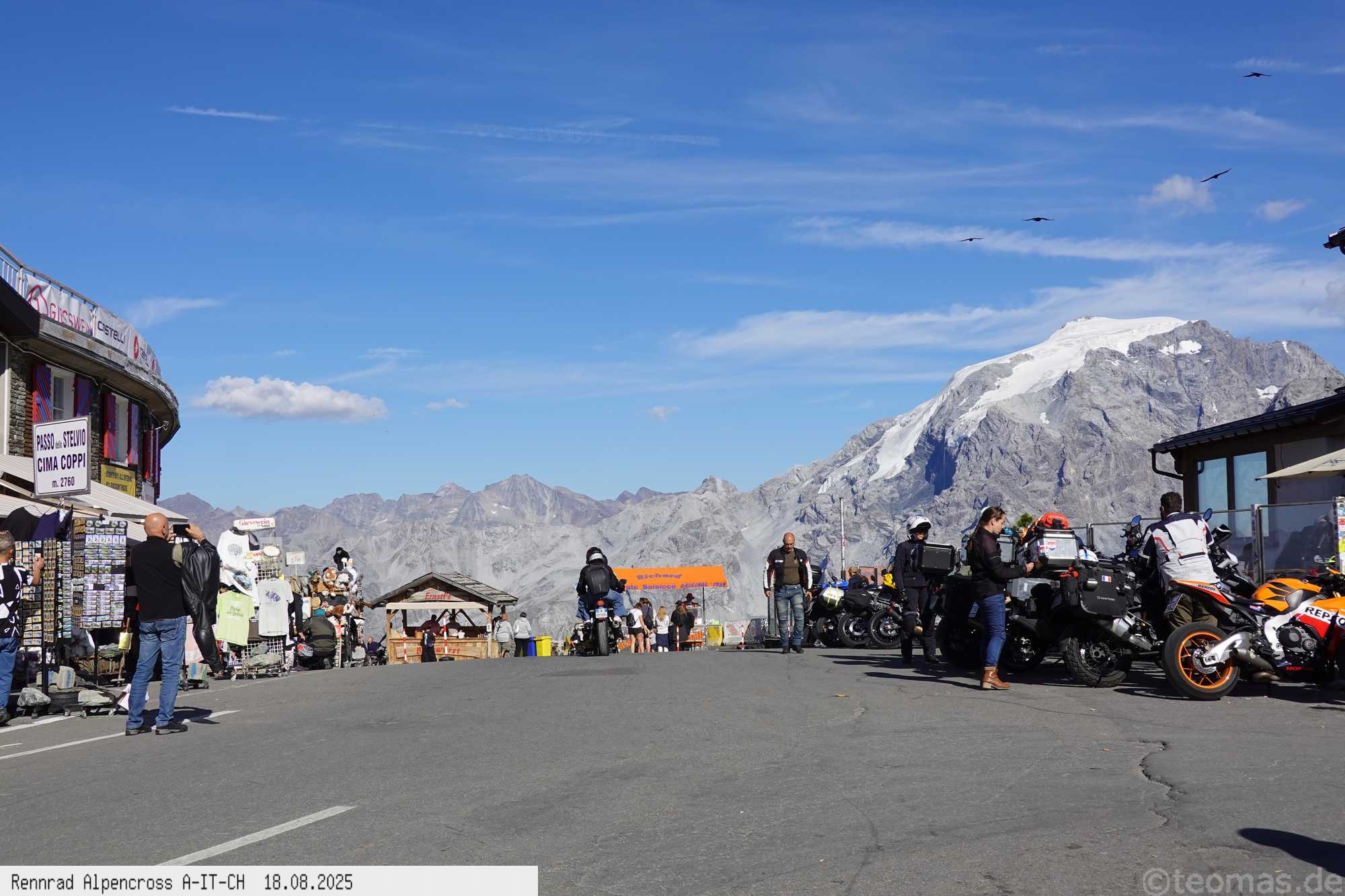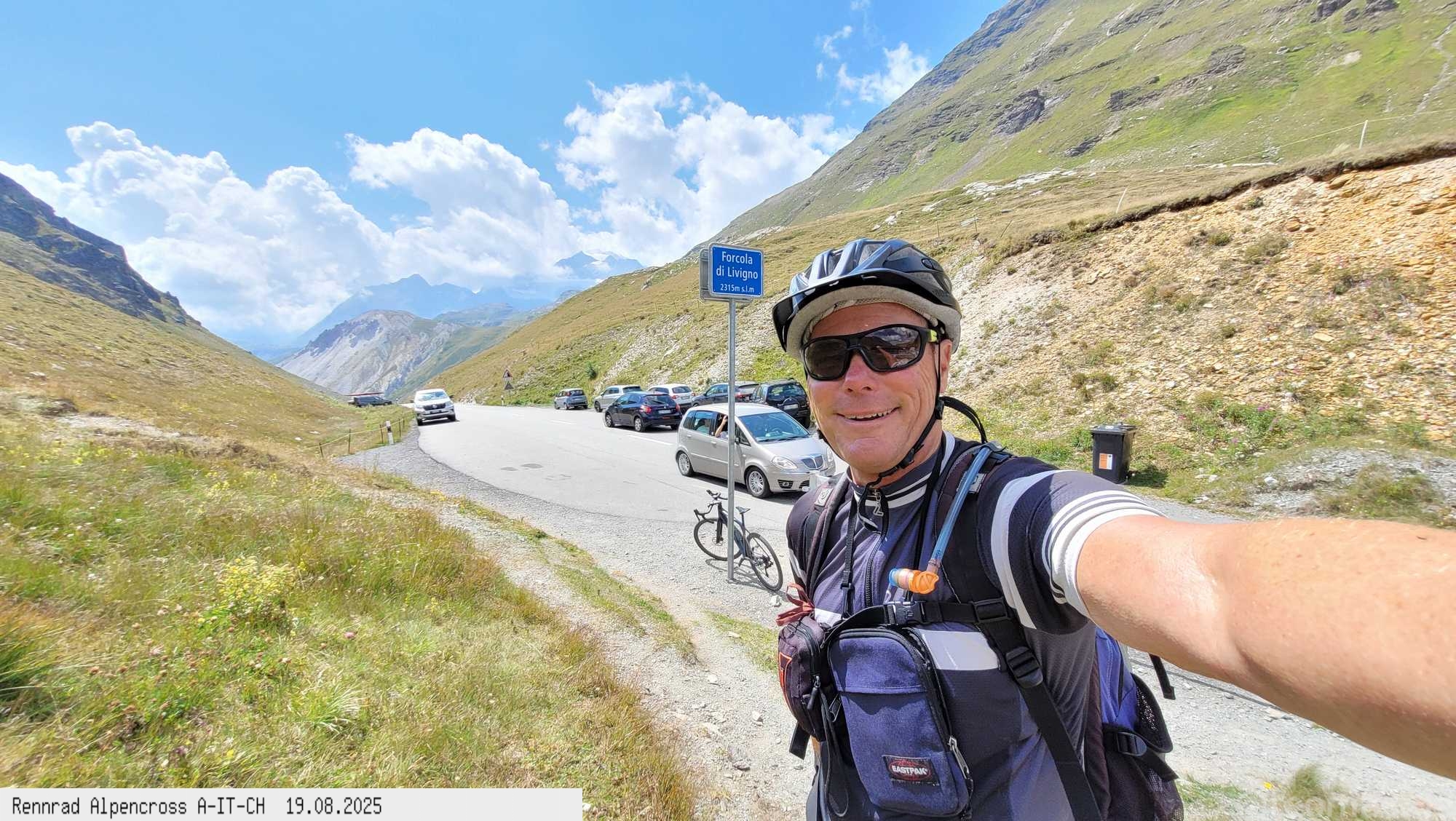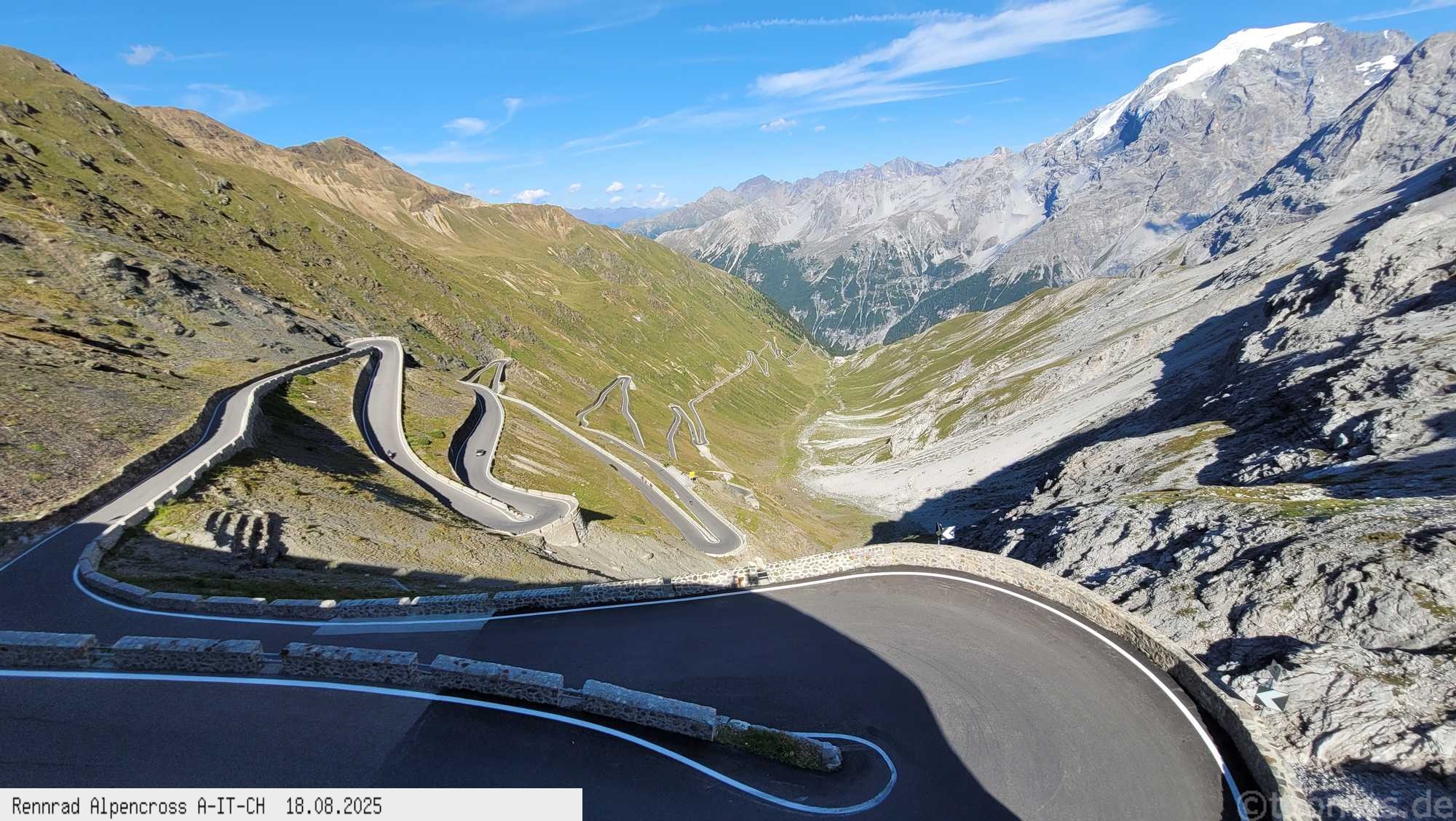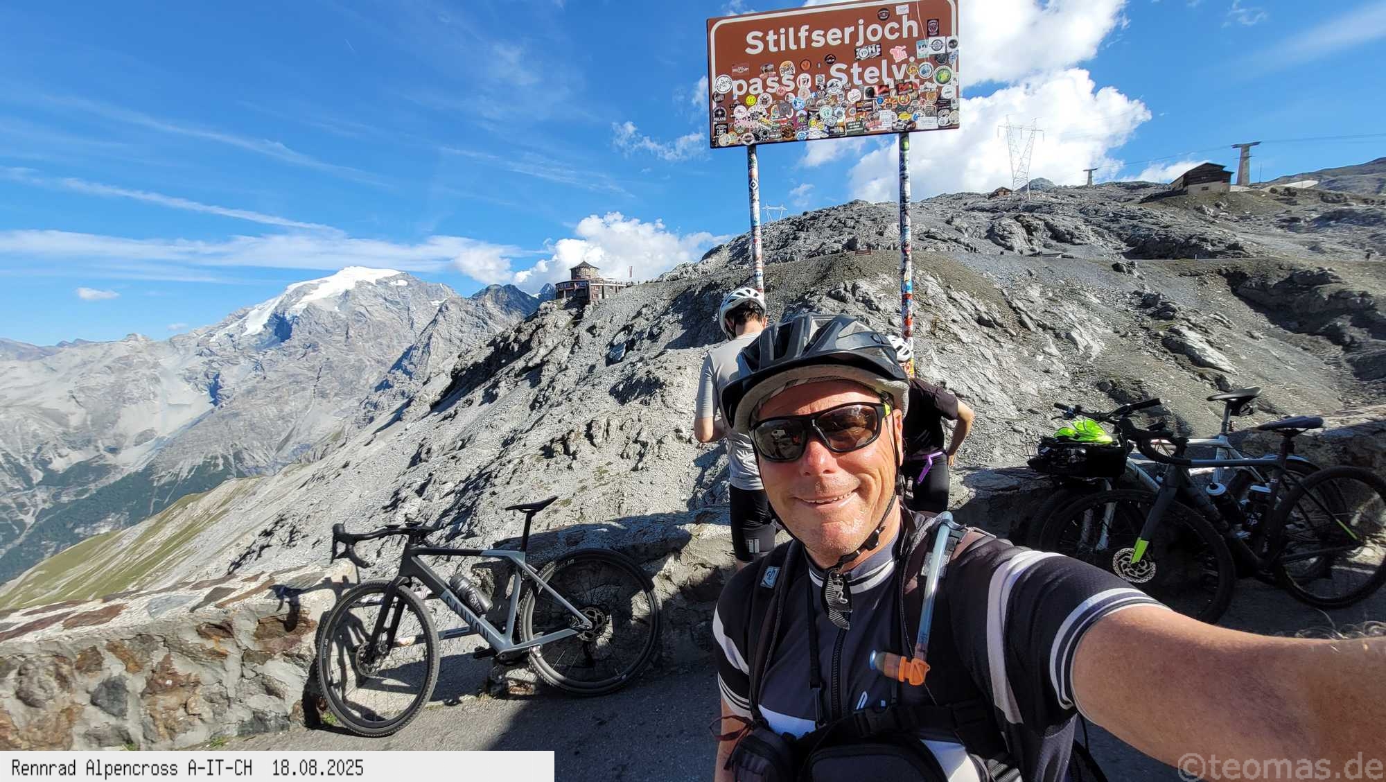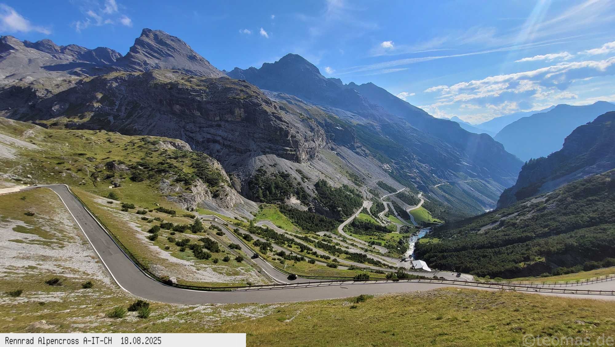 geschafft, um 17 Uhr oben am Stilfserjoch bei immer noch 21°C und Top Wetter. Kurzärmelig ging es dann hinunter bis Bormio ohne lange