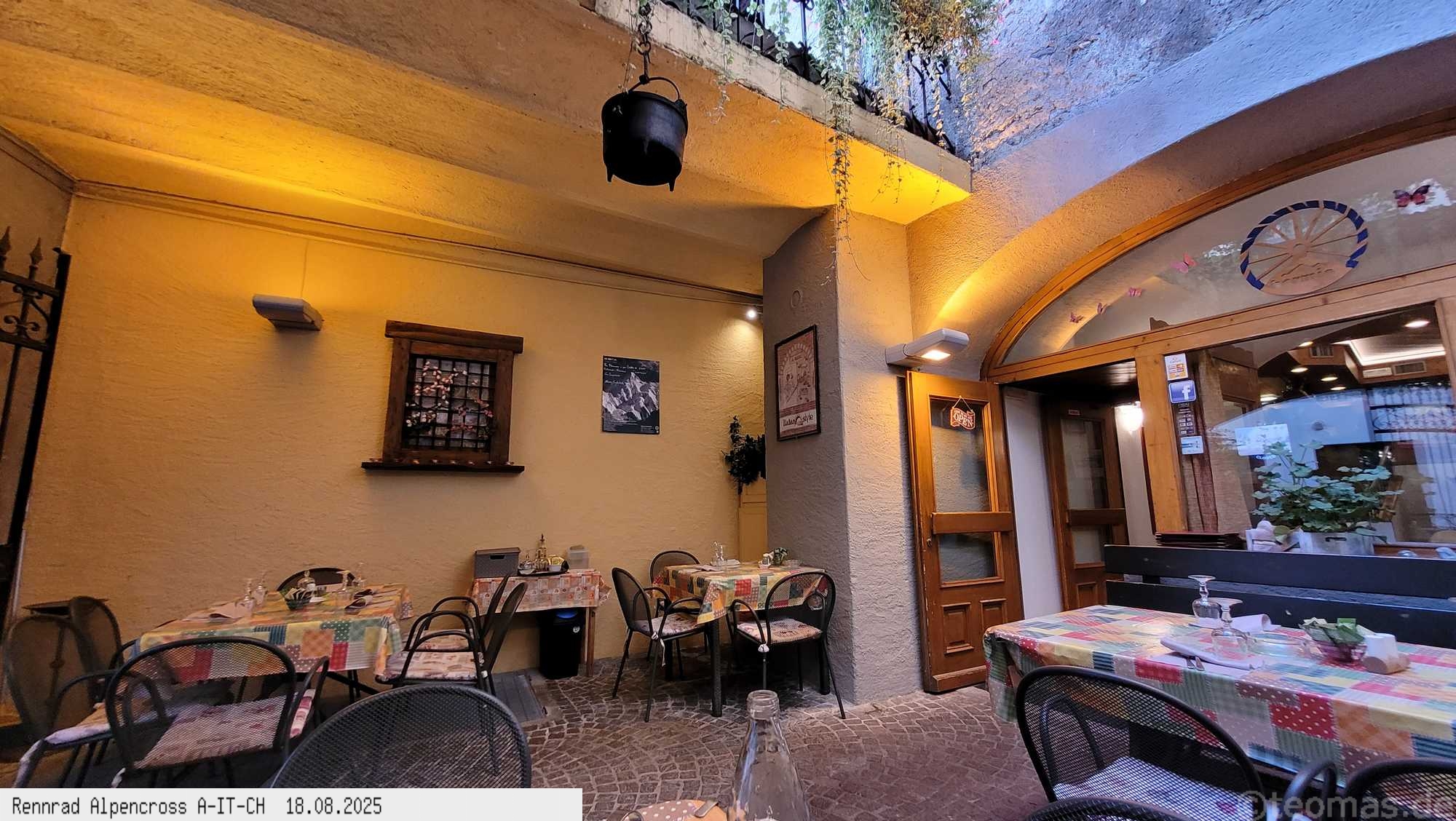 ein Zimmer bekommen. Abendessen in Bormio in einer reizenden Pizzeria, danach Rundgang im typisch italienischen Ort bei Eis in der Waffel.