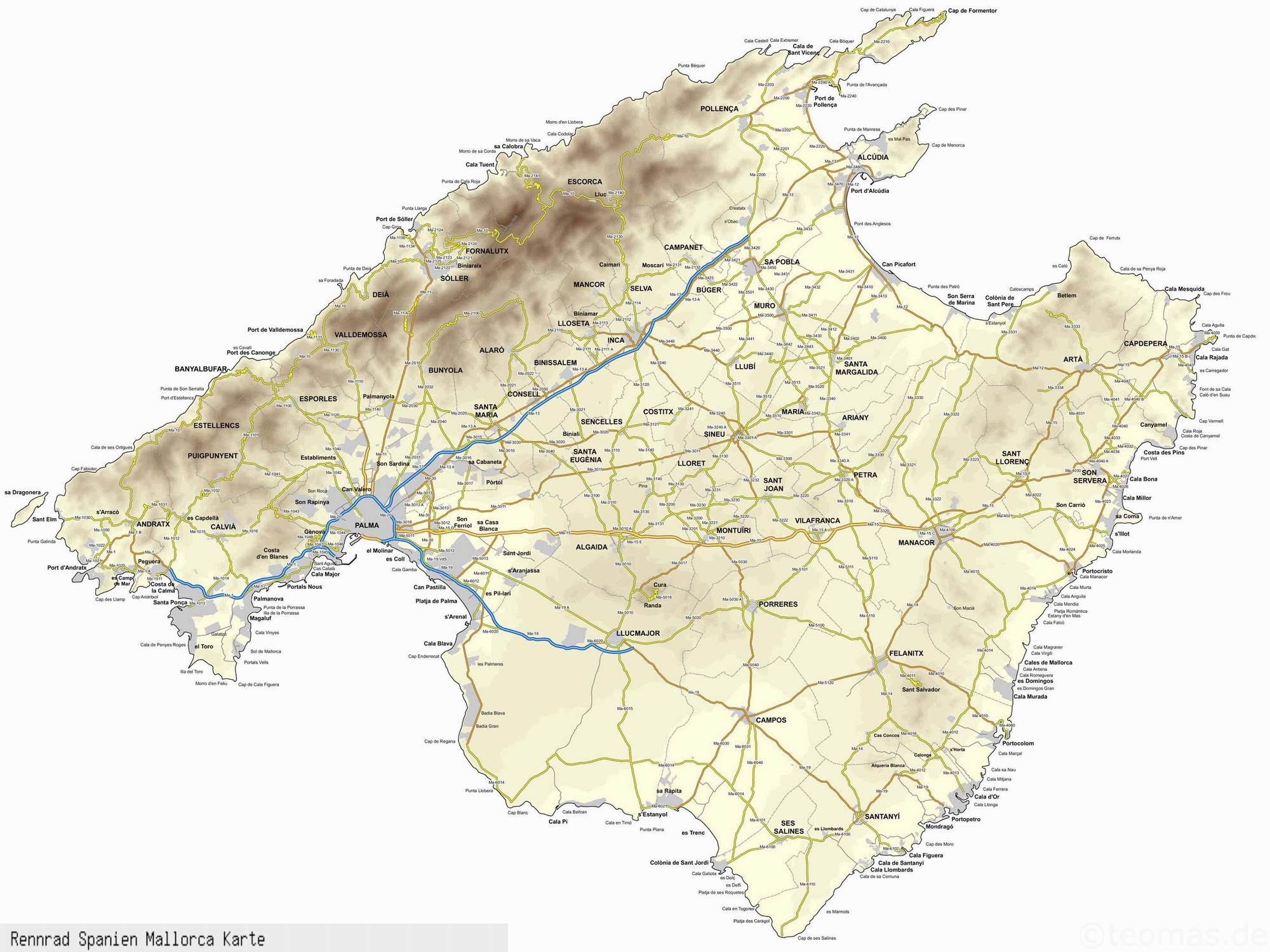 Strecke: S'Arenal - Palma - Colde Vent - Calvia - Es Capdella - Andratx - Estellences - Banyabufar - Puigpunyent - Galilea -