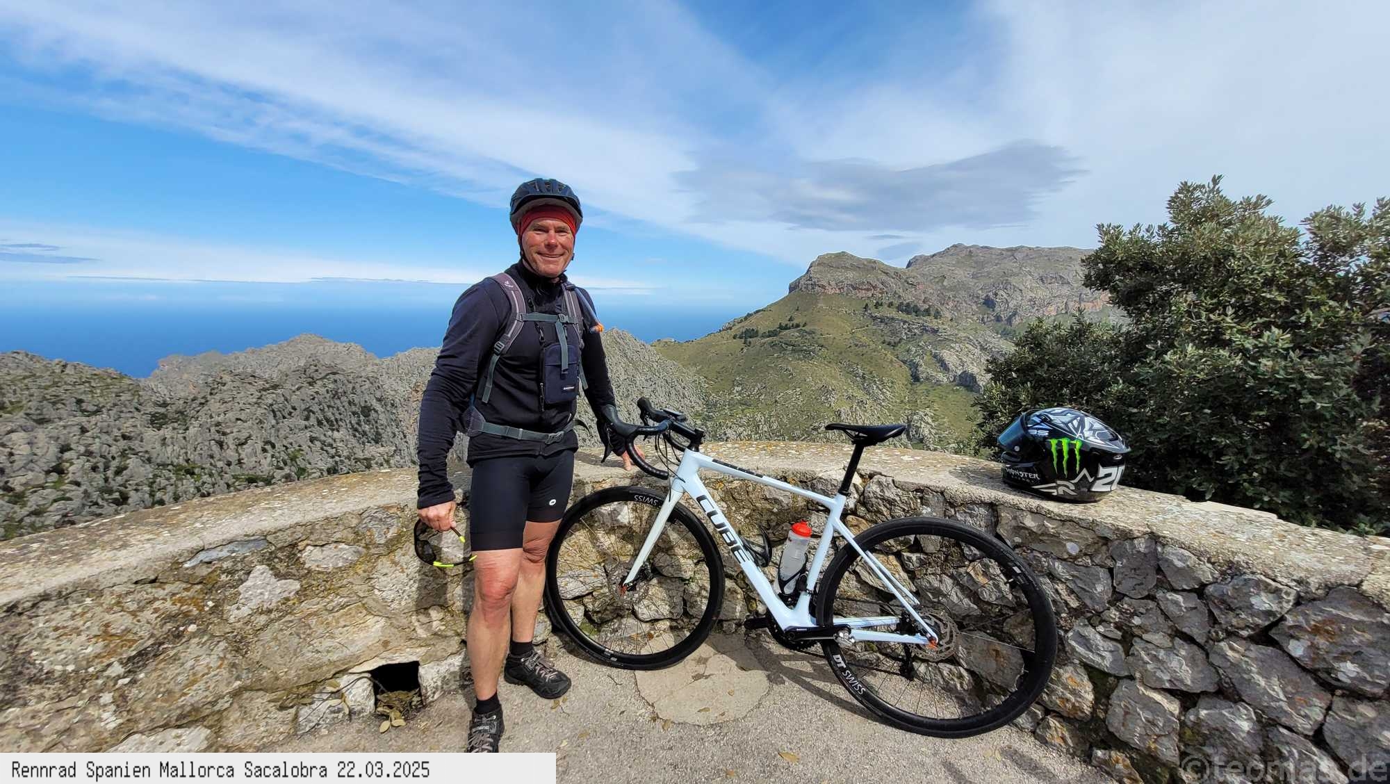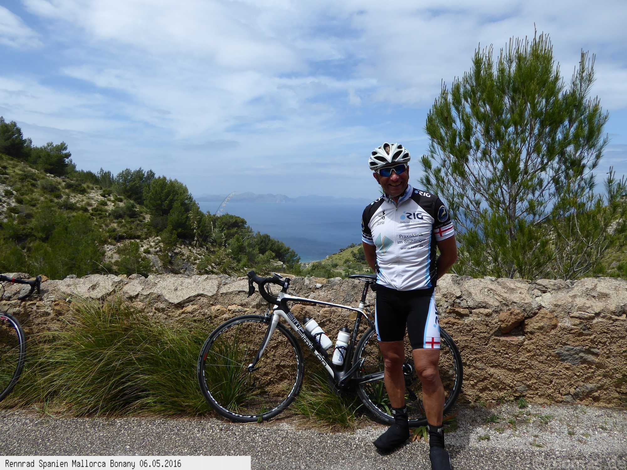 Mallorca ist die ideale Insel für Rennrad-Touren. Ausgedehnte Bergfahrten sowie flache Überlandtouren bieten jede Menge Abwechslung. Die Hauptstadt Palma de Mallorca ist zugleich Sitz der Regierung der Balearen. Im katalanischen wird sie auch Ciudad genannt. Sehenswert ist die imposante Kathedrale sowie die Innenstadt mit den gepflegten Innenhöfen. Von 2004 bis 2025 war ich insgesamt 17 mal auf Mallorca. Startorte waren der Küstenort Can Picafort oder Alcudia im Nordosten, Palma de Mallorca im Westen sowie Cala Ratjada im Süden. In Can Picafort am häufigsten, mit entsprechender radfreundlicher Infrastruktur (Bikeverleih Hürzeler, EasyTours). Der Startort Palma ist verkehrsbedingt eingeschränkt geeignet, da man erst aus der Stadt kommen muß. Dafür lernt man neue Umgebungen kennen. Cala Ratjada im Jahr 2006 war eher ein Badeurlaub und Radtouren nur in der nahen Umgebung gefahren. Ende März 2007 hatte ich einen Radunfall bei Kloster Lluc, ein LKW hat stark die Serpentinen Kurve geschnitten und Ausweichen war nicht mehr möglich. Handbruch und Halswirbel Probleme, zum Glück gut überstanden! Auf knapp 150 Touren konnte die Insel sehr gut erforscht werden, nachfolgend eine kleine Übersicht mit Beschreibungen der wichtigsten Spots: